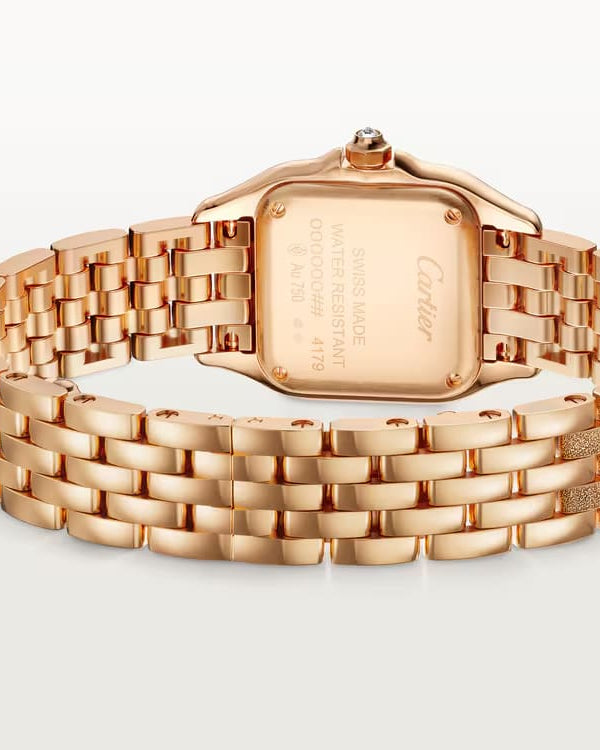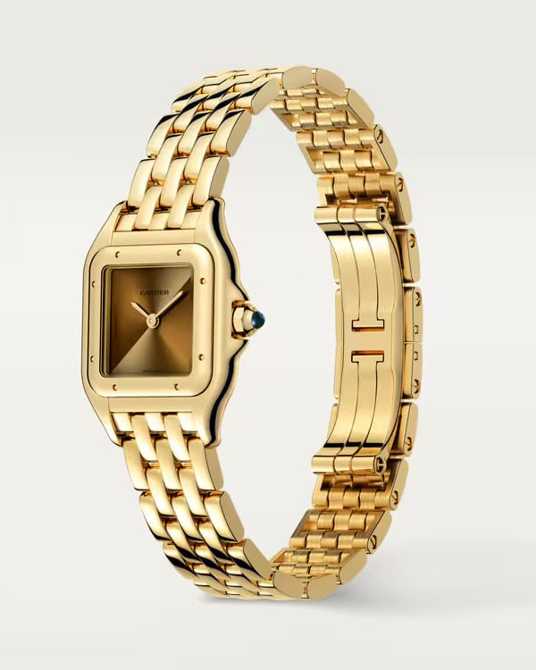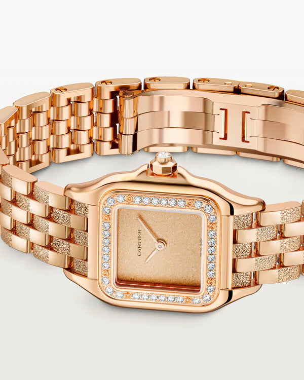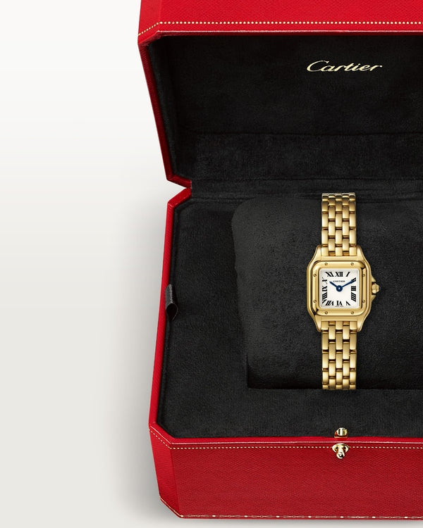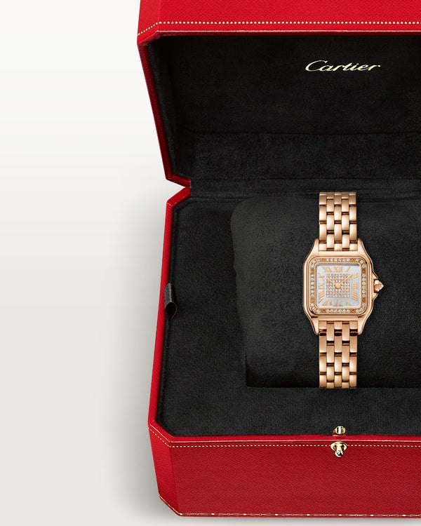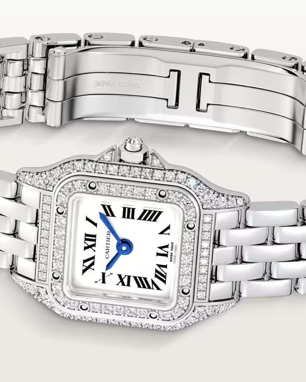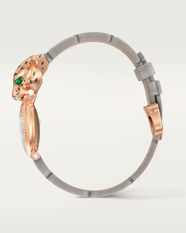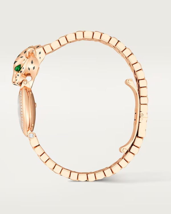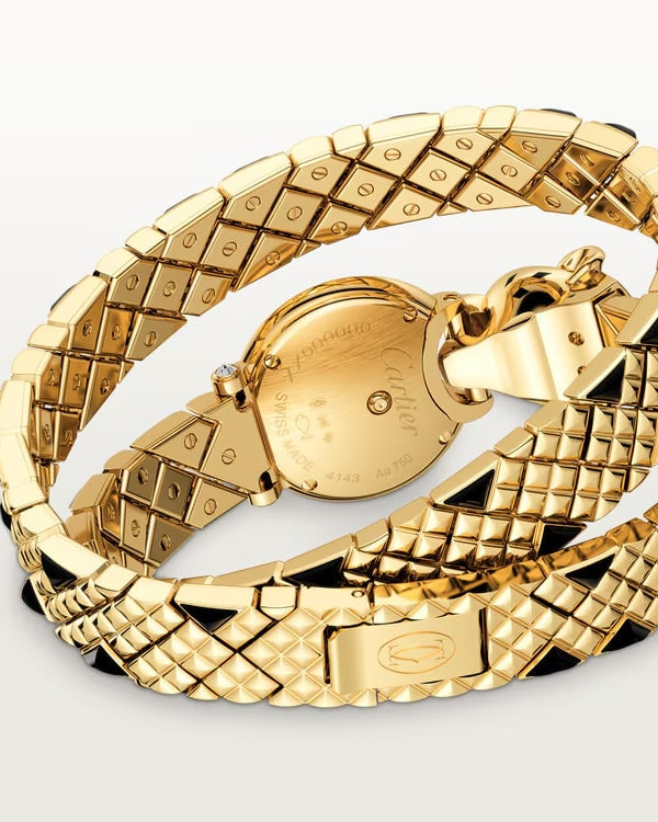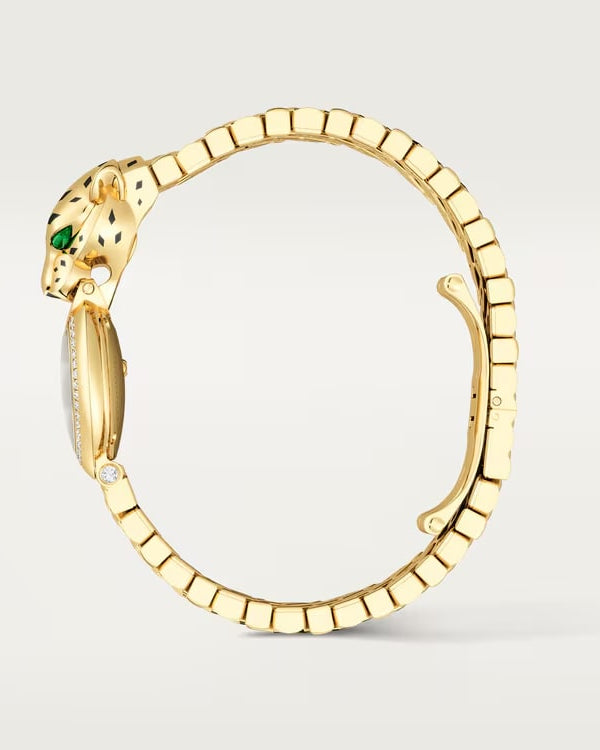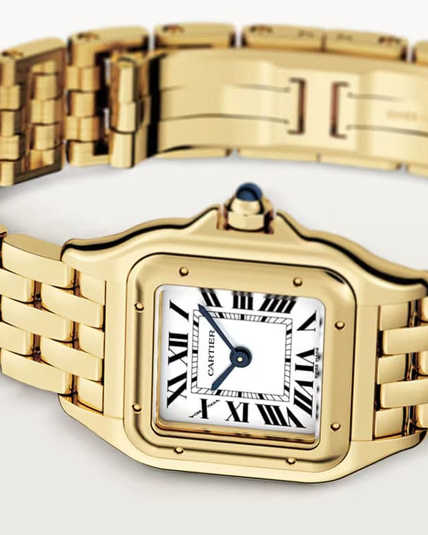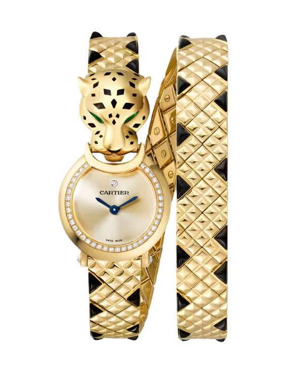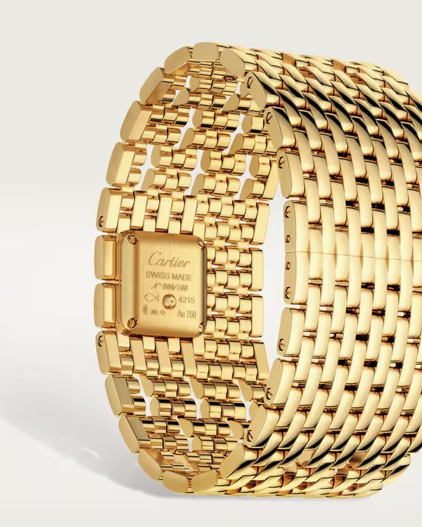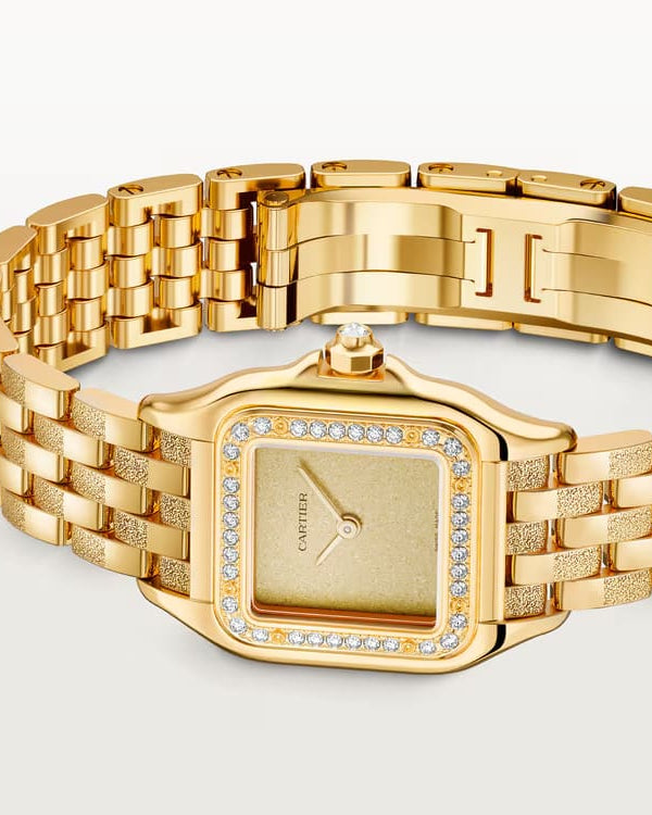 A watch that doubles as a piece of jewelry, Panthère de Cartier is one of the most distinctive Cartier designs. Adorned in gold, diamonds, and exquisite gemstones, it is a staple for a woman who never goes unnoticed. Magnetic, wild, feline, and free.
