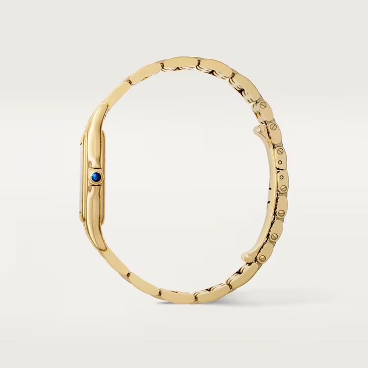 First created in the 1980s, the Panthère watch takes its name from the bracelet. Its ultra-flexible structure echoes the movements of the Maison’s emblematic animal. Its sleek square case and supple, fluid bracelet create a harmonious silhouette that moves like a second skin, a perfect balance of comfort and style.