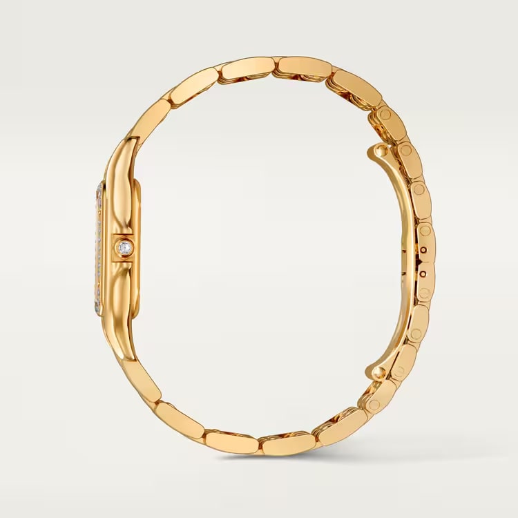 First created in the 1980s, the Panthère watch takes its name from the bracelet. Its ultra-flexible structure echoes the movements of the Maison’s emblematic animal. Its sleek square case and supple, fluid bracelet create a harmonious silhouette that moves like a second skin, a perfect balance of comfort and style.