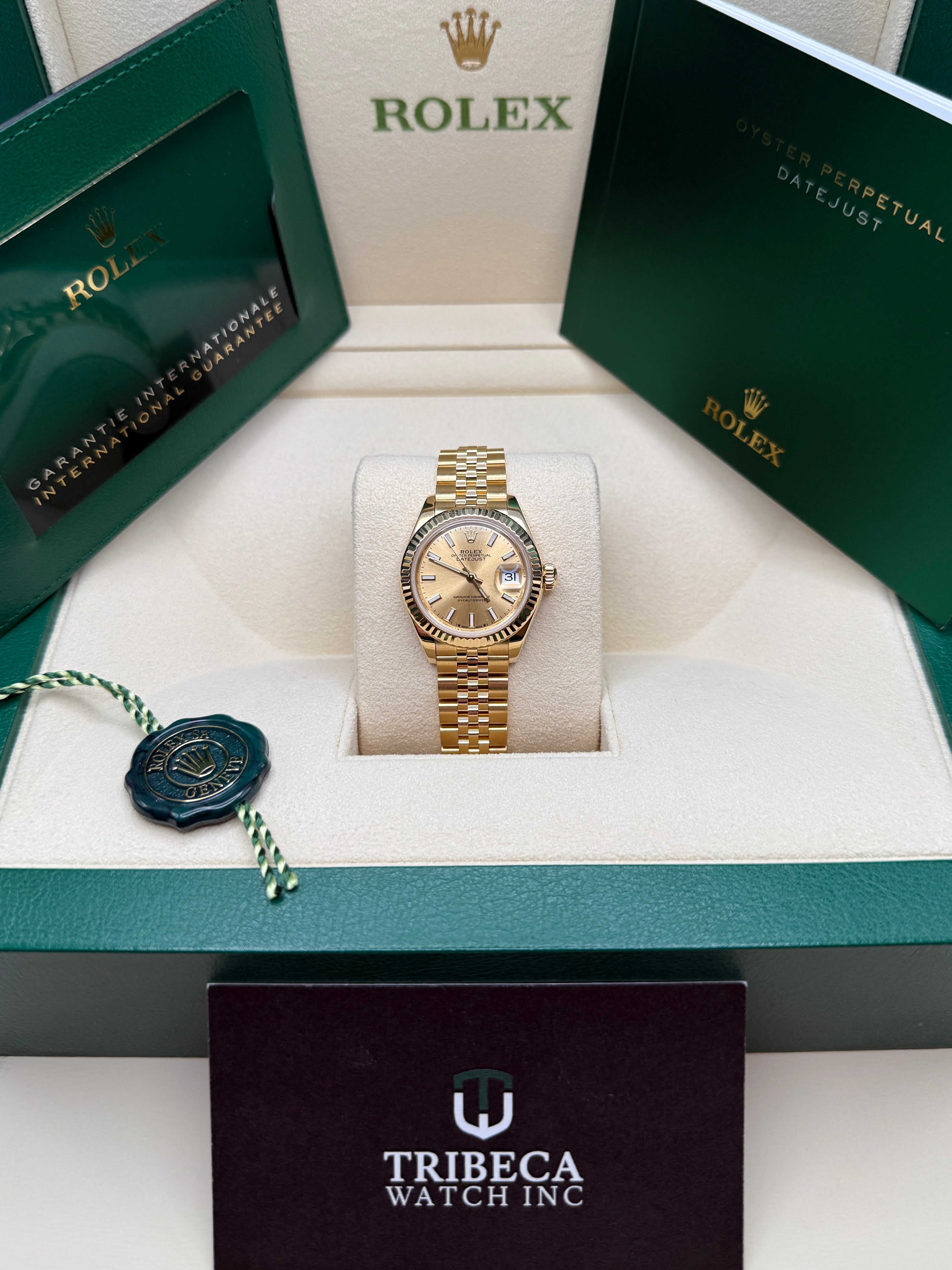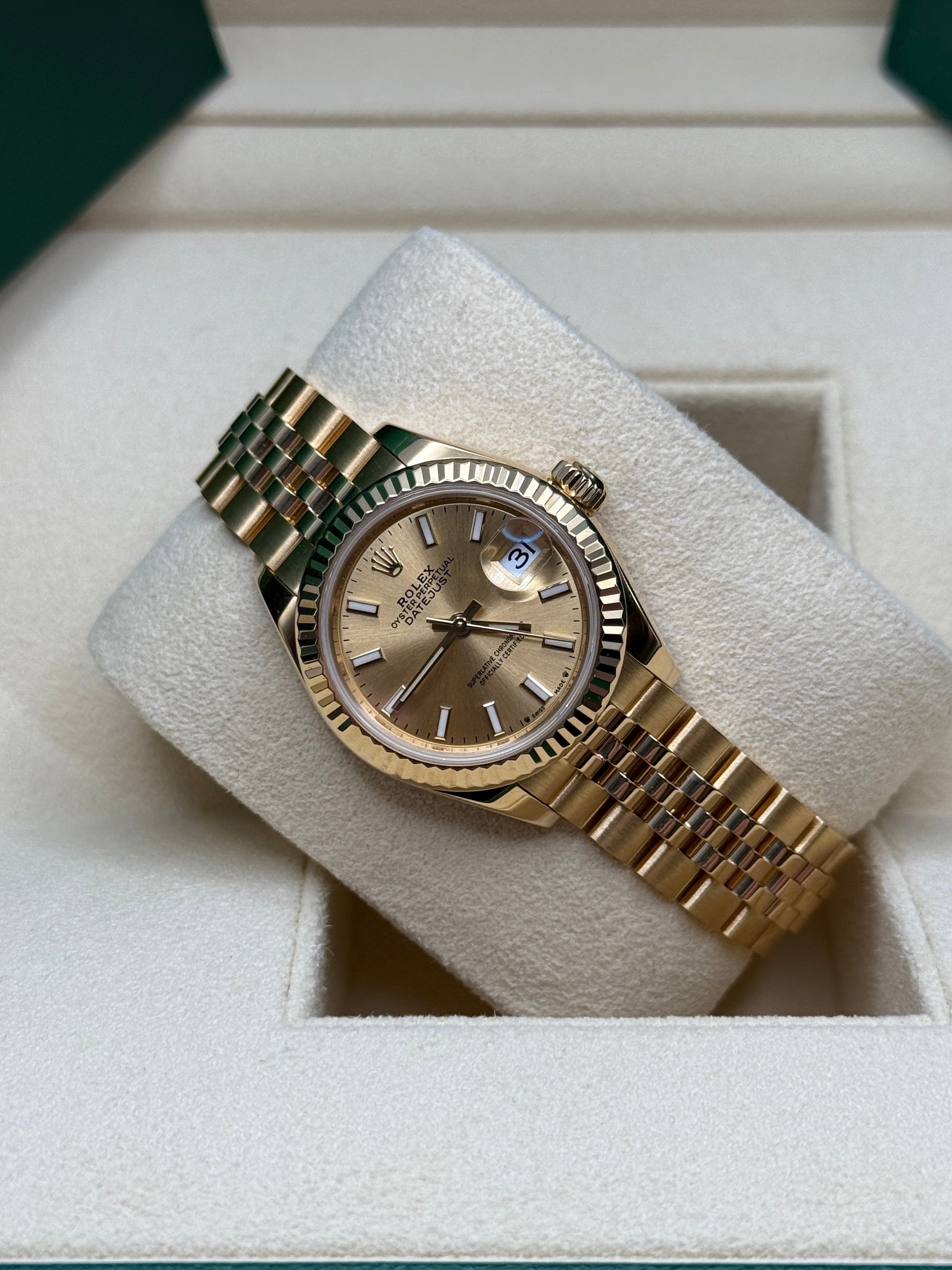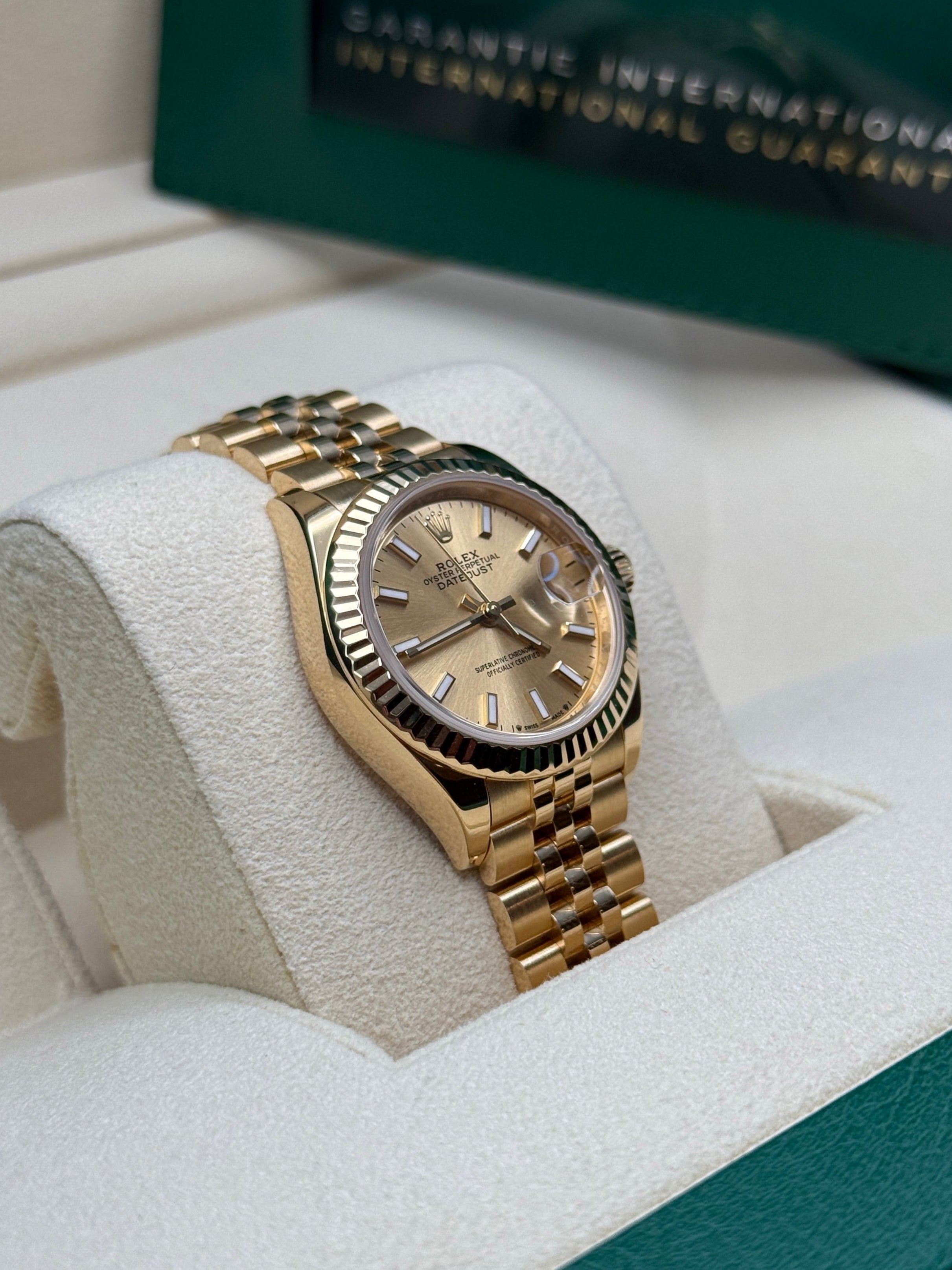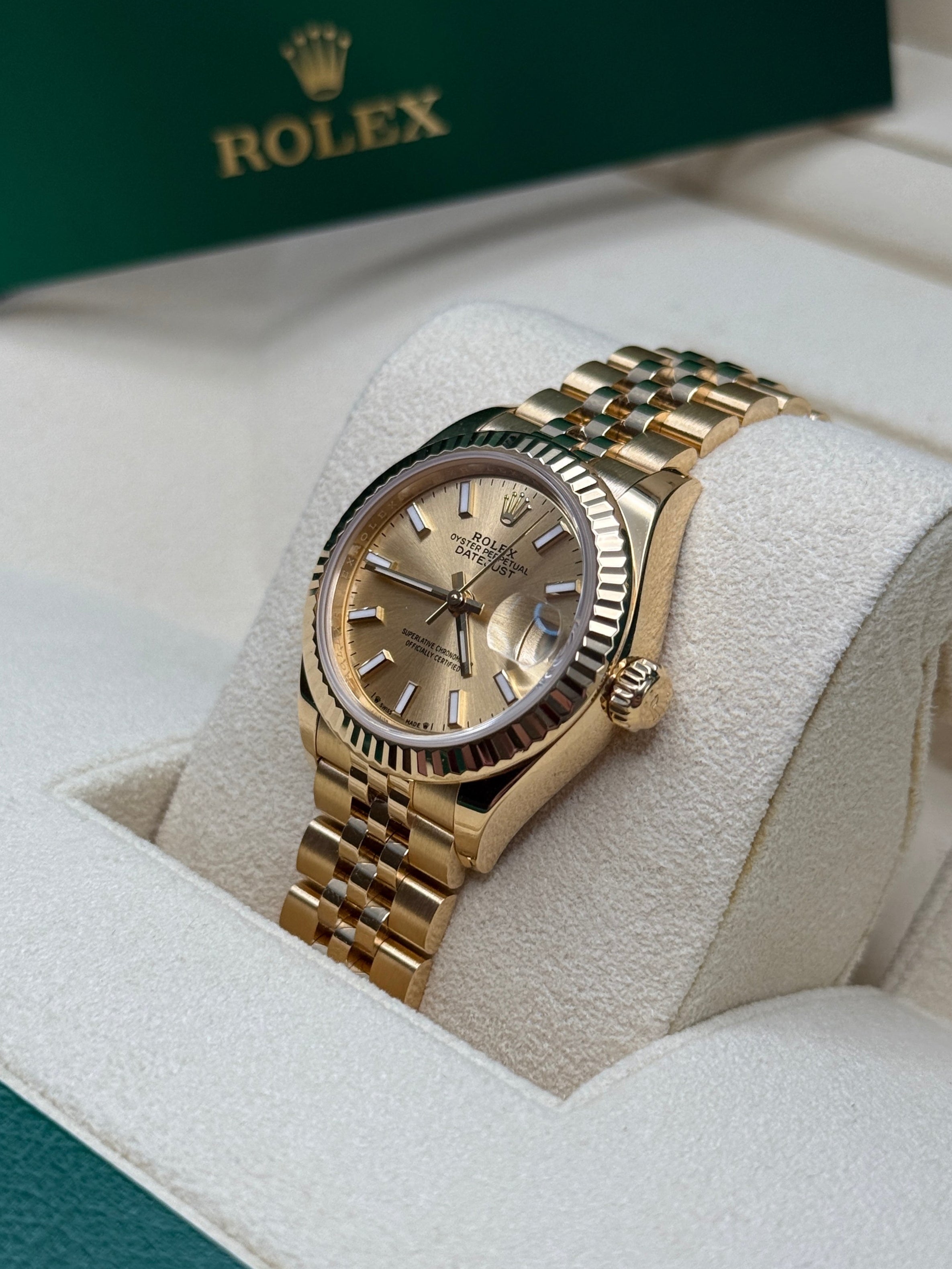 The classic Rolex feminine watch, the Lady-Datejust concentrates all the attributes of the Datejust, the brand’s emblematic watch that has been a byword for style and technical performance ever since its launch in 1945. The women’s version of this date chronometer, the Lady-Datejust, which first appeared in 1957, carries the elegance of the Datejust in a small 28 mm size particularly suited to a slender wrist. The Lady-Datejust upholds the hallmark features of the Datejust line, with a self-winding, waterproof Oyster case that is robust yet graceful. Its calibre 2236 movement, crafted entirely by Rolex, ensures precision and performance. The Lady-Datejust is guaranteed waterproof to a depth of 100 meters (330 feet), making it a resilient and elegant choice for any occasion.