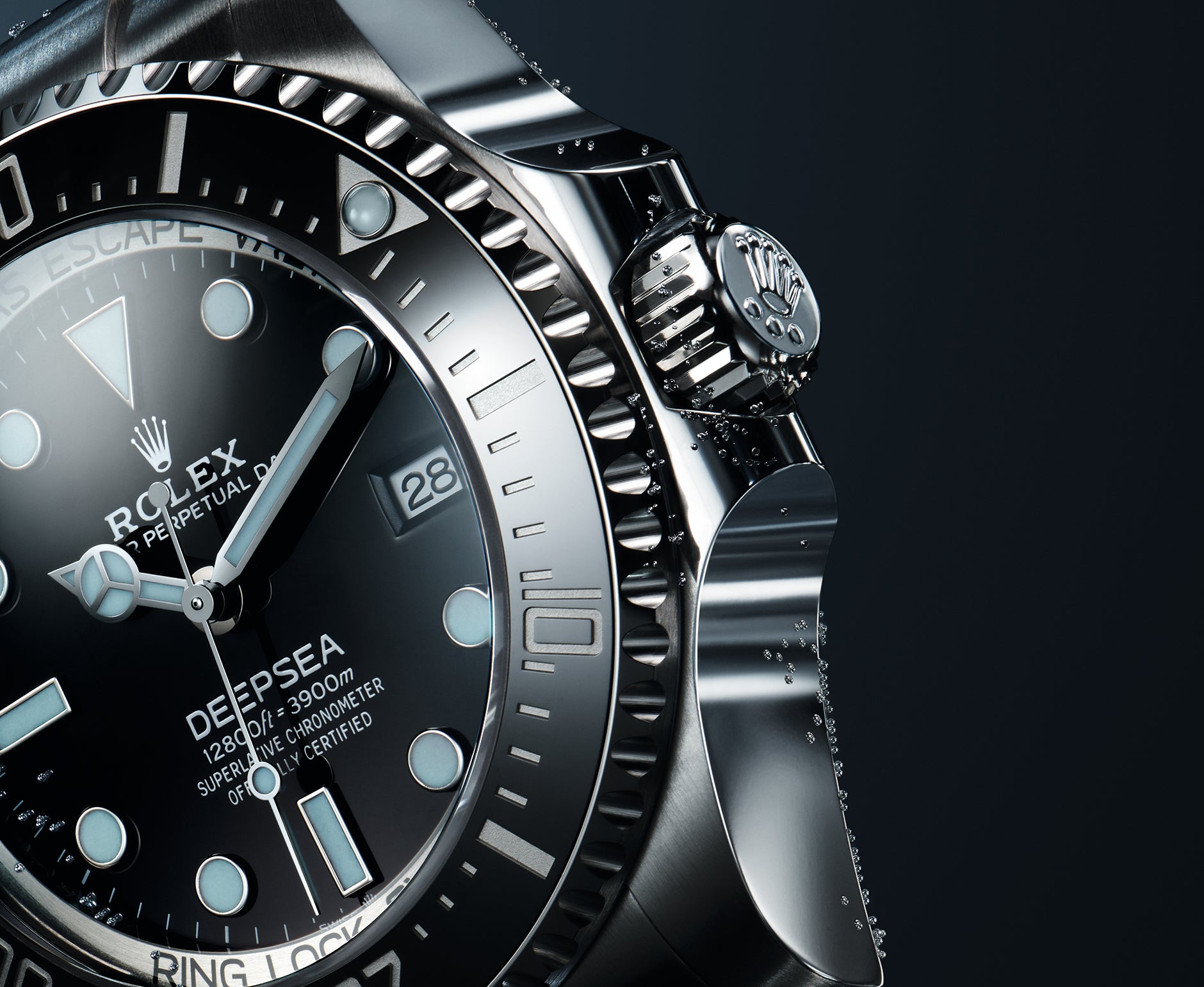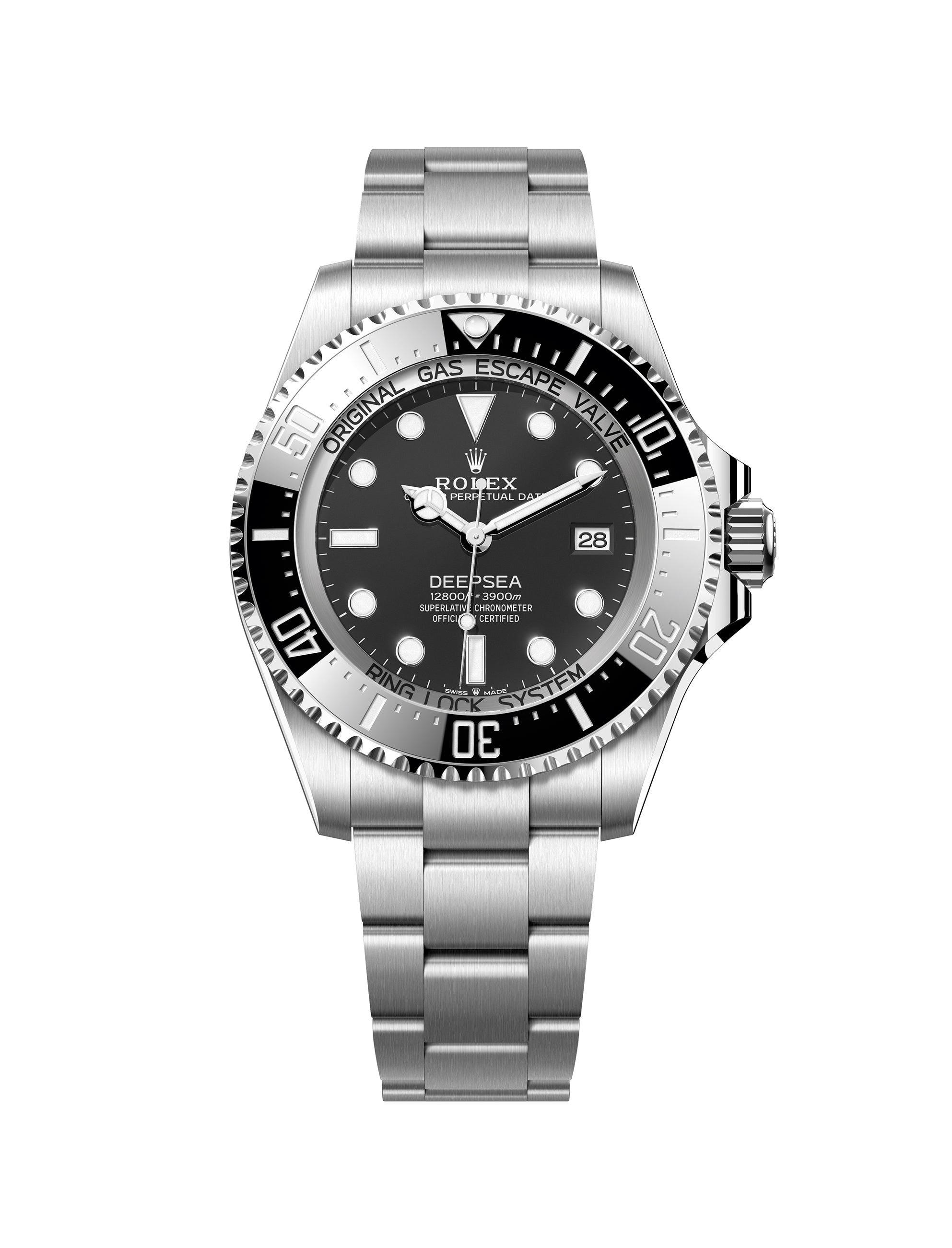 The Rolex Deepsea benefits from the Ringlock system, a patented case architecture developed by Rolex that allows it to resist the colossal pressure exerted by water at the depth of 3,900 meters. The Rolex Deepsea is equipped with calibre 3235, a self-winding mechanical movement entirely developed and manufactured by Rolex.