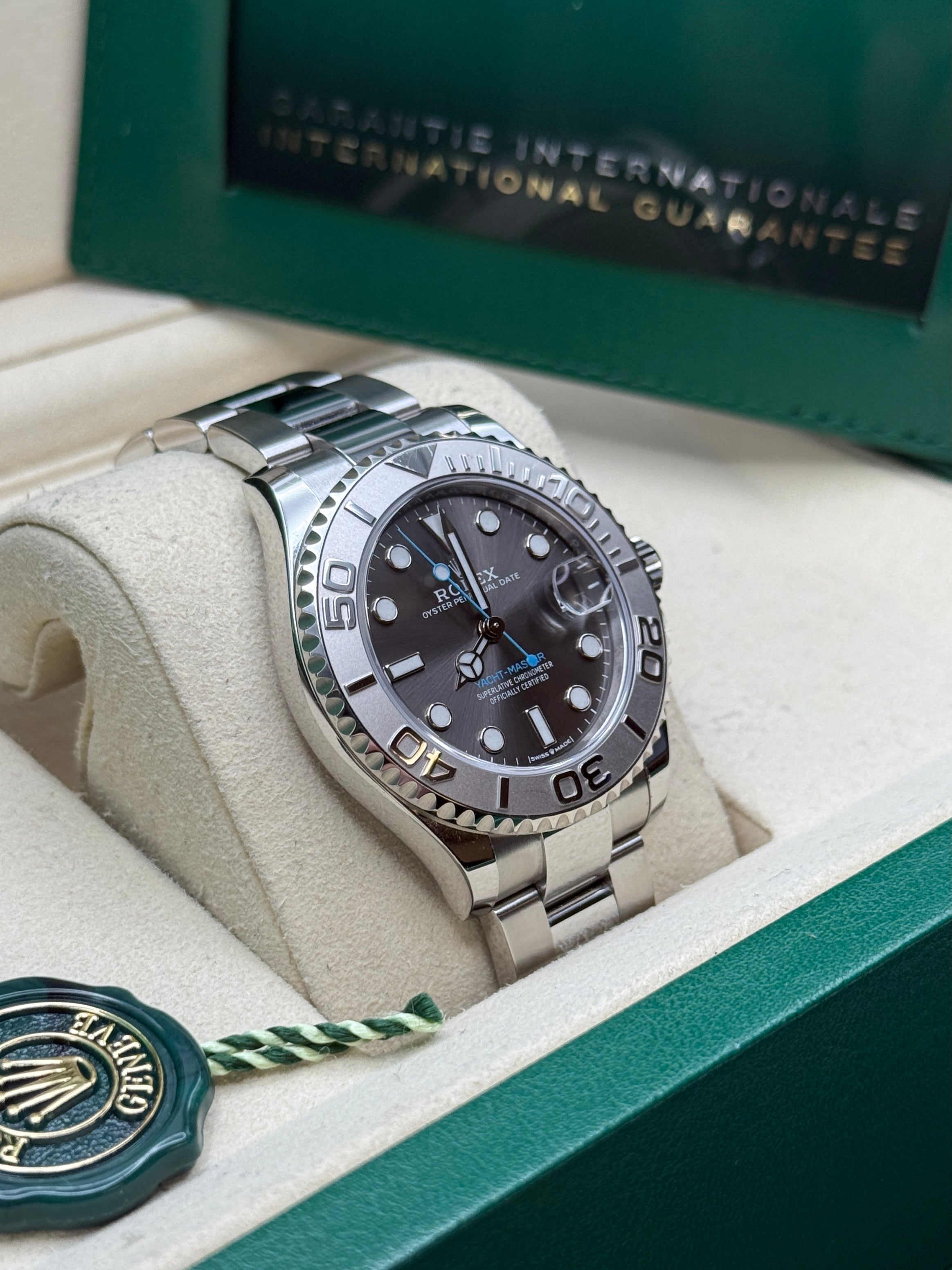 Launched in 1992, the Yacht-Master was designed specifically for navigators and skippers. Embodying the rich heritage that has bound Rolex and the world of sailing since the 1950s, this Professional-category watch provides a perfect blend of functionality and nautical style, making it equally at home on and off the water. An emblematic nautical timepiece, it is easily recognized by its bidirectional rotatable 60-minute graduated bezel made entirely from precious metal or fitted with a Cerachrom insert in high-technology ceramic.