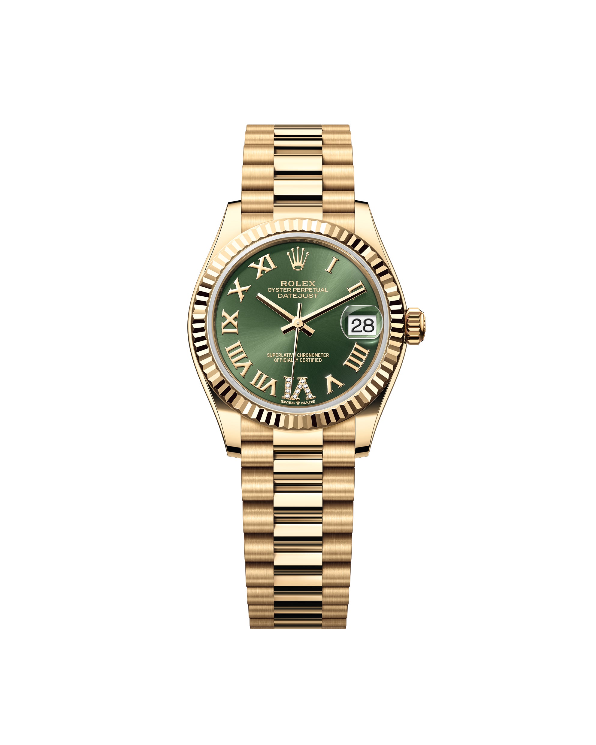 Datejust 31 Yellow Gold Olive Green Roman Diamond