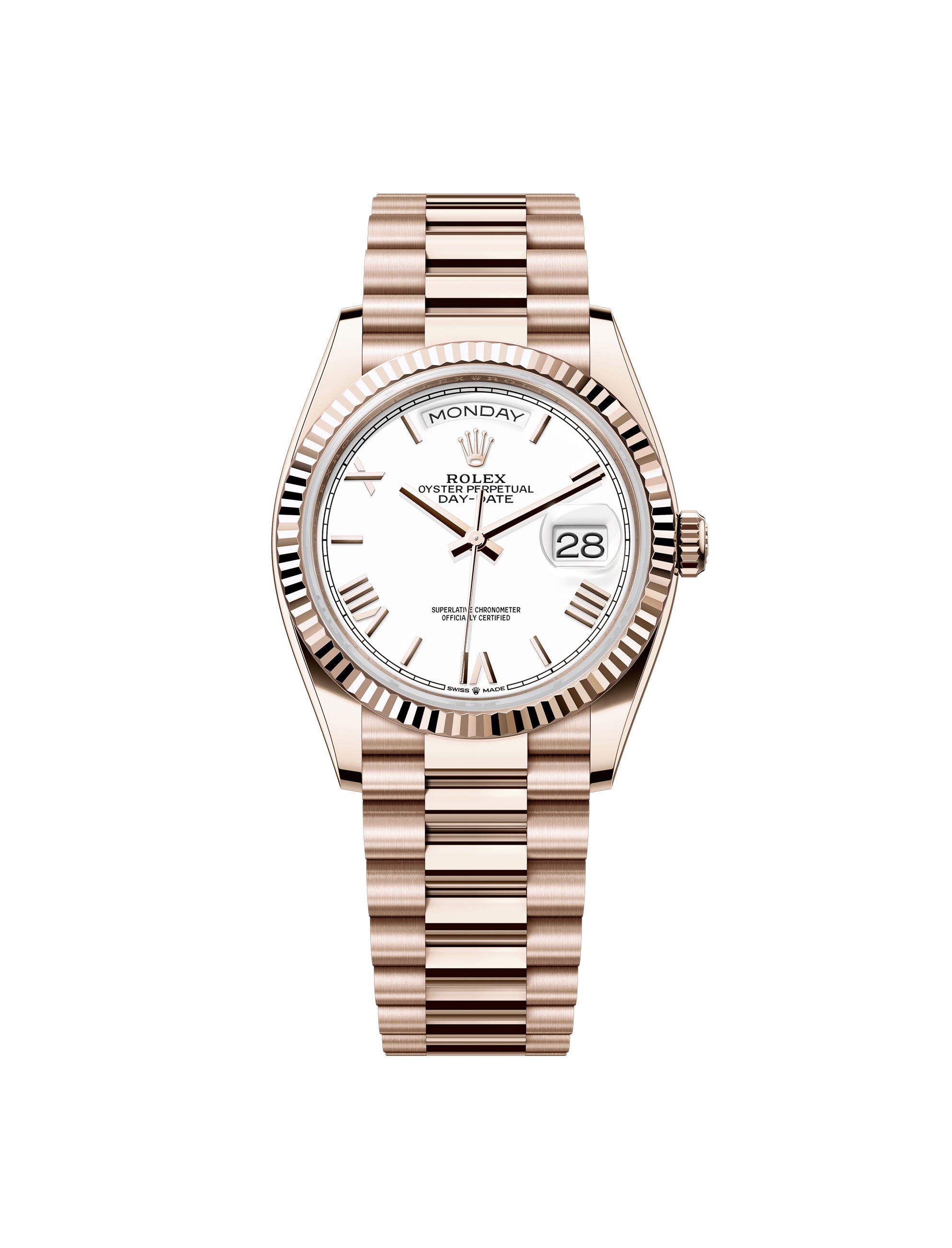 At its launch in 1956, the Day-Date was a major innovation: it was the first calendar wristwatch to indicate, in addition to the date, the day of the week spelt out in full in a window on the dial – a technical feat at the time. The Day-Date has only ever been made from precious metals –18 ct yellow, white or Everose gold, or 950 platinum. Worn by many of the world’s political figures, directors and visionaries, the Day-Date is instantly recognizable, in particular thanks to its emblematic President bracelet, whose evocative name, together with the eminent figures who have worn it, ensured the Day-Date became known as the ‘presidents’ watch’.