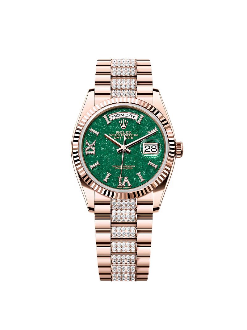Day-Date 36 Everose Gold Diamond-Set President Green Aventurine Roman Diamond