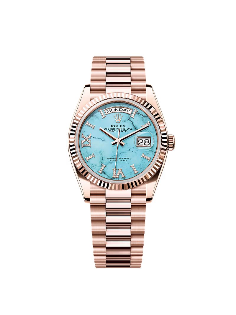 Day-Date 36 Everose Gold Turquoise Roman Diamond