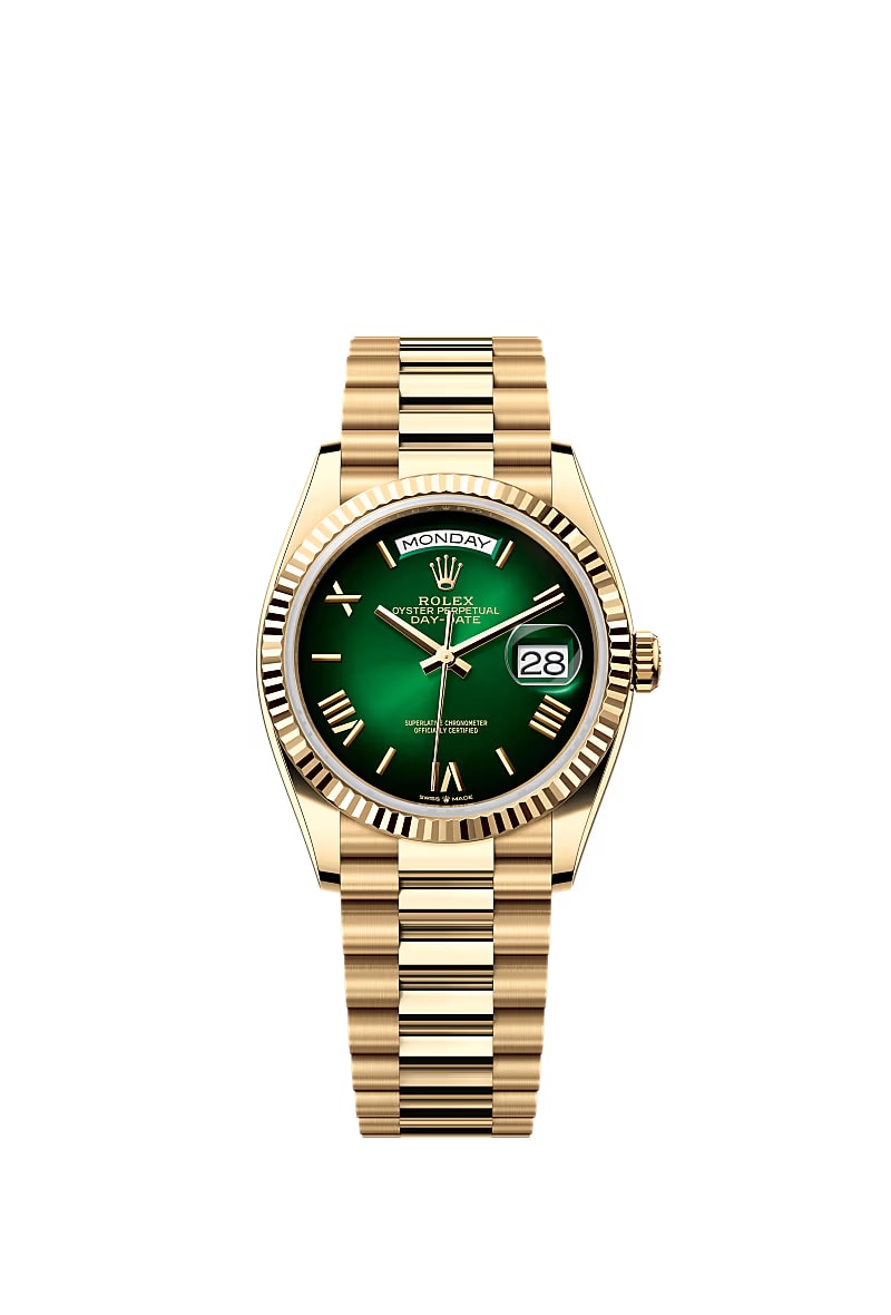 Day-Date 36 Yellow Gold Green Ombré Roman