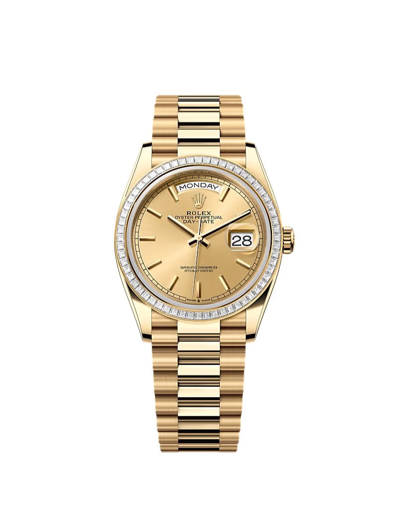 At its launch in 1956, the Day-Date was a major innovation: it was the first calendar wristwatch to indicate, in addition to the date, the day of the week spelt out in full in a window on the dial – a technical feat at the time. The Day-Date has only ever been made from precious metals –18 ct yellow, white or Everose gold, or 950 platinum. Worn by many of the world’s political figures, directors and visionaries, the Day-Date is instantly recognizable, in particular thanks to its emblematic President bracelet, whose evocative name, together with the eminent figures who have worn it, ensured the Day-Date became known as the ‘presidents’ watch’.