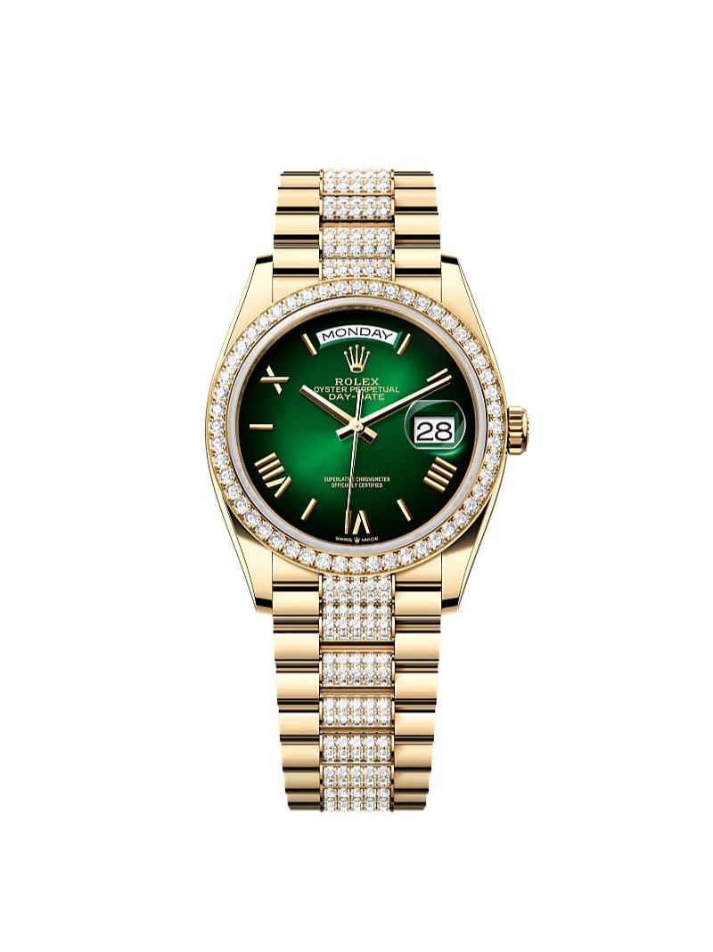 Day-Date 36 Yellow Gold Diamond-Set President Green Ombré Roman