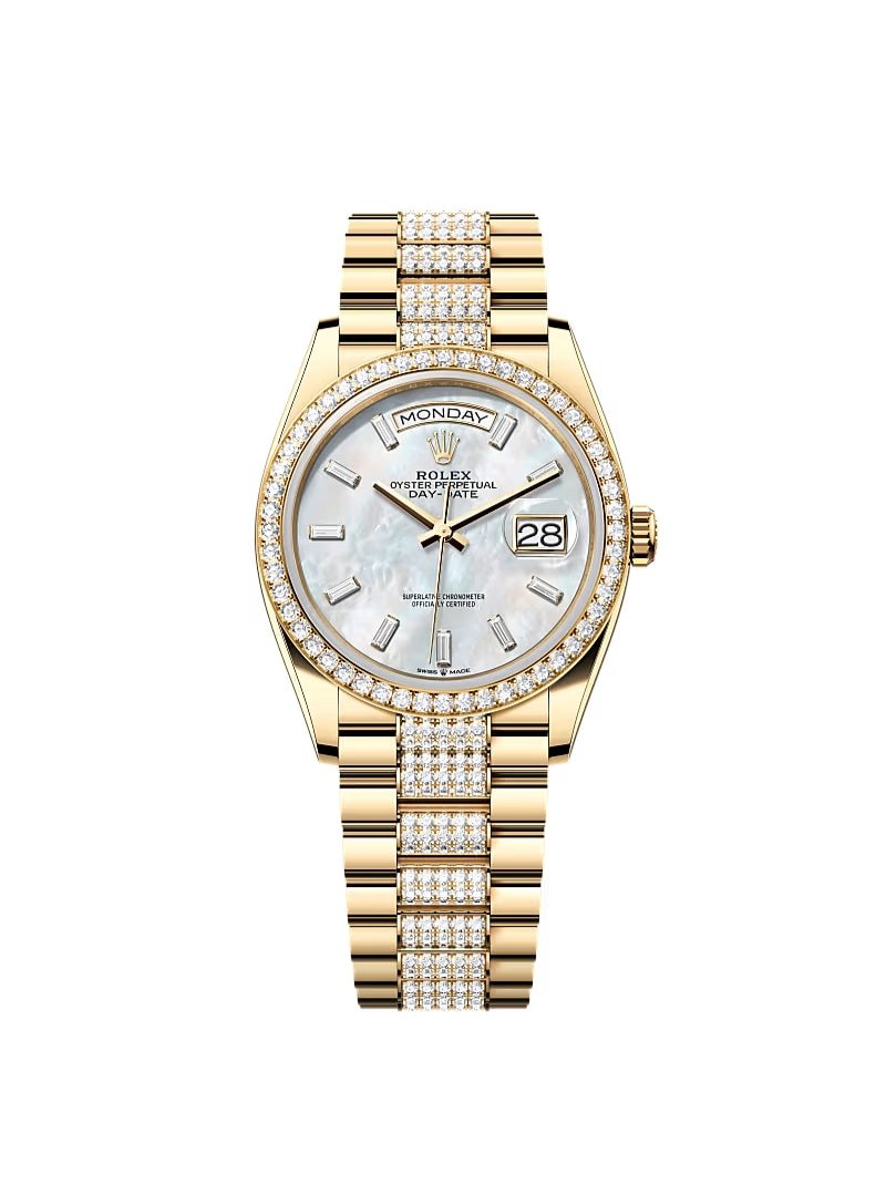 Day-Date 36 Yellow Gold Diamond-Set President Mother of Pearl Diamond Baguette