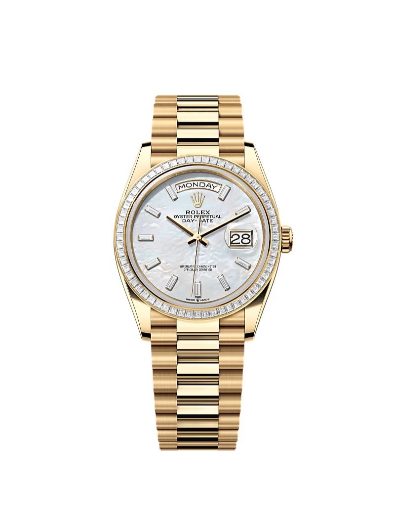 Day-Date 36 Yellow Gold Mother of Pearl Diamond Baguette
