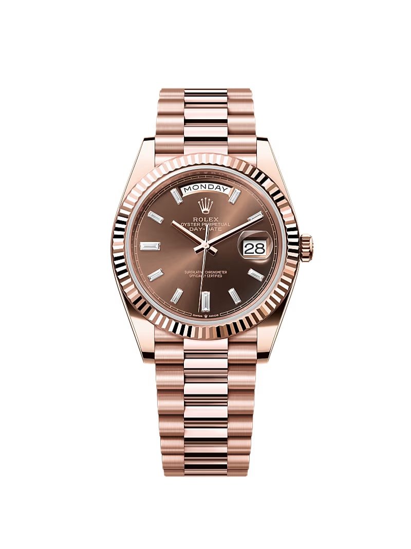 At its launch in 1956, the Day-Date was a major innovation: it was the first calendar wristwatch to indicate, in addition to the date, the day of the week spelt out in full in a window on the dial – a technical feat at the time. The Day-Date has only ever been made from precious metals –18 ct yellow, white or Everose gold, or 950 platinum. Worn by many of the world’s political figures, directors and visionaries, the Day-Date is instantly recognizable, in particular thanks to its emblematic President bracelet, whose evocative name, together with the eminent figures who have worn it, ensured the Day-Date became known as the ‘presidents’ watch’.