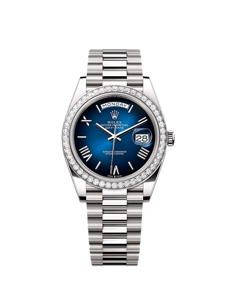 At its launch in 1956, the Day-Date was a major innovation: it was the first calendar wristwatch to indicate, in addition to the date, the day of the week spelt out in full in a window on the dial – a technical feat at the time. The Day-Date has only ever been made from precious metals –18 ct yellow, white or Everose gold, or 950 platinum. Worn by many of the world’s political figures, directors and visionaries, the Day-Date is instantly recognizable, in particular thanks to its emblematic President bracelet, whose evocative name, together with the eminent figures who have worn it, ensured the Day-Date became known as the ‘presidents’ watch’.