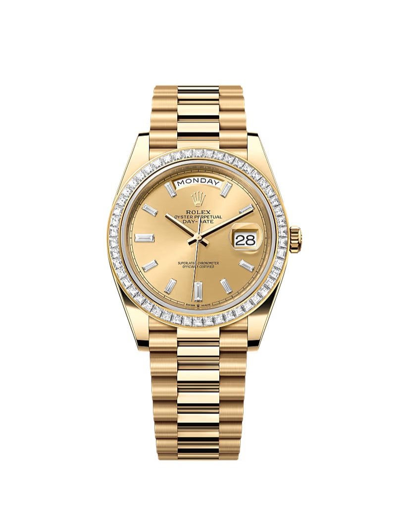 Yellow Gold | President Bracelet | Champagne Diamond Dial | Diamond Baguette Bezel | 40.0mm