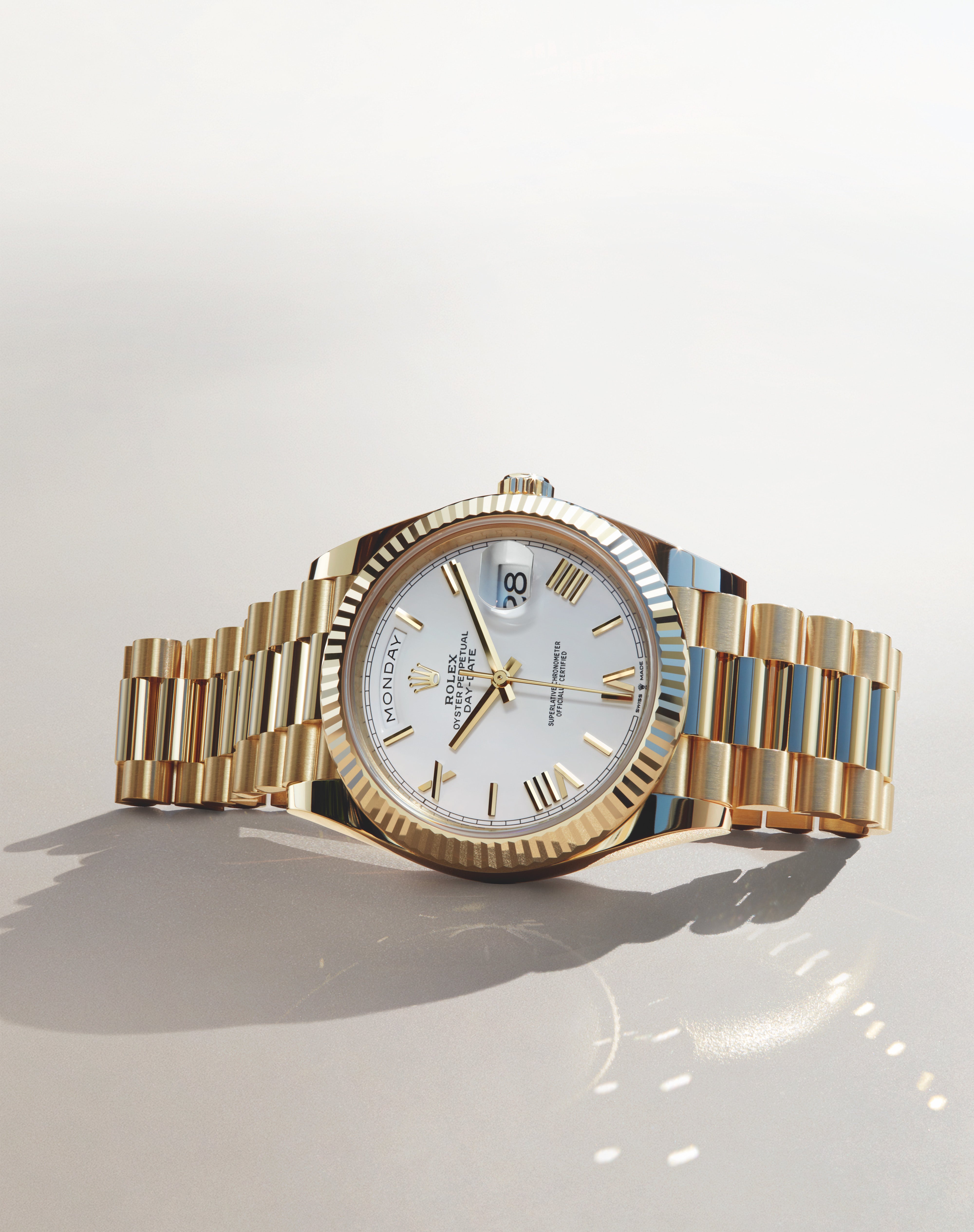 At its launch in 1956, the Day-Date was a major innovation: it was the first calendar wristwatch to indicate, in addition to the date, the day of the week spelt out in full in a window on the dial – a technical feat at the time. The Day-Date has only ever been made from precious metals –18 ct yellow, white or Everose gold, or 950 platinum. Worn by many of the world’s political figures, directors and visionaries, the Day-Date is instantly recognizable, in particular thanks to its emblematic President bracelet, whose evocative name, together with the eminent figures who have worn it, ensured the Day-Date became known as the ‘presidents’ watch’.
