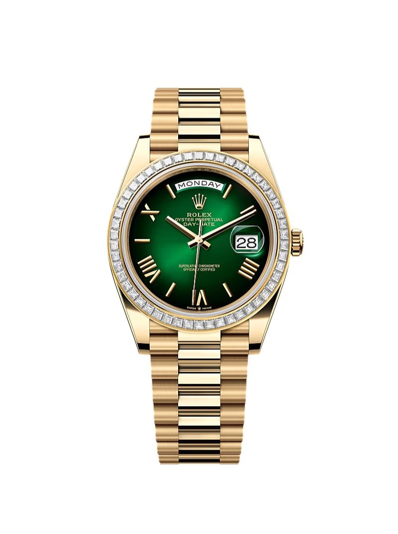 Day-Date 40 Yellow Gold Green Ombré Roman