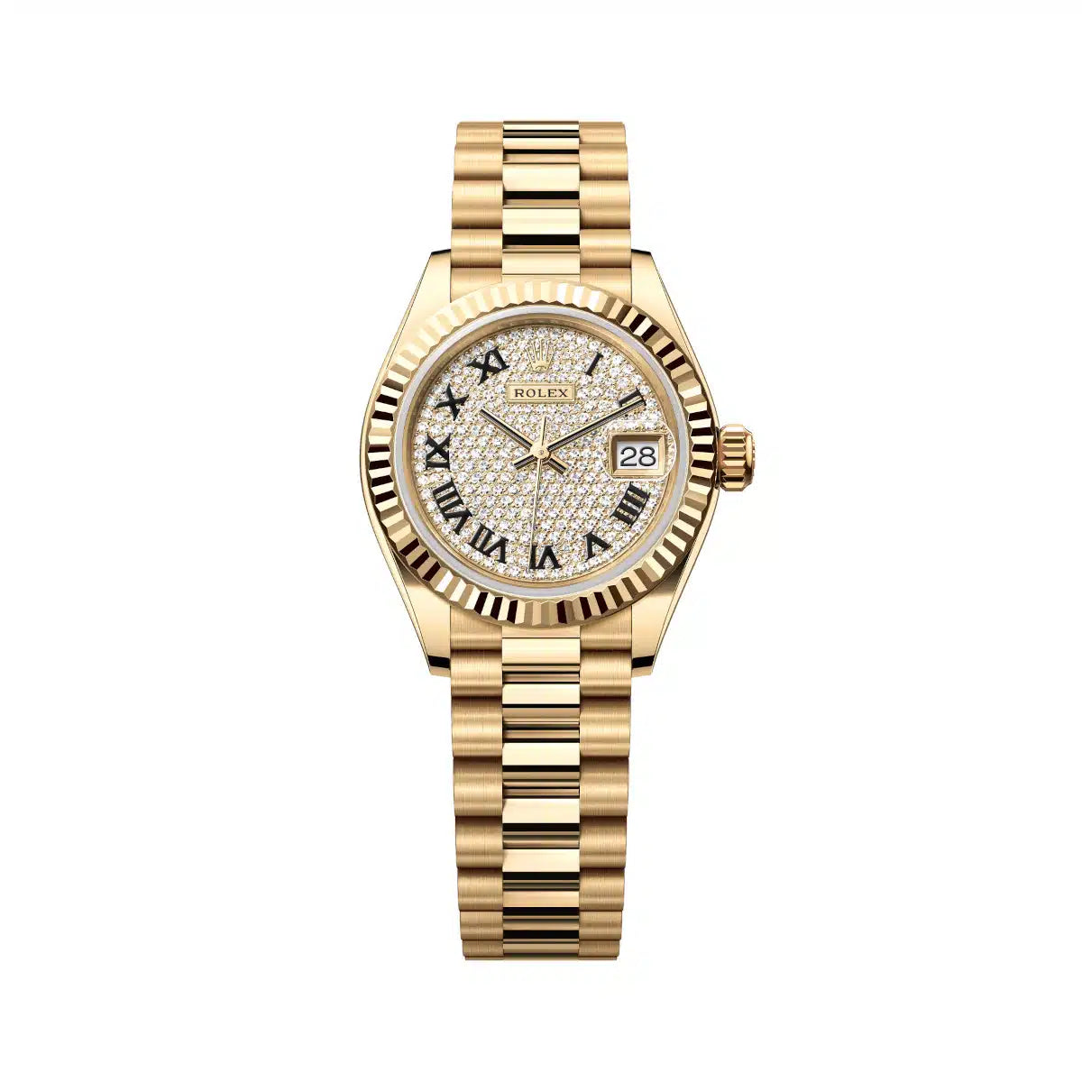 Lady-Datejust Yellow Gold Diamond-Paved Roman