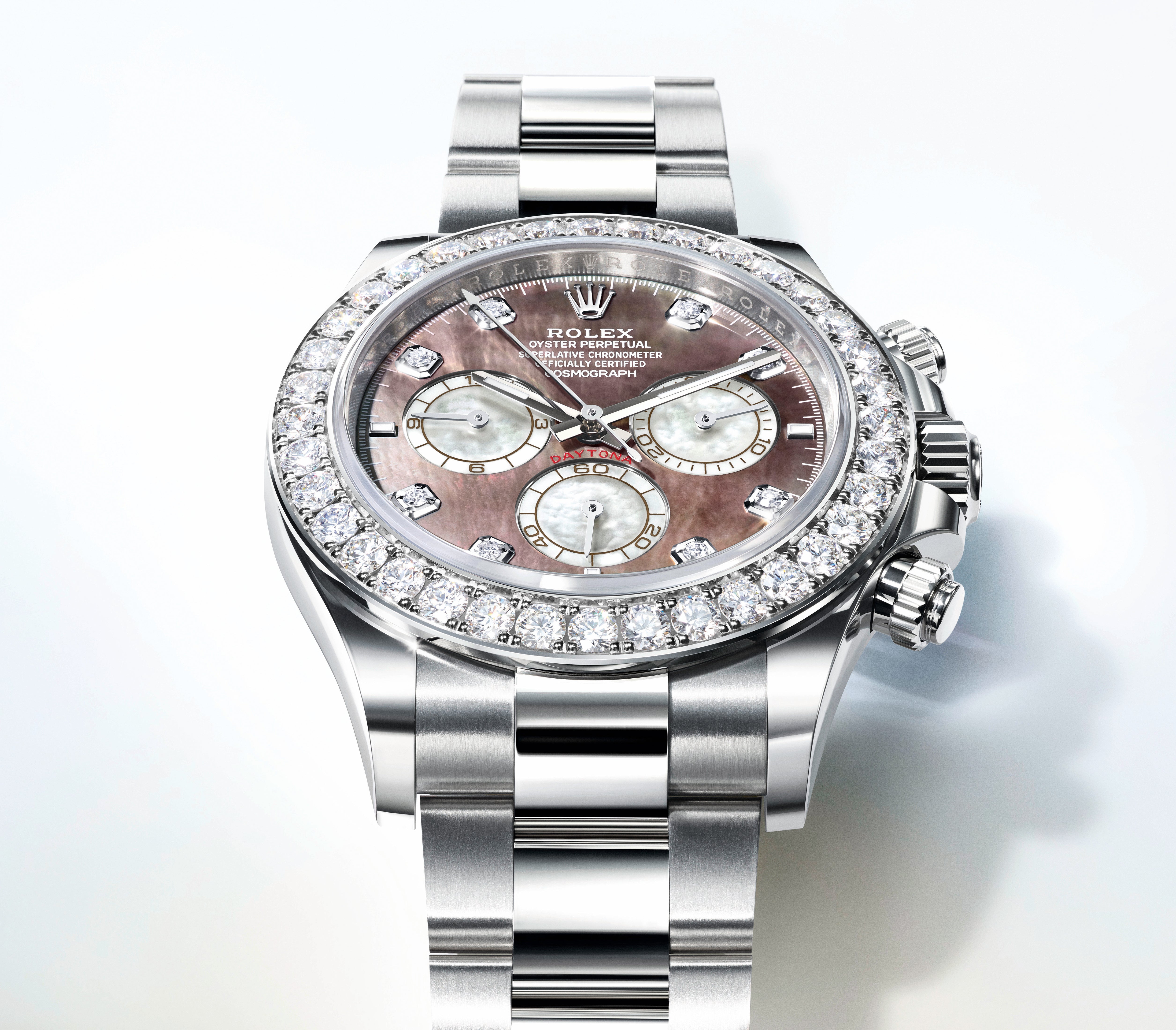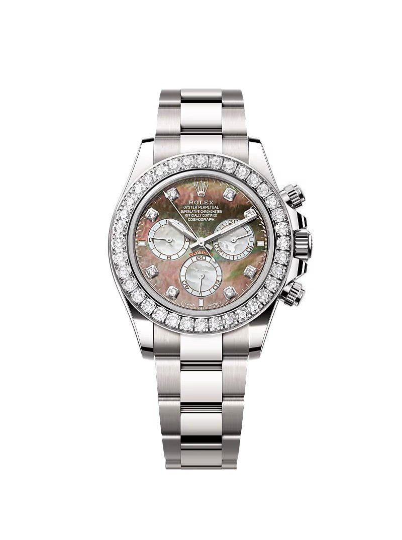 Cosmograph Daytona White Gold Black & White Mother of Pearl Diamond