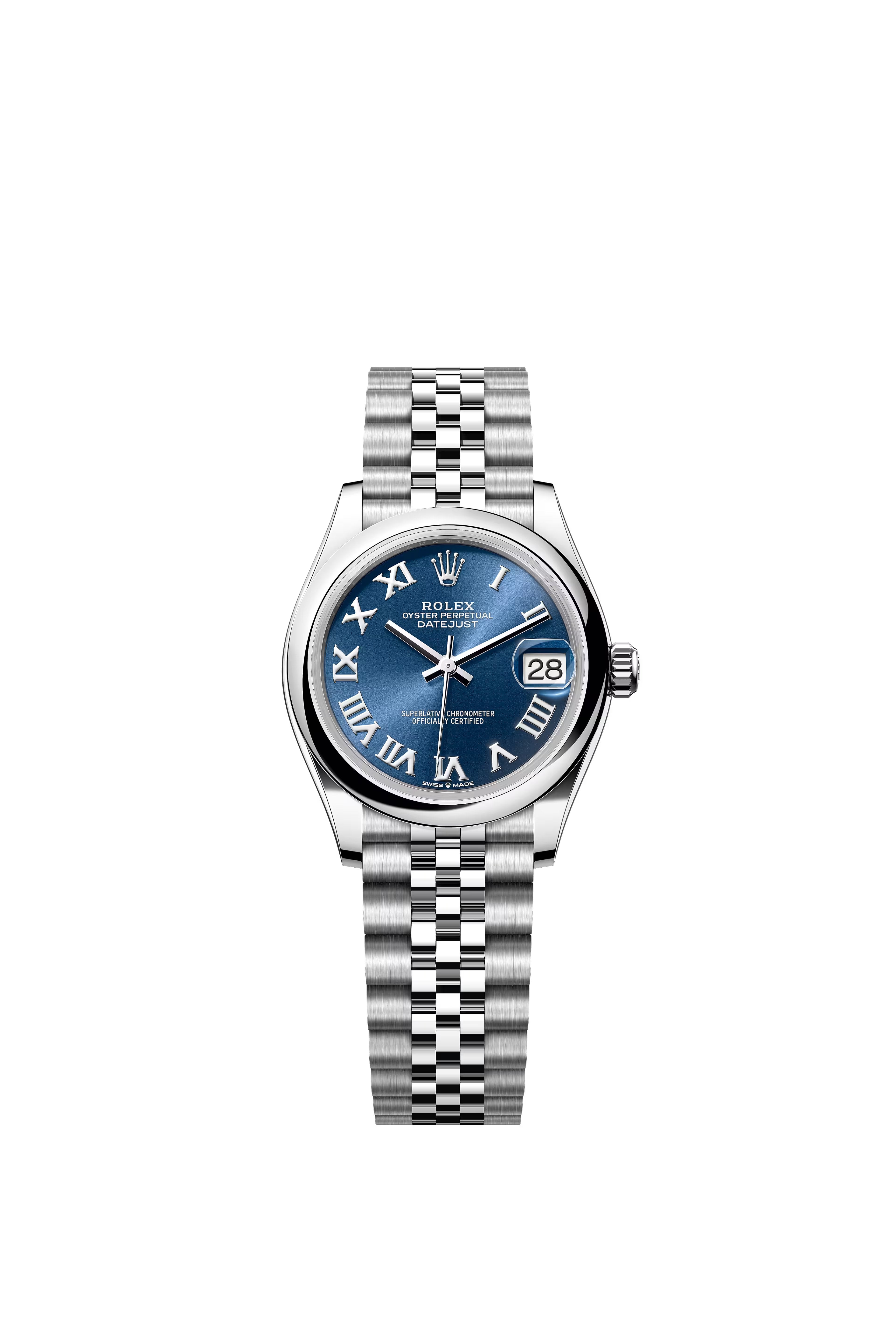 Rolex’s Datejust is the archetype of the classic watch thanks to functions and aesthetics that never go out of fashion. Launched in 1945, it was the first self-winding waterproof chronometer wristwatch to display the date in a window at 3 o’clock on the dial, and consolidated all the major innovations that Rolex had contributed to the modern wristwatch until then. The Datejust has spanned eras while retaining the enduring aesthetic characteristics that make it so instantly recognizable. A paragon of robustness and elegance, the Oyster case of the Datejust 31 is guaranteed waterproof to a depth of 100 meters (330 feet) and is equipped with calibre 2236, a movement entirely developed and manufactured by Rolex.
