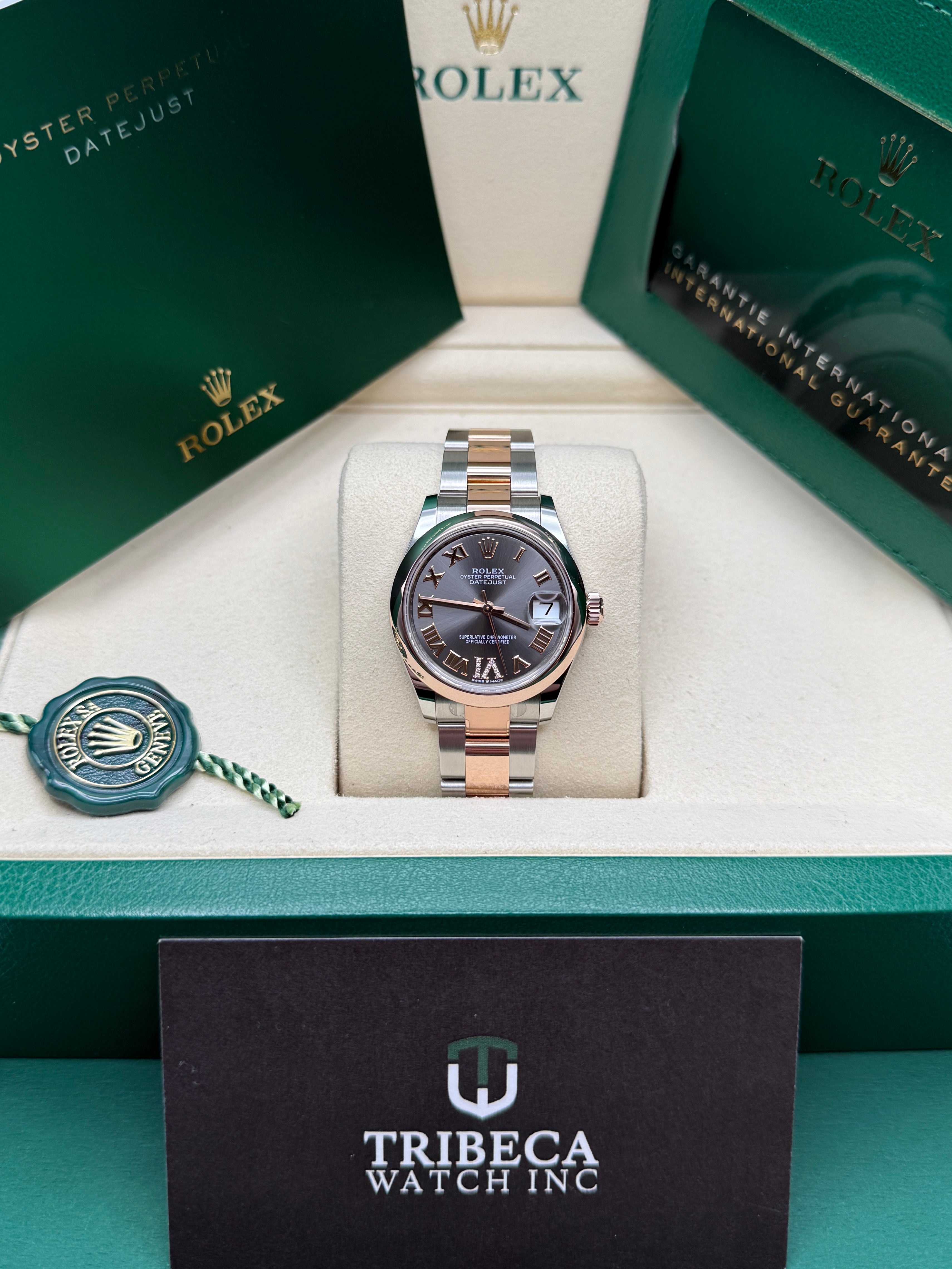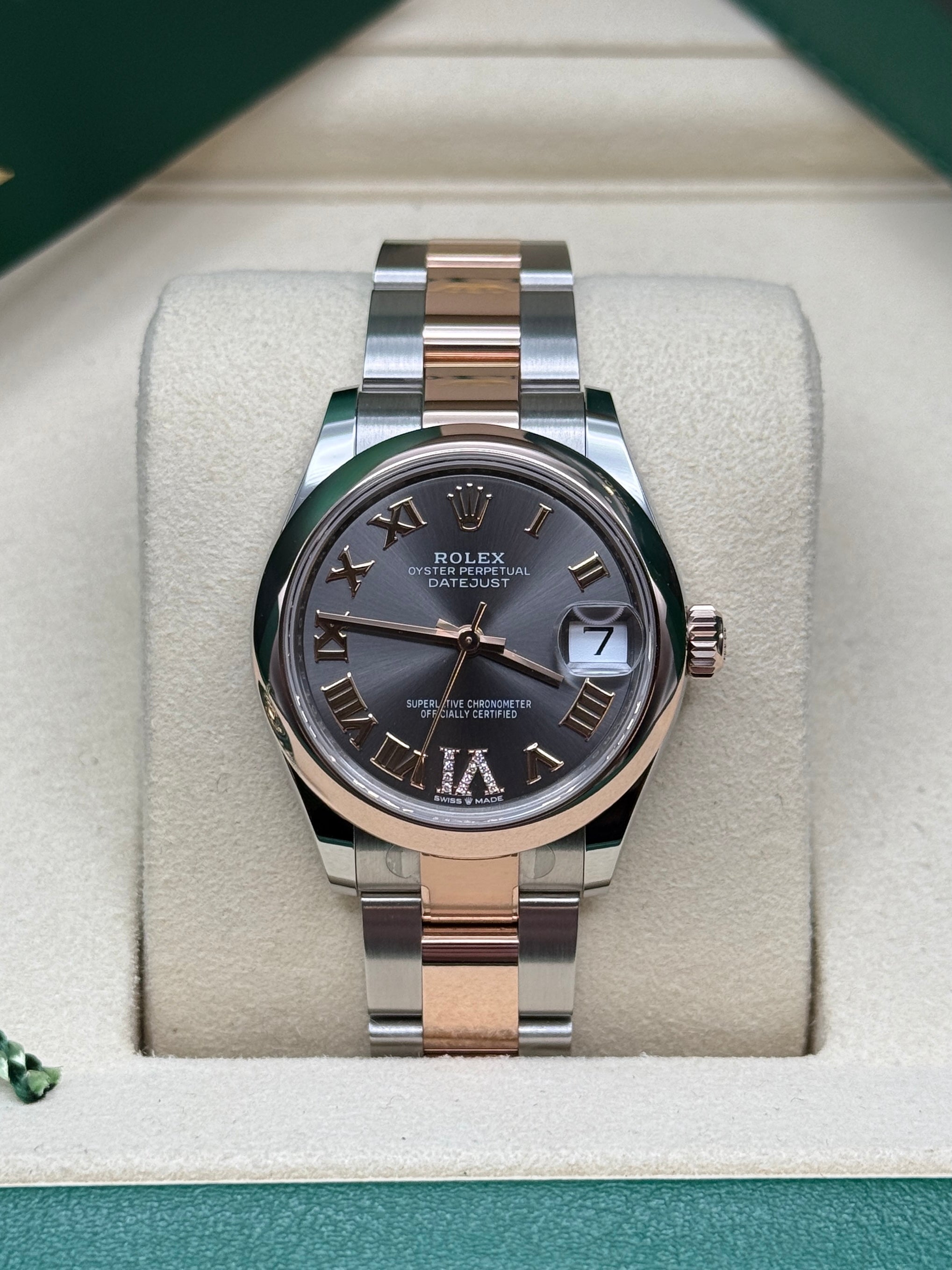 Datejust 31 Everose Gold Two-Tone Slate Roman Diamond