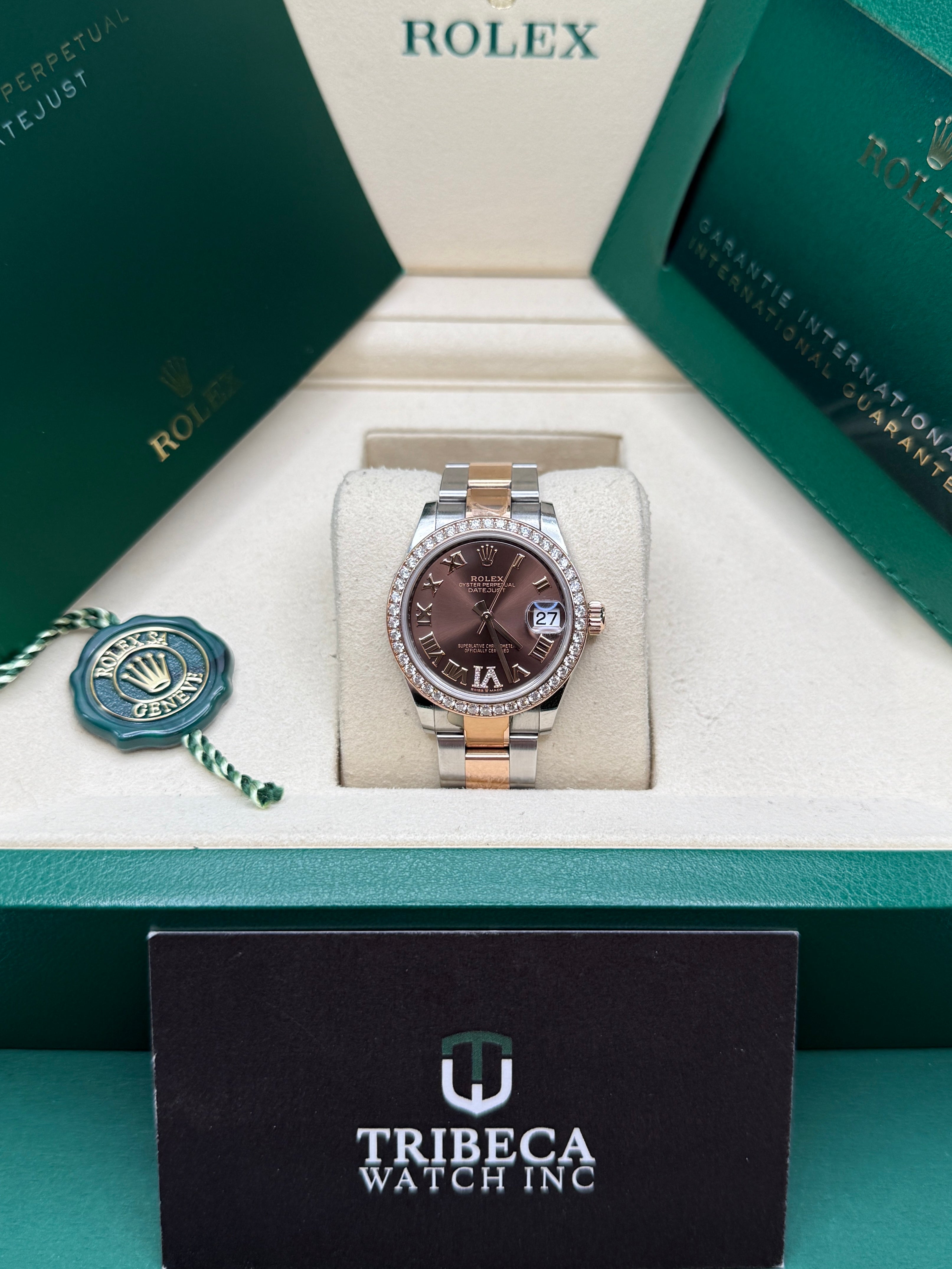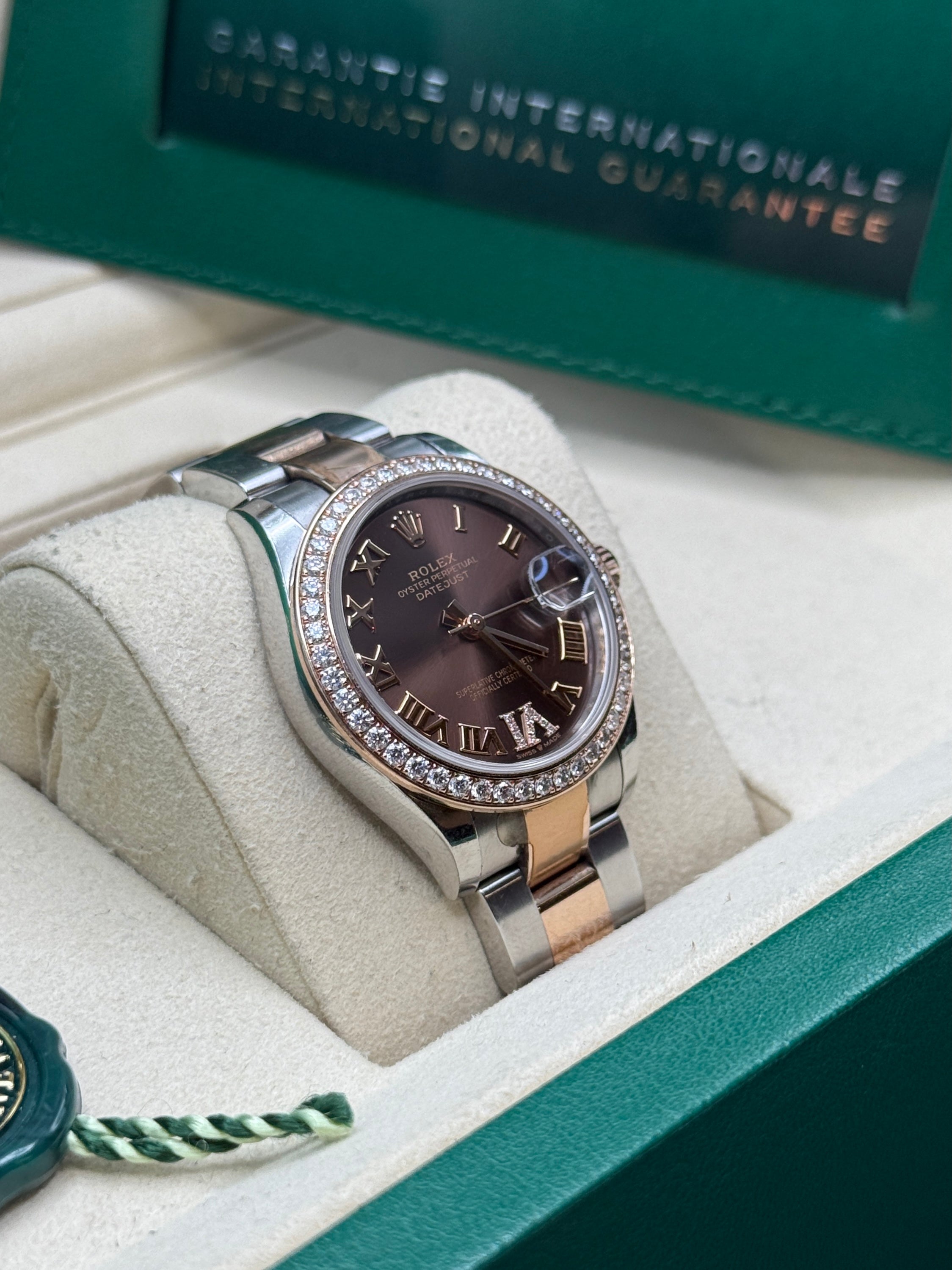 Datejust 31 Everose Gold Two-Tone Chocolate Roman Diamond
