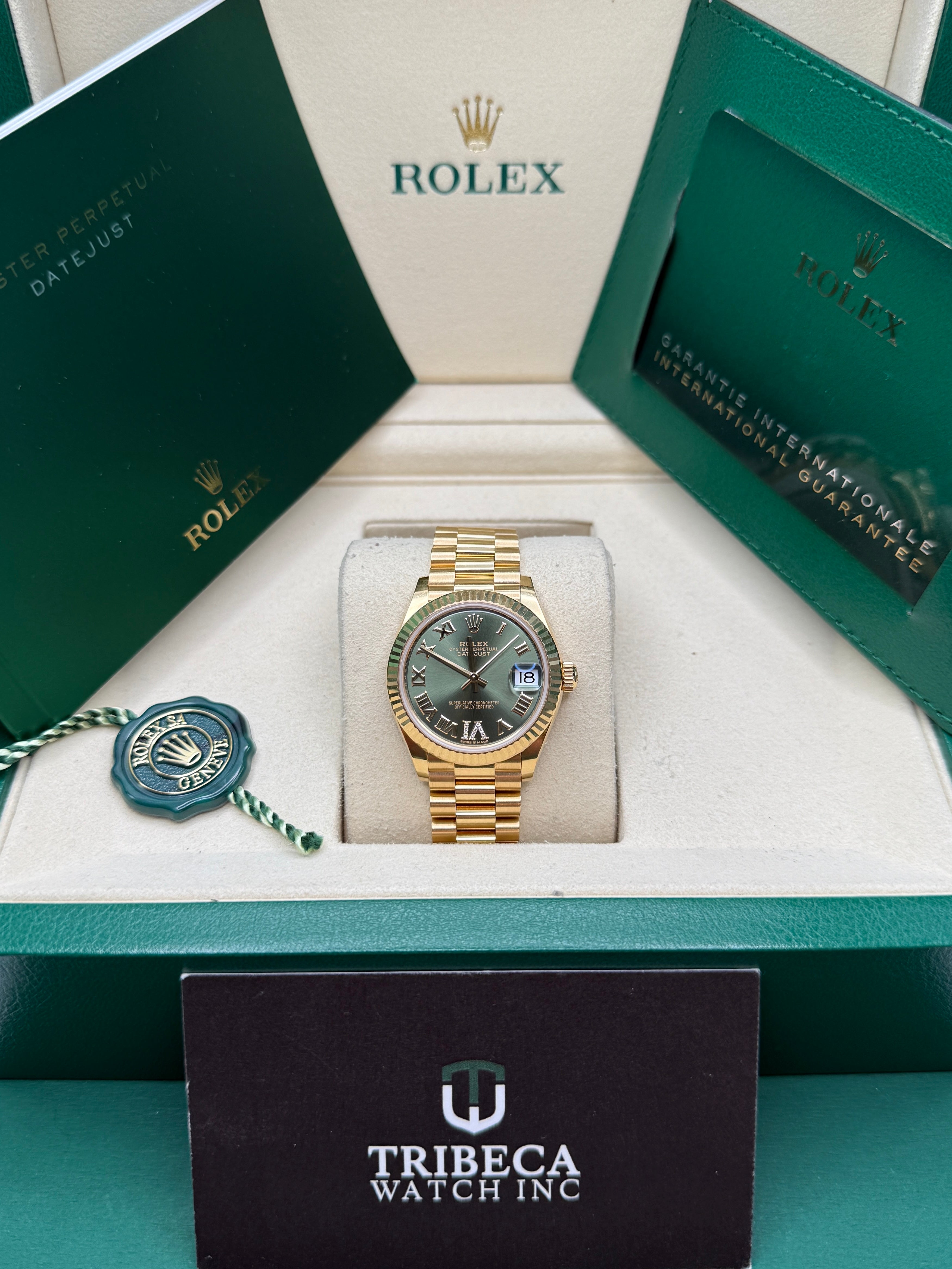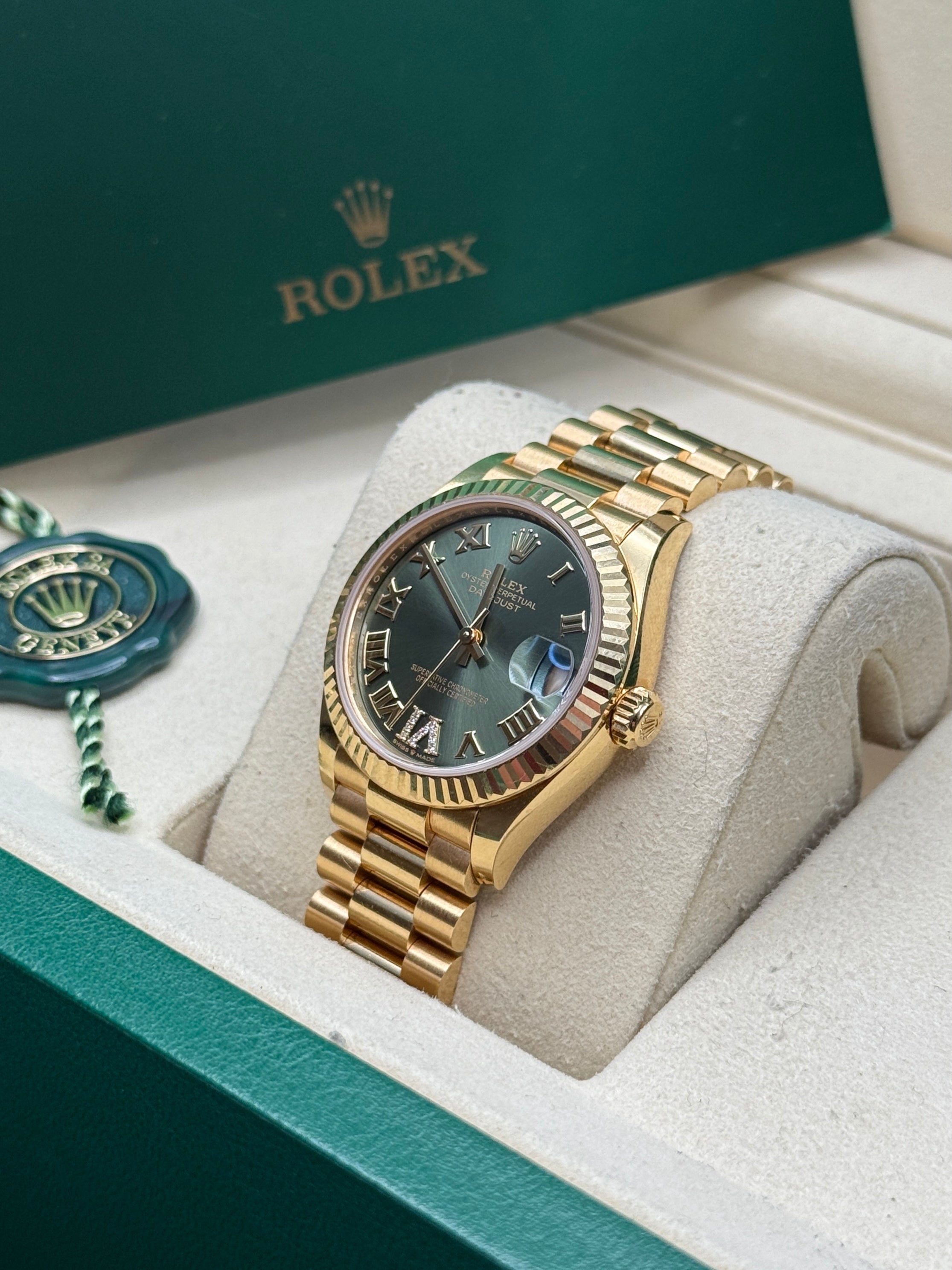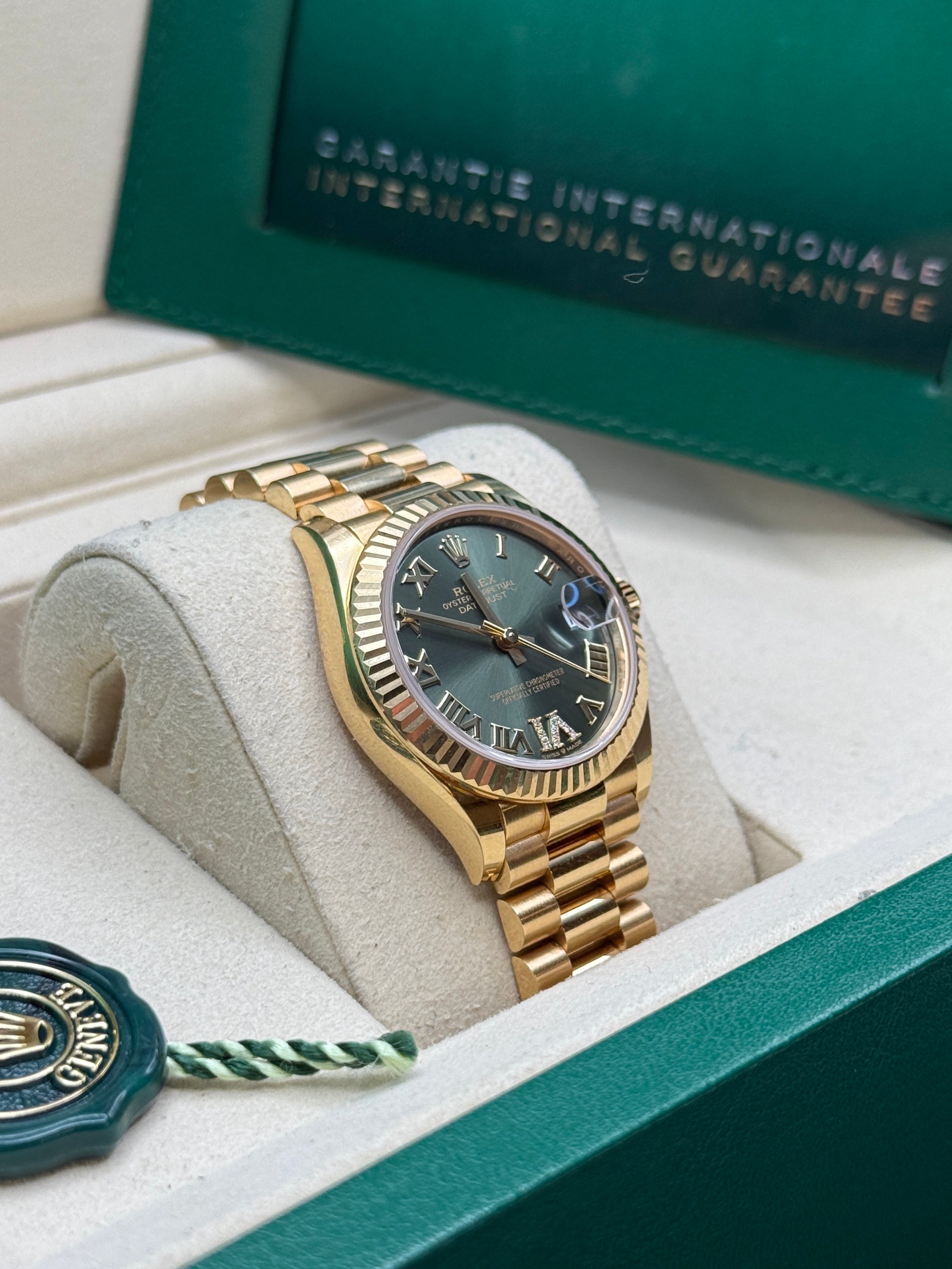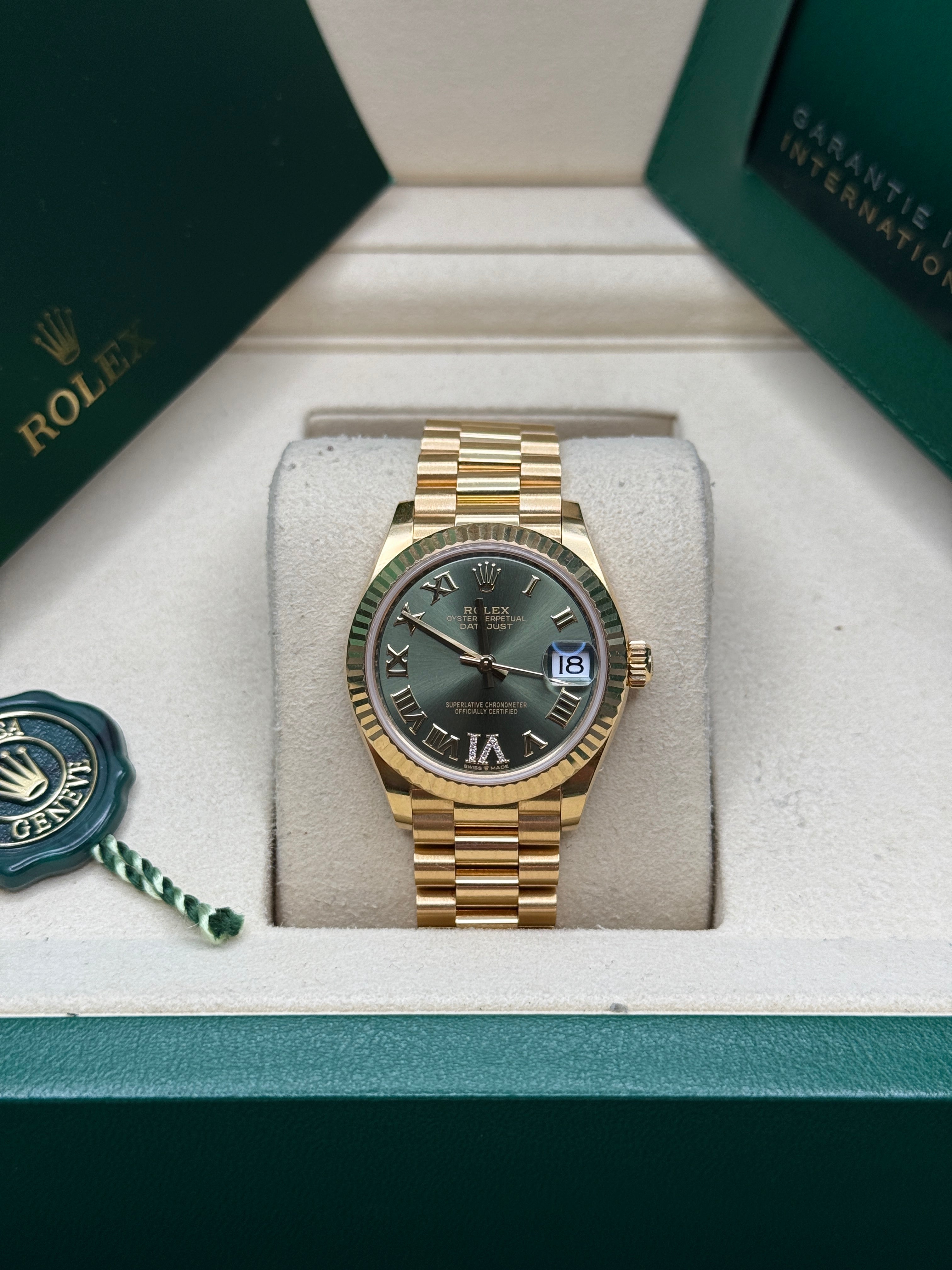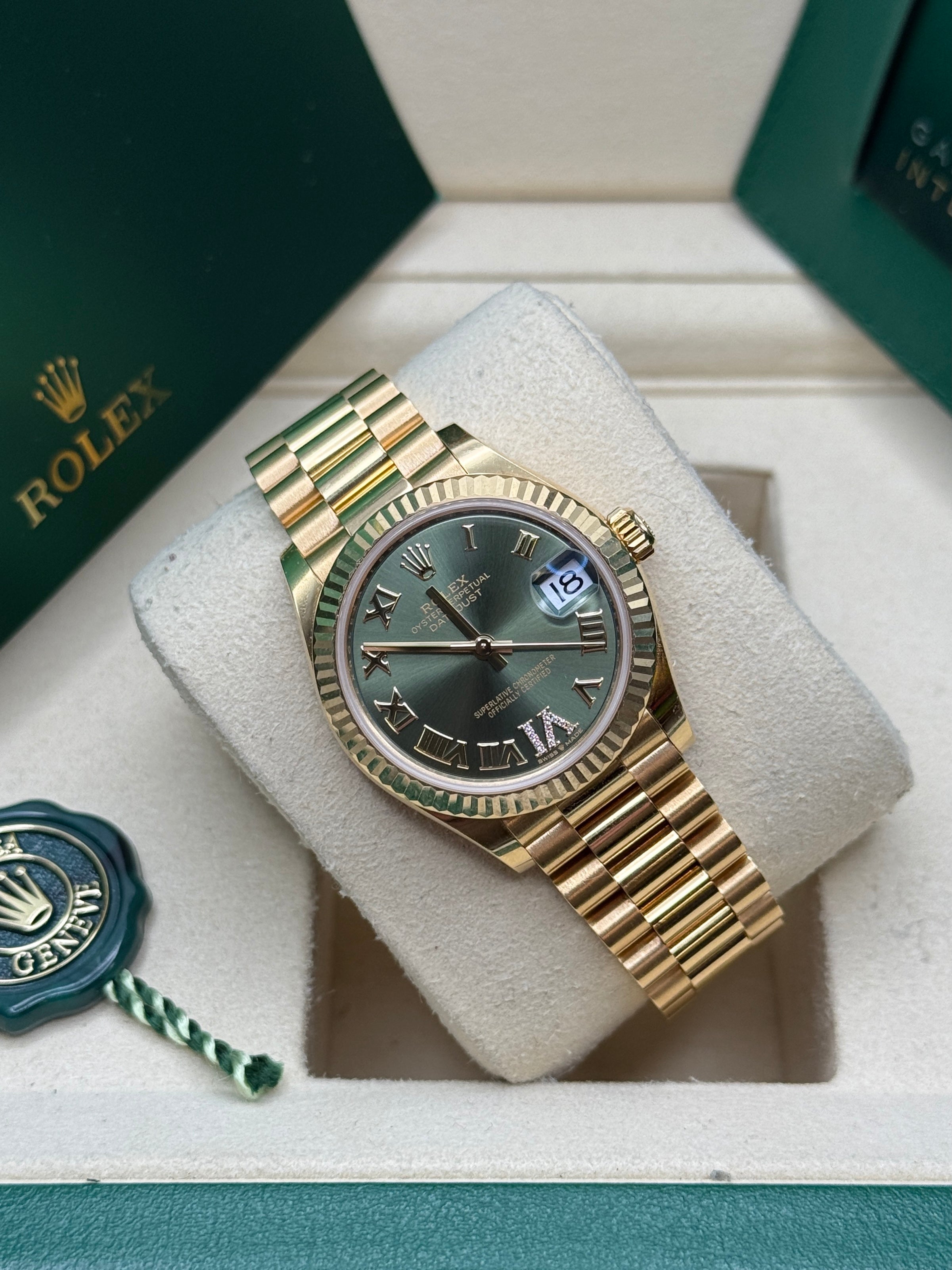 Datejust 31 Yellow Gold Olive Green Roman Diamond