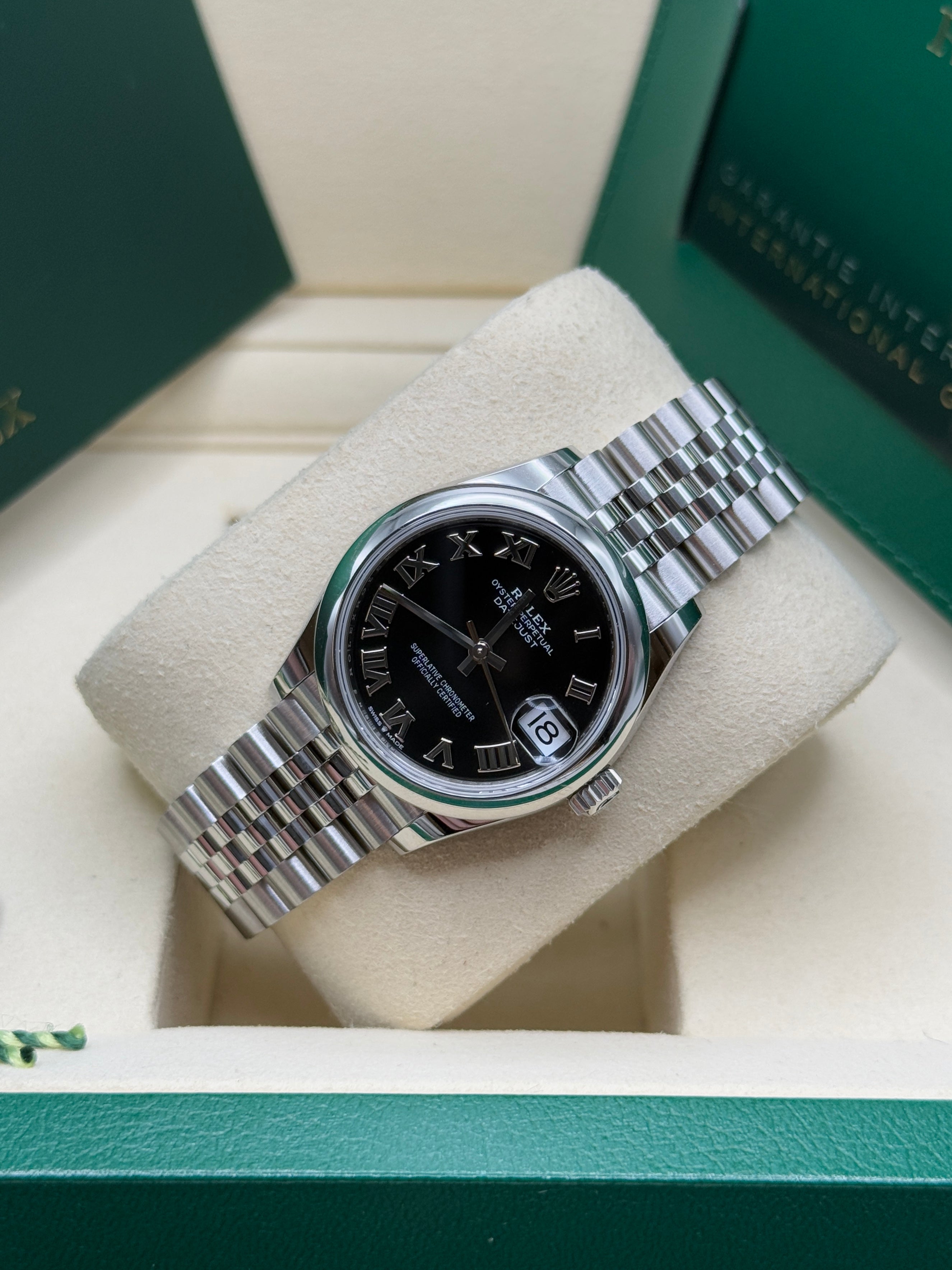 Rolex’s Datejust is the archetype of the classic watch thanks to functions and aesthetics that never go out of fashion. Launched in 1945, it was the first self-winding waterproof chronometer wristwatch to display the date in a window at 3 o’clock on the dial, and consolidated all the major innovations that Rolex had contributed to the modern wristwatch until then. The Datejust has spanned eras while retaining the enduring aesthetic characteristics that make it so instantly recognizable. A paragon of robustness and elegance, the Oyster case of the Datejust 31 is guaranteed waterproof to a depth of 100 meters (330 feet) and is equipped with calibre 2236, a movement entirely developed and manufactured by Rolex.