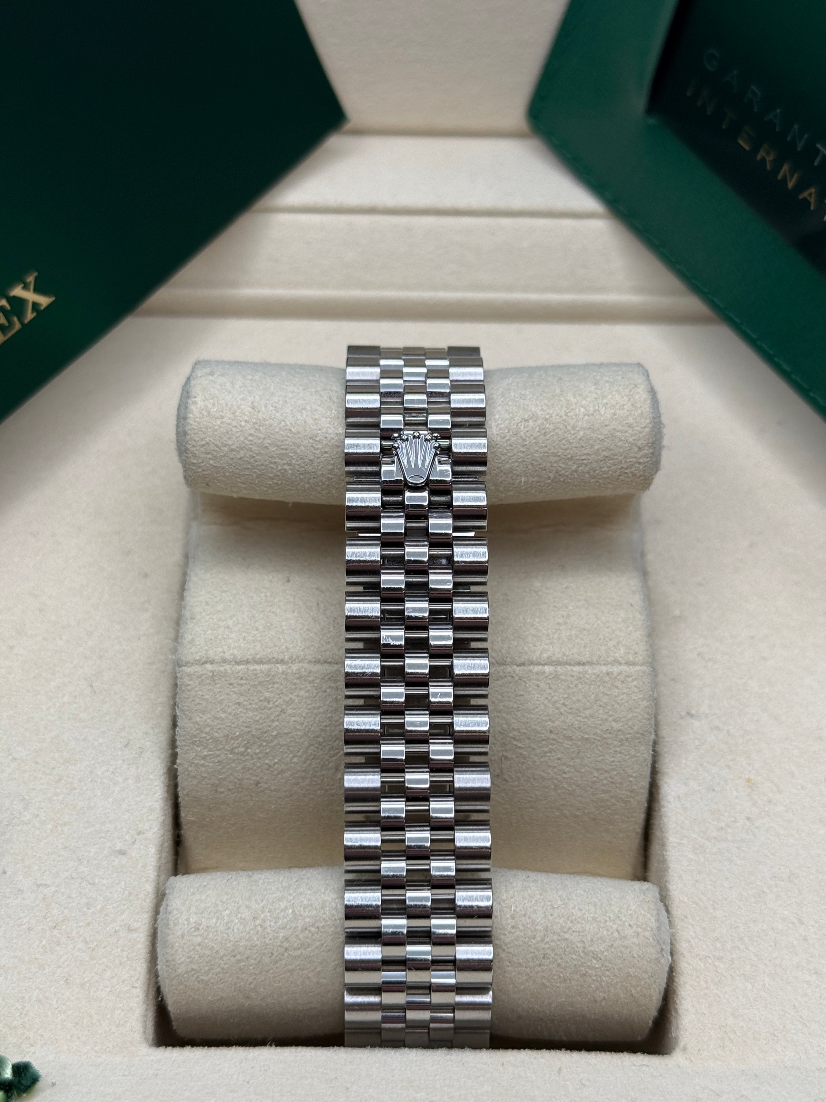 Rolex’s Datejust is the archetype of the classic watch thanks to functions and aesthetics that never go out of fashion. Launched in 1945, it was the first self-winding waterproof chronometer wristwatch to display the date in a window at 3 o’clock on the dial, and consolidated all the major innovations that Rolex had contributed to the modern wristwatch until then. The Datejust has spanned eras while retaining the enduring aesthetic characteristics that make it so instantly recognizable. A paragon of robustness and elegance, the Oyster case of the Datejust 31 is guaranteed waterproof to a depth of 100 meters (330 feet) and is equipped with calibre 2236, a movement entirely developed and manufactured by Rolex.