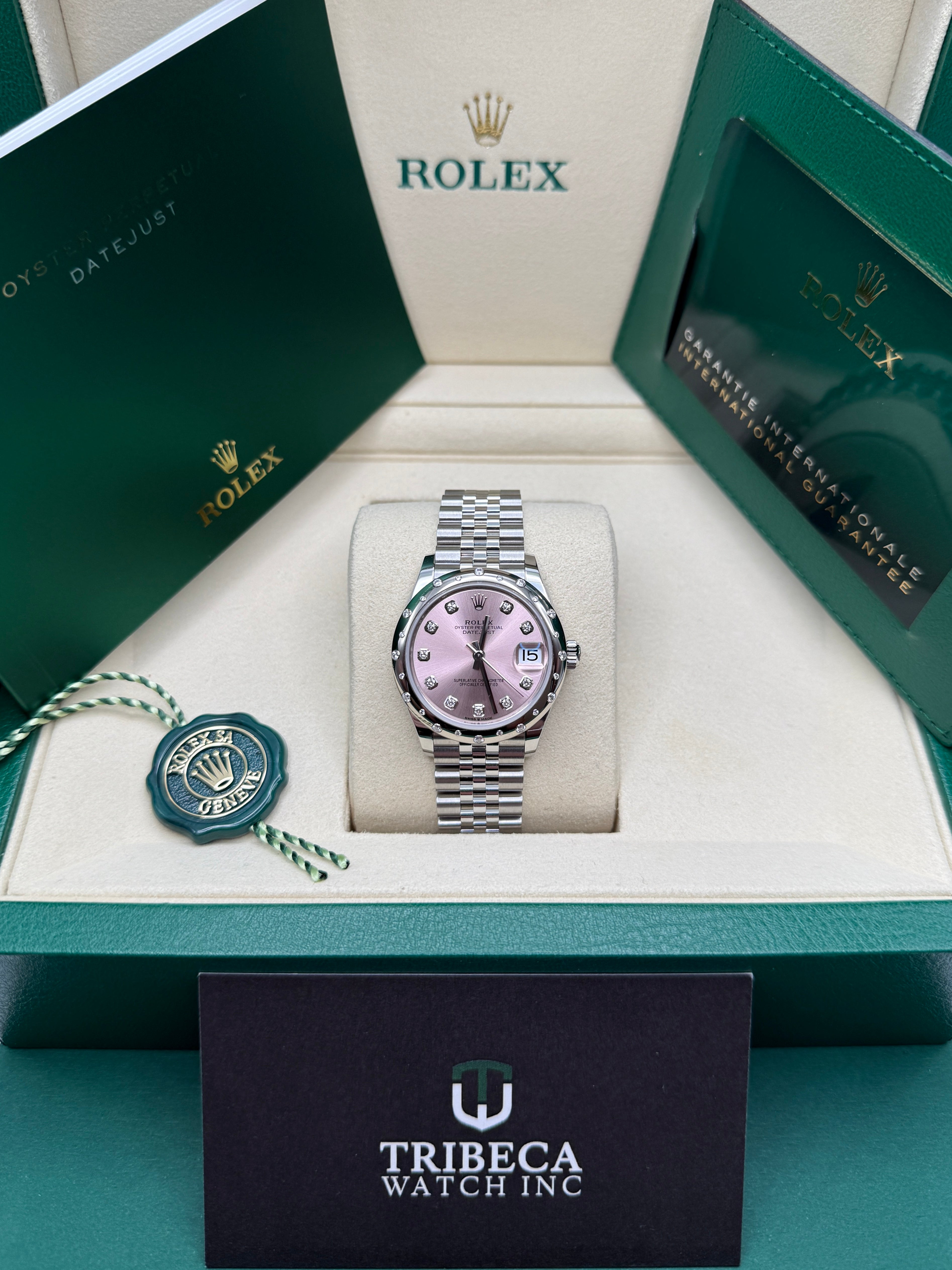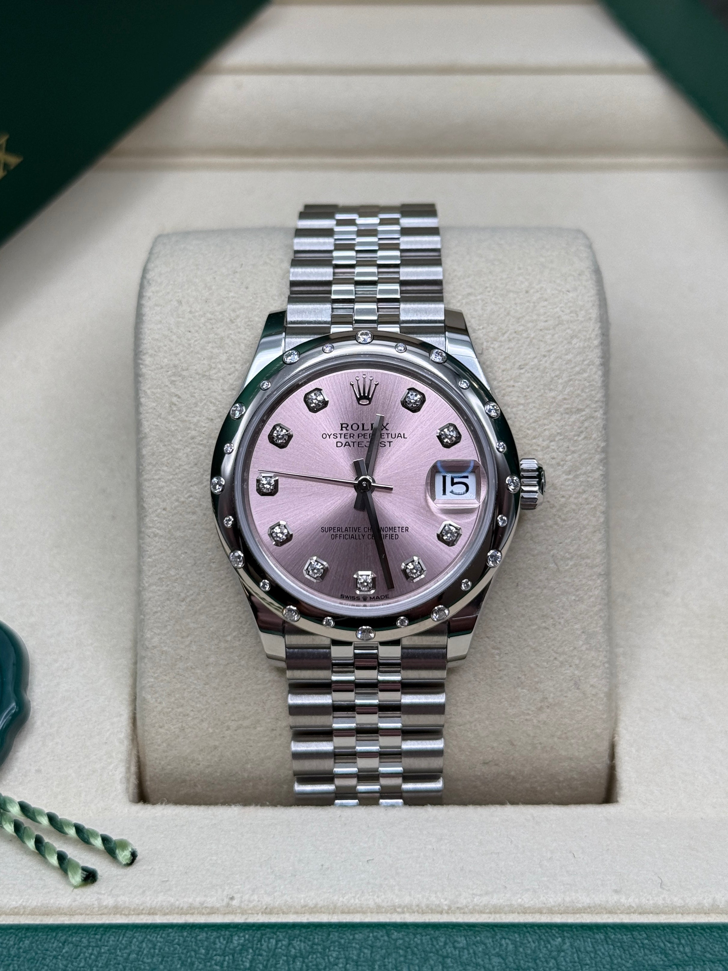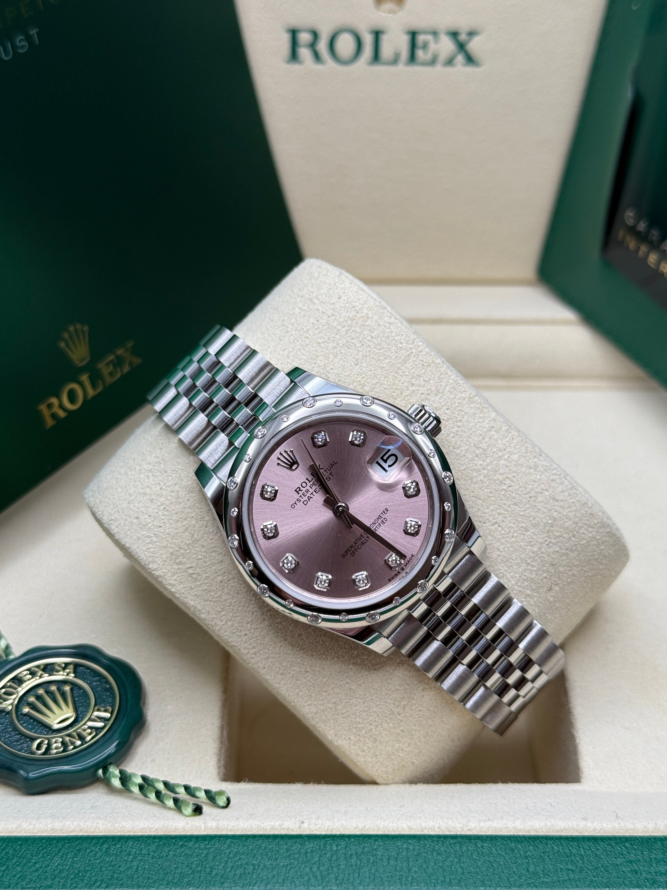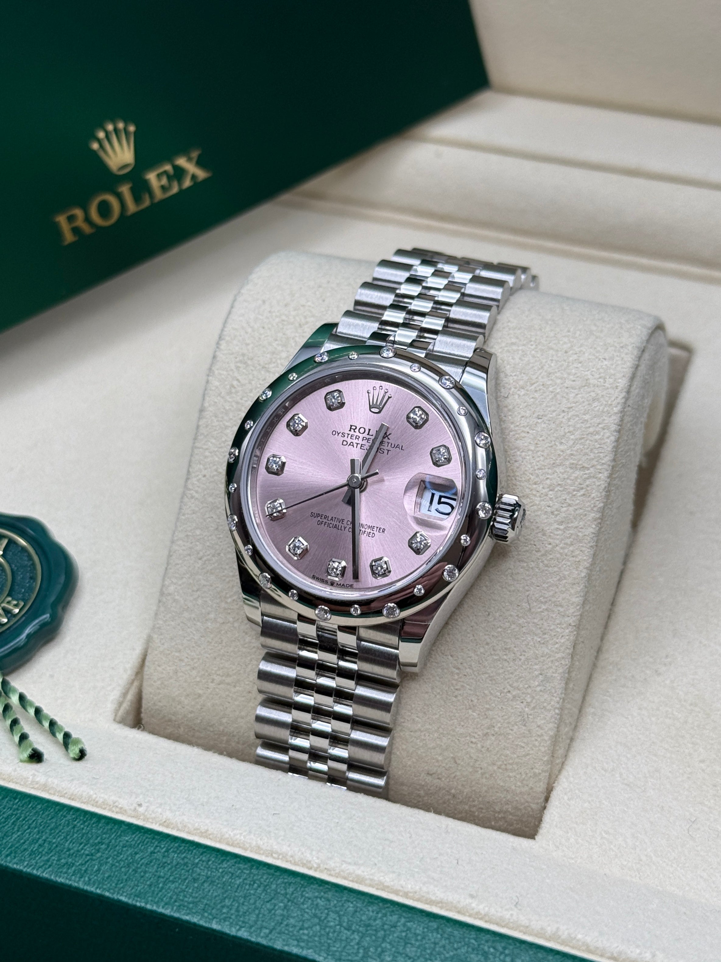 Rolex’s Datejust is the archetype of the classic watch thanks to functions and aesthetics that never go out of fashion. Launched in 1945, it was the first self-winding waterproof chronometer wristwatch to display the date in a window at 3 o’clock on the dial, and consolidated all the major innovations that Rolex had contributed to the modern wristwatch until then. The Datejust has spanned eras while retaining the enduring aesthetic characteristics that make it so instantly recognizable. A paragon of robustness and elegance, the Oyster case of the Datejust 31 is guaranteed waterproof to a depth of 100 meters (330 feet) and is equipped with calibre 2236, a movement entirely developed and manufactured by Rolex.