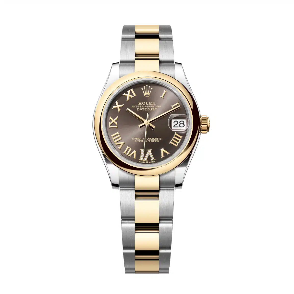 Datejust 31 Yellow Gold Two-Tone Black Dark Grey Roman Diamond
