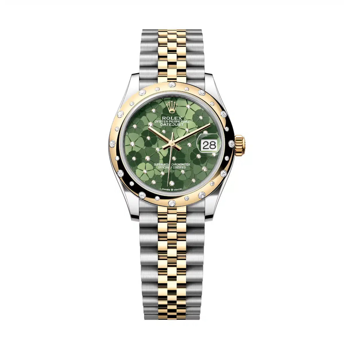 Datejust 31 Yellow Gold Two-Tone Olive Green Floral-Motif Diamond