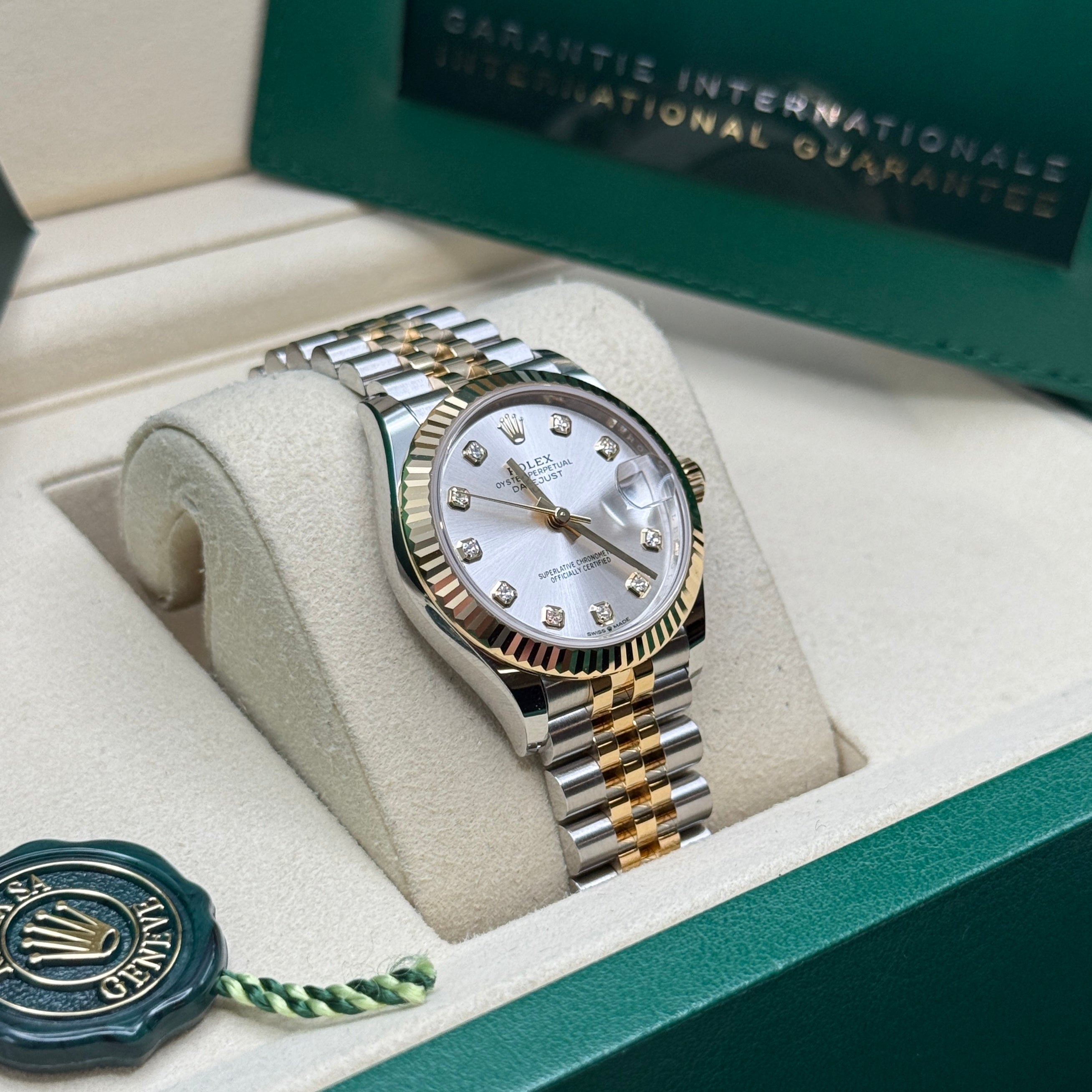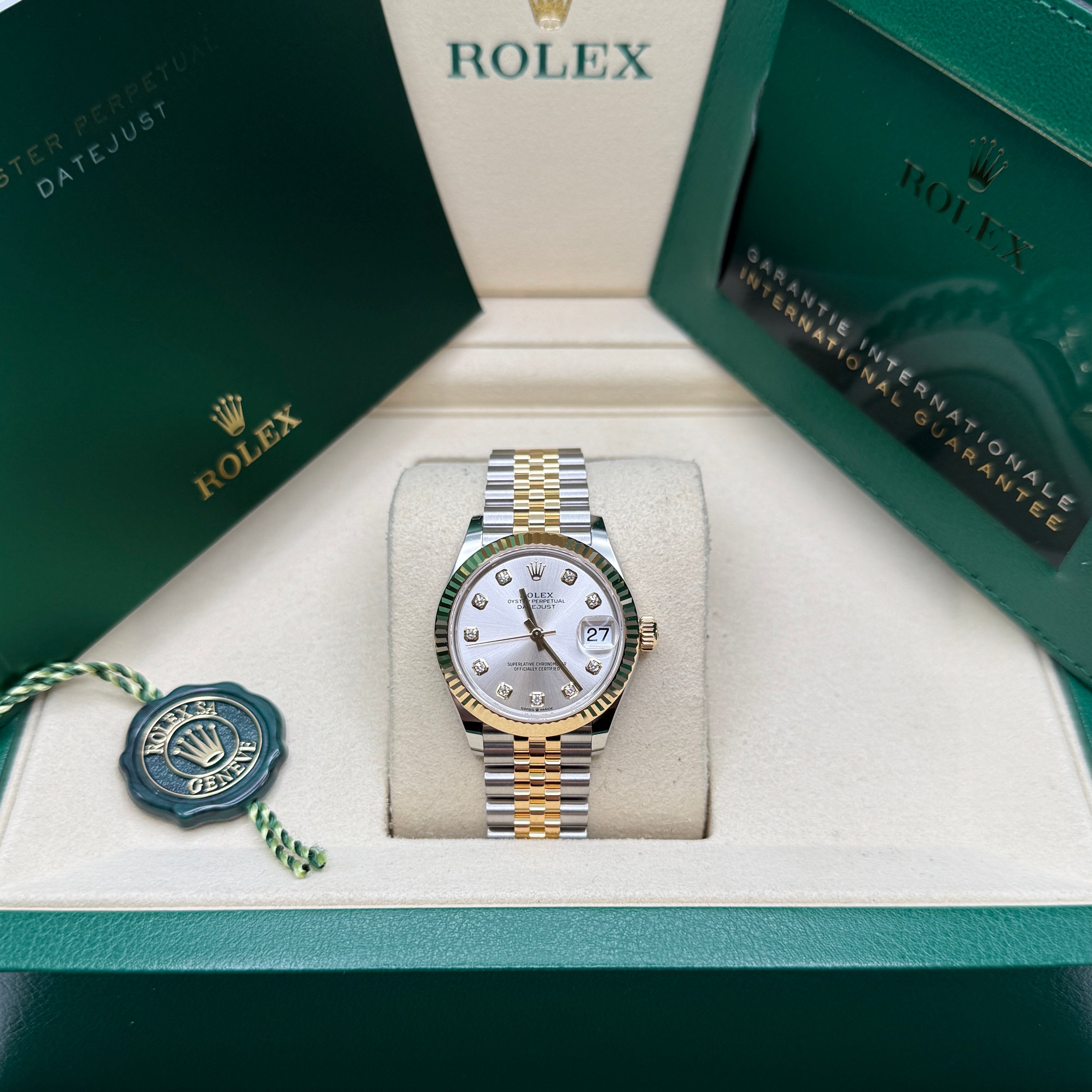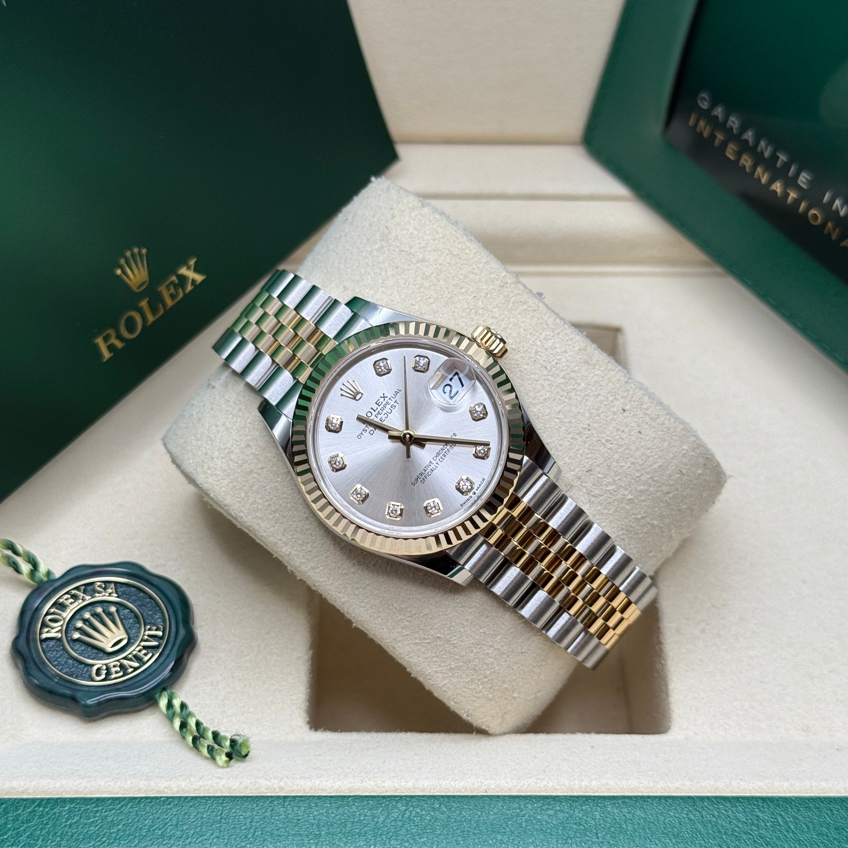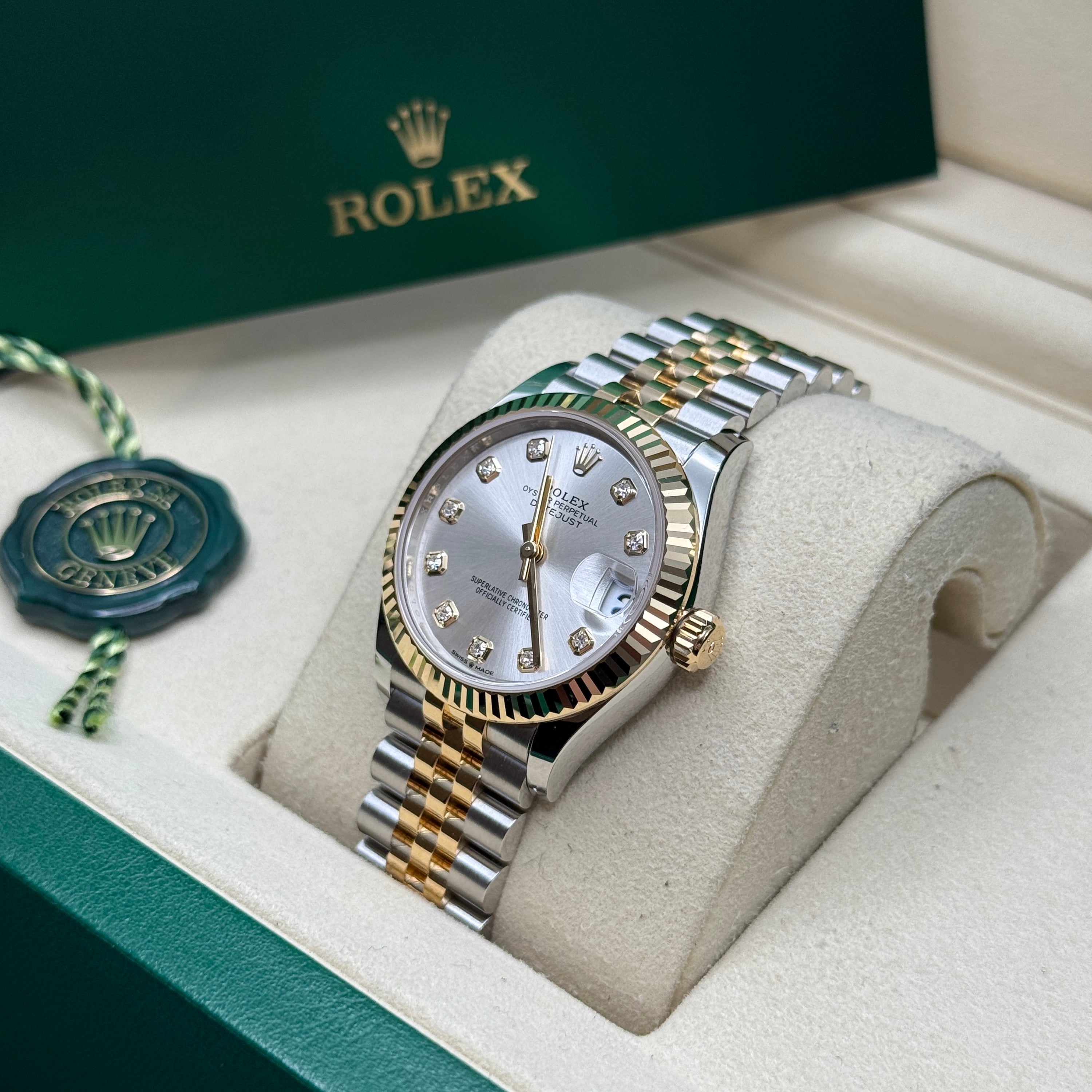Rolex’s Datejust is the archetype of the classic watch thanks to functions and aesthetics that never go out of fashion. Launched in 1945, it was the first self-winding waterproof chronometer wristwatch to display the date in a window at 3 o’clock on the dial, and consolidated all the major innovations that Rolex had contributed to the modern wristwatch until then. The Datejust has spanned eras while retaining the enduring aesthetic characteristics that make it so instantly recognizable. A paragon of robustness and elegance, the Oyster case of the Datejust 31 is guaranteed waterproof to a depth of 100 meters (330 feet) and is equipped with calibre 2236, a movement entirely developed and manufactured by Rolex.