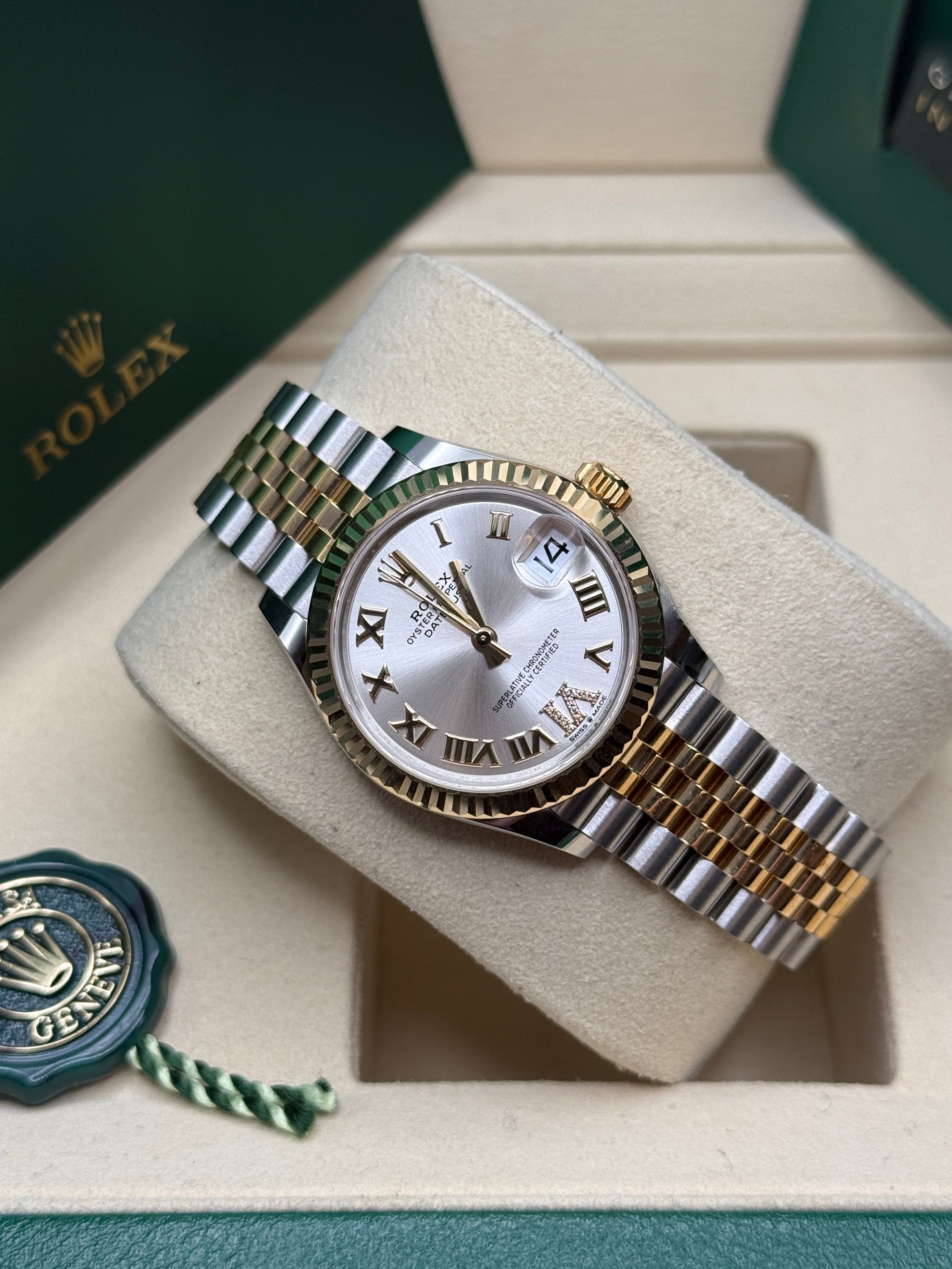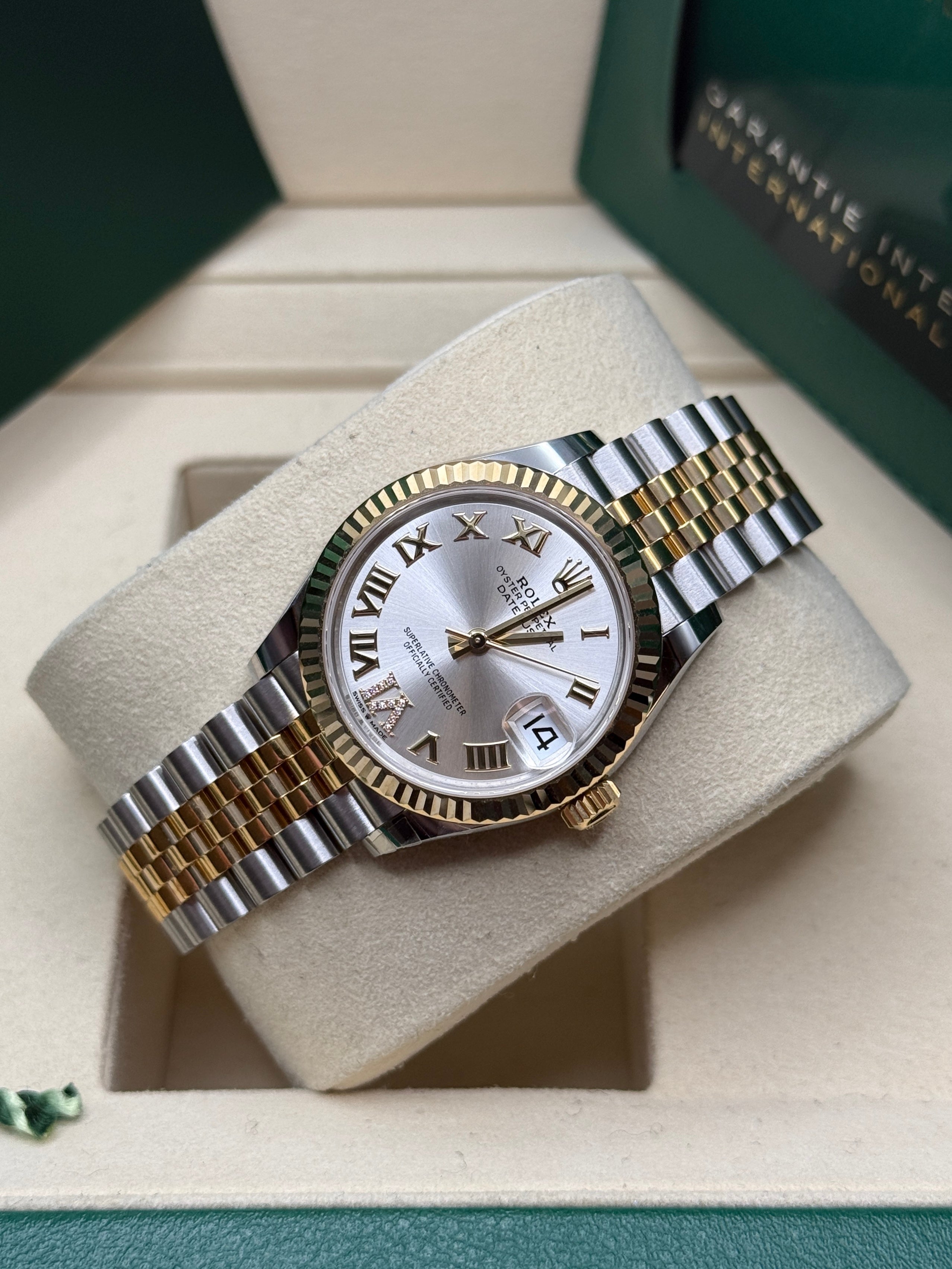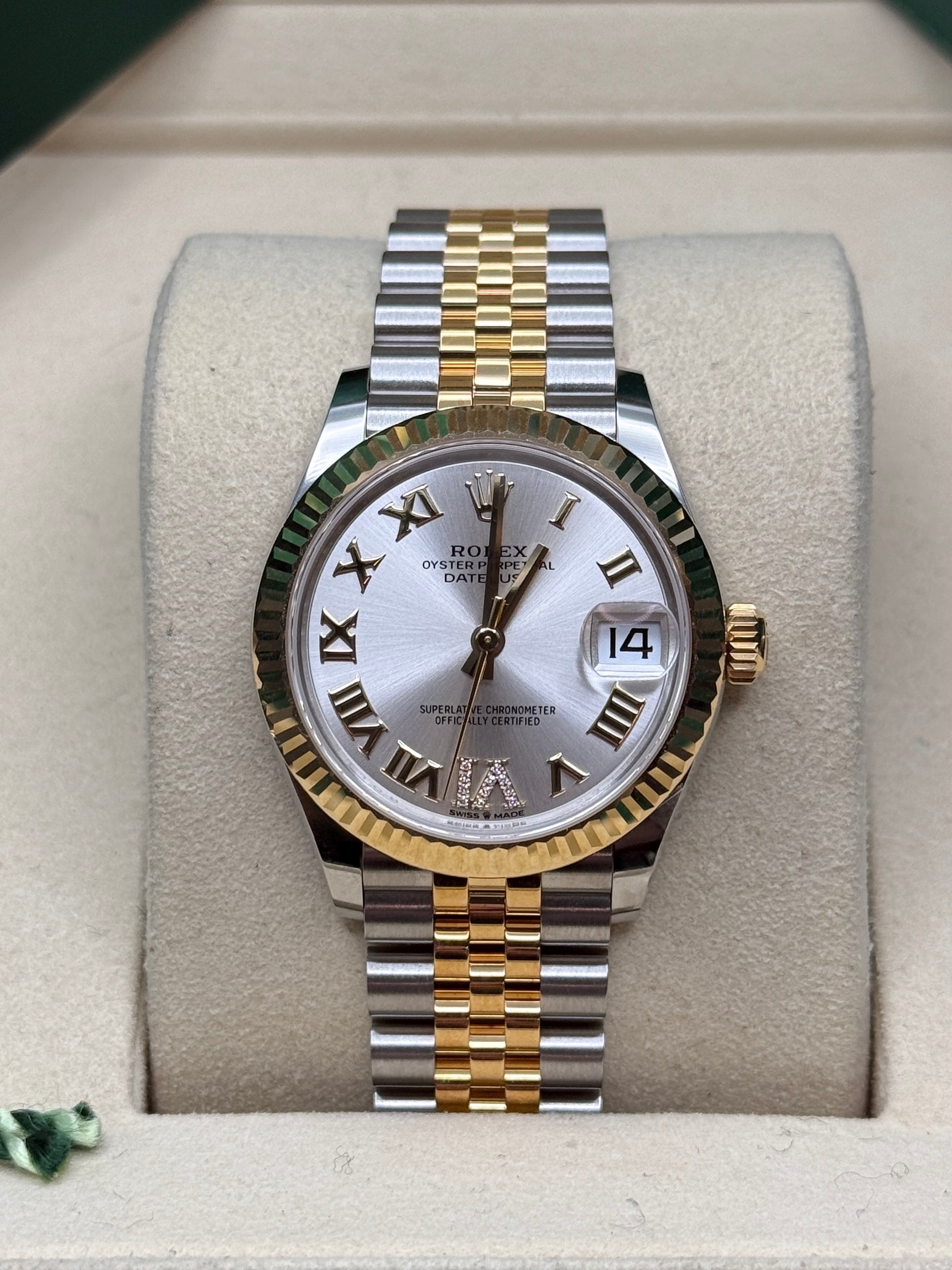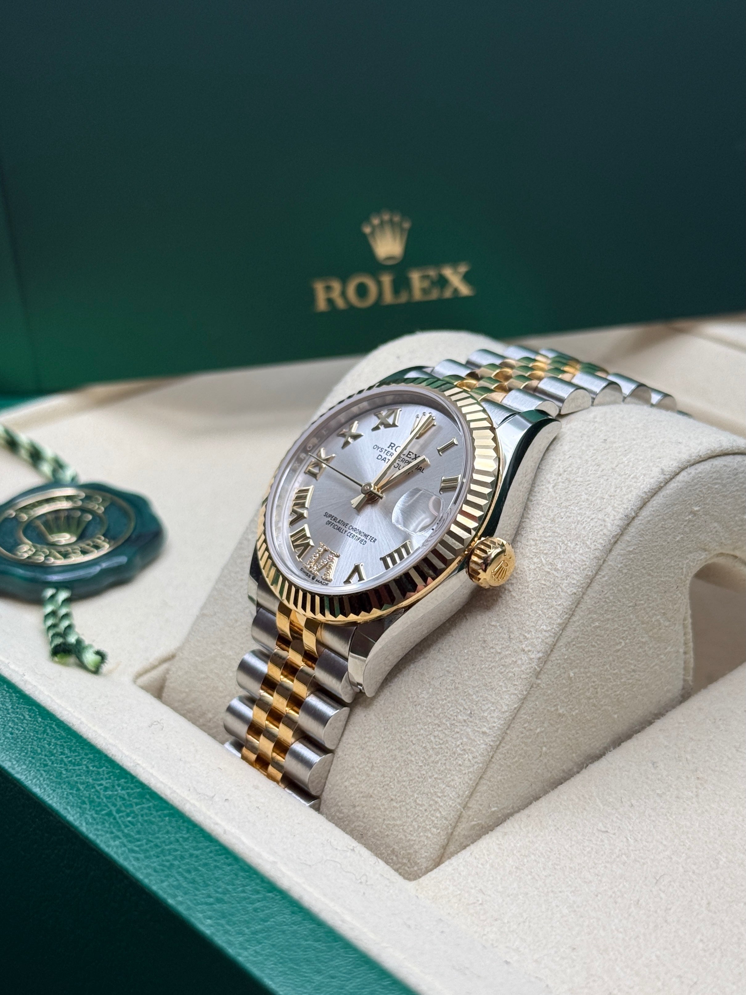 Datejust 31 Yellow Gold Two-Tone Silver Roman Diamond