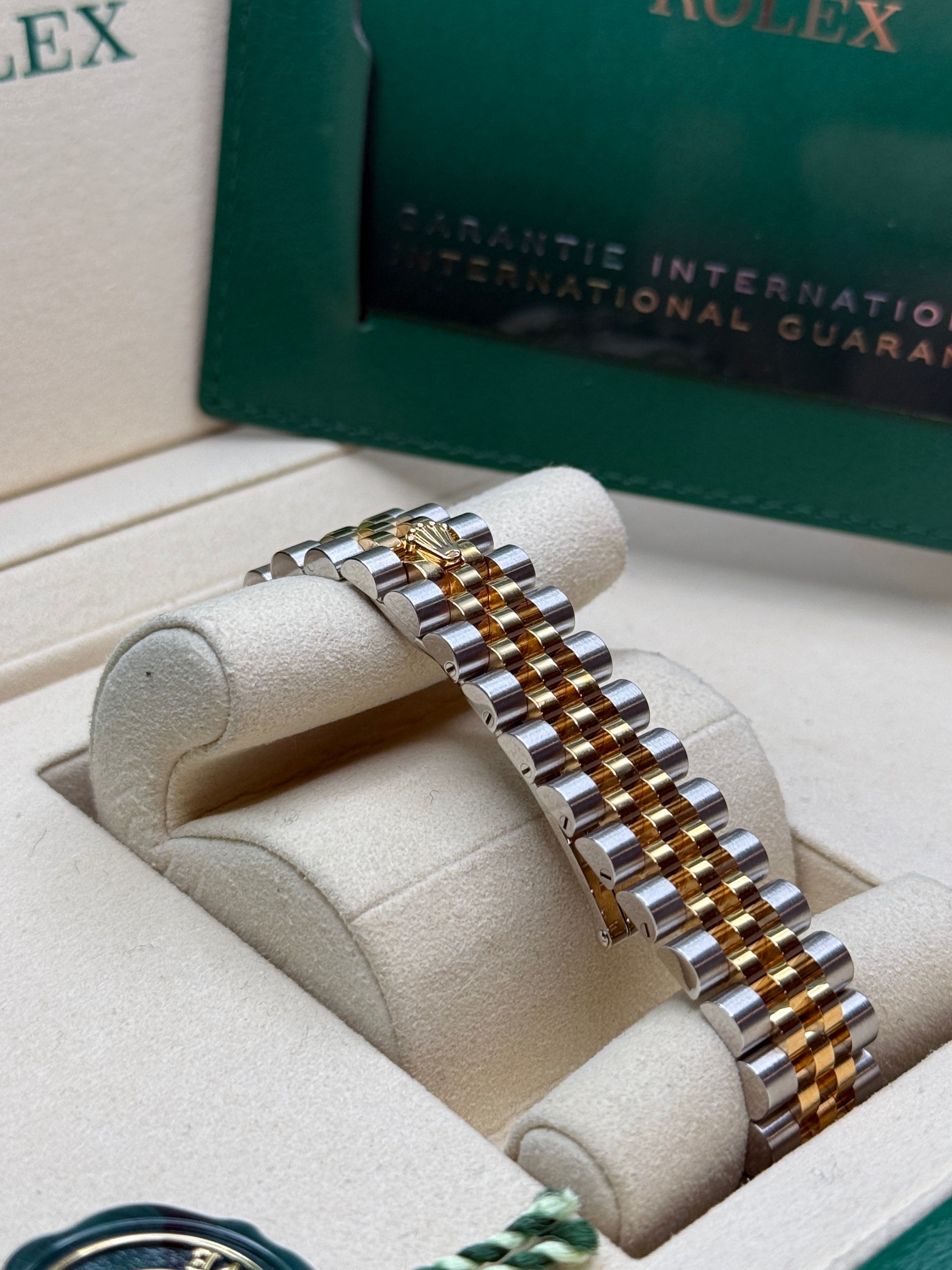 Rolex’s Datejust is the archetype of the classic watch thanks to functions and aesthetics that never go out of fashion. Launched in 1945, it was the first self-winding waterproof chronometer wristwatch to display the date in a window at 3 o’clock on the dial, and consolidated all the major innovations that Rolex had contributed to the modern wristwatch until then. The Datejust has spanned eras while retaining the enduring aesthetic characteristics that make it so instantly recognizable. A paragon of robustness and elegance, the Oyster case of the Datejust 31 is guaranteed waterproof to a depth of 100 meters (330 feet) and is equipped with calibre 2236, a movement entirely developed and manufactured by Rolex.