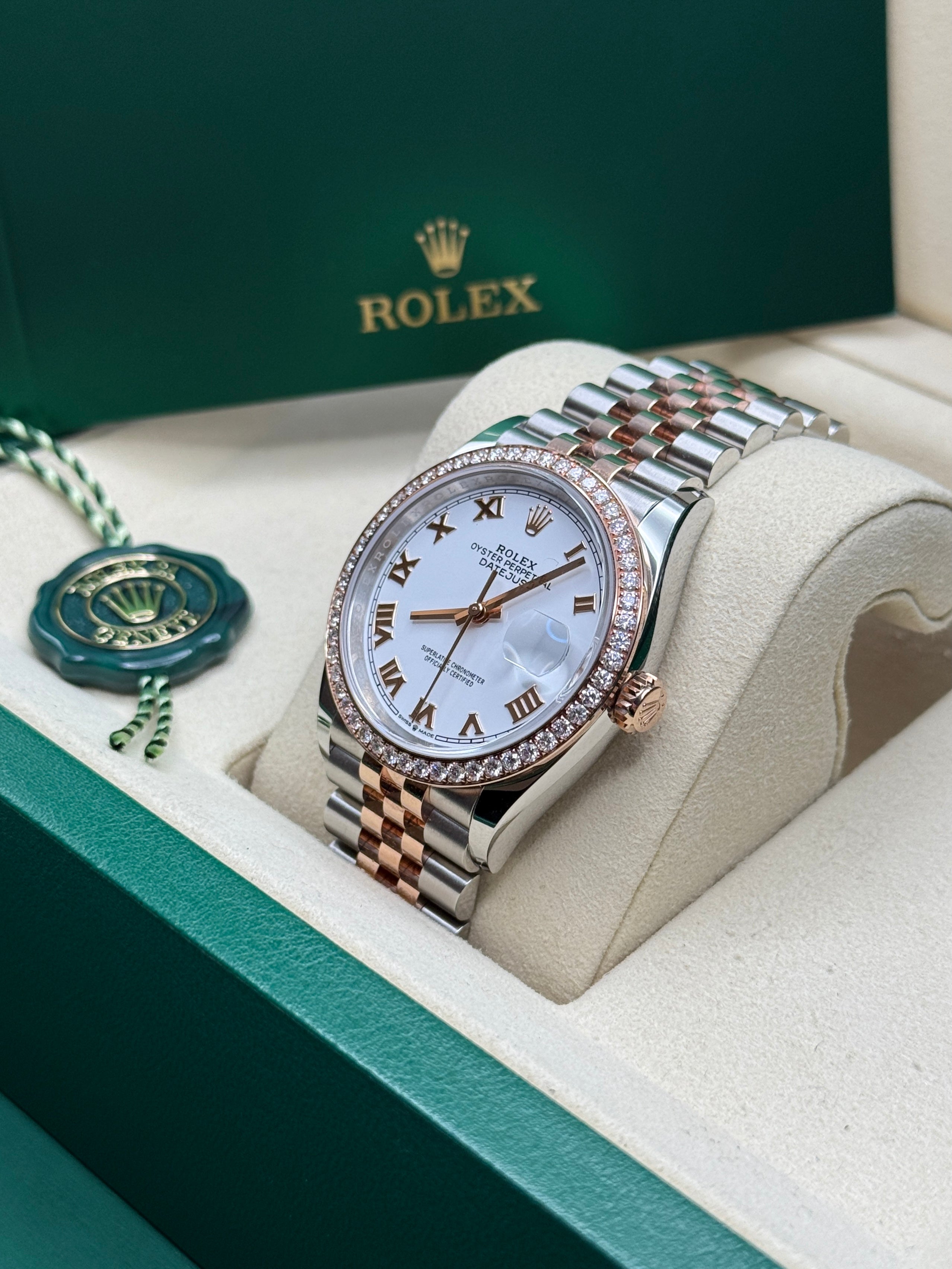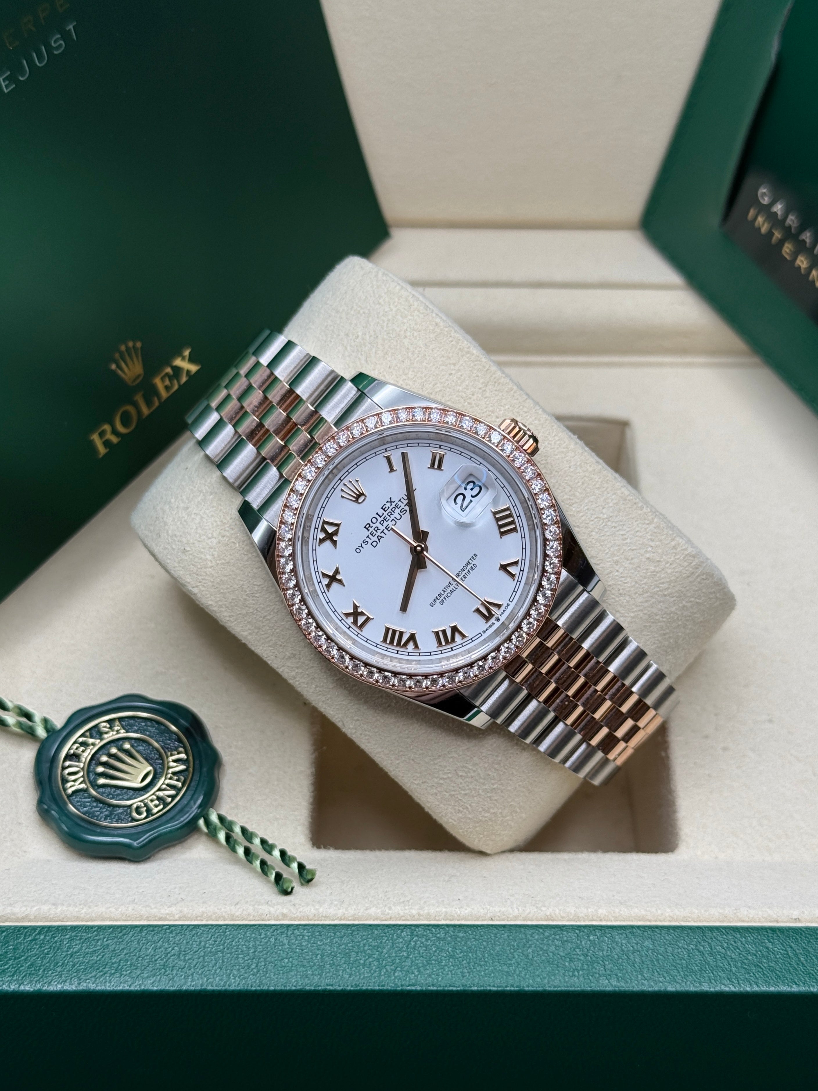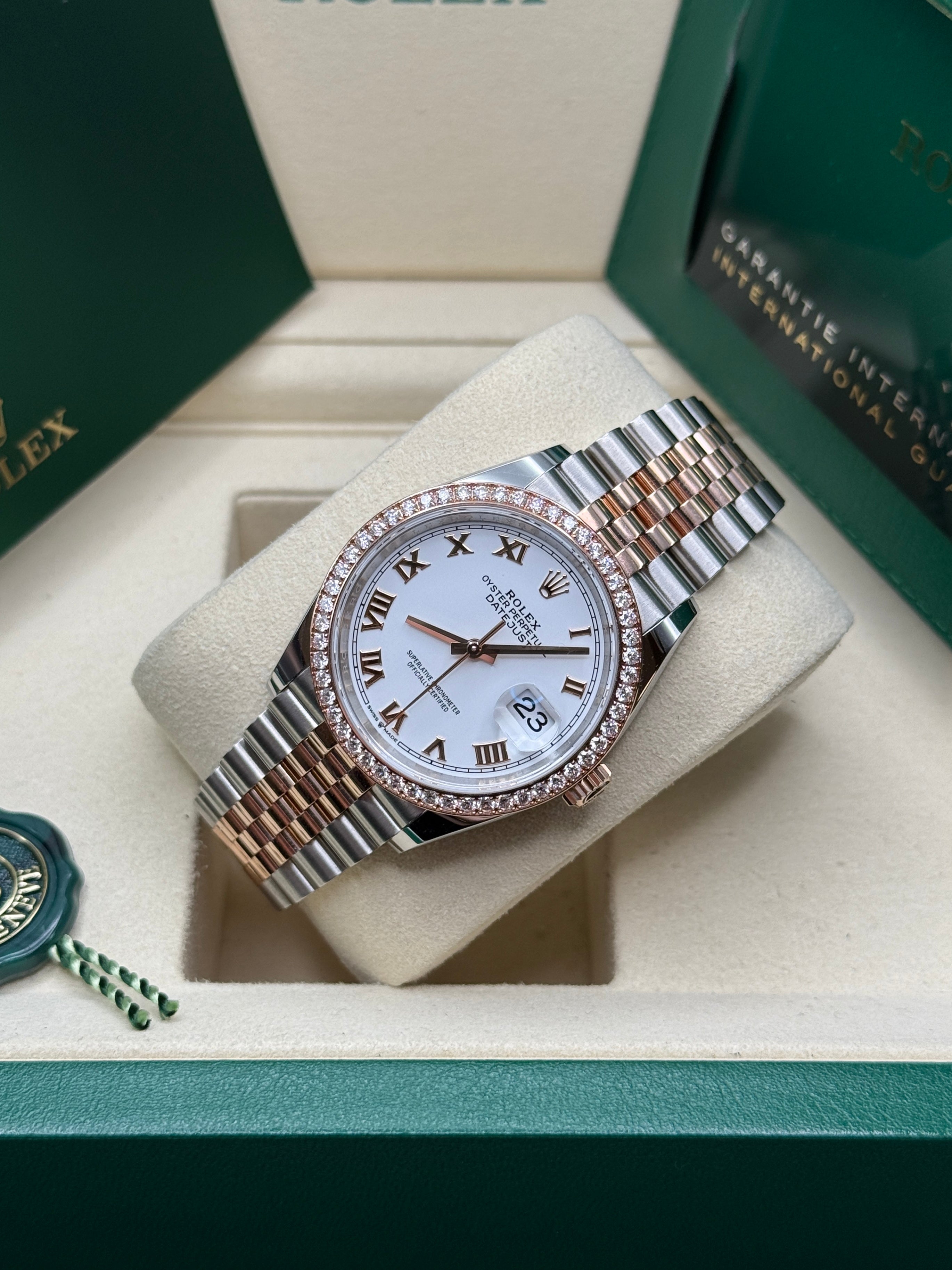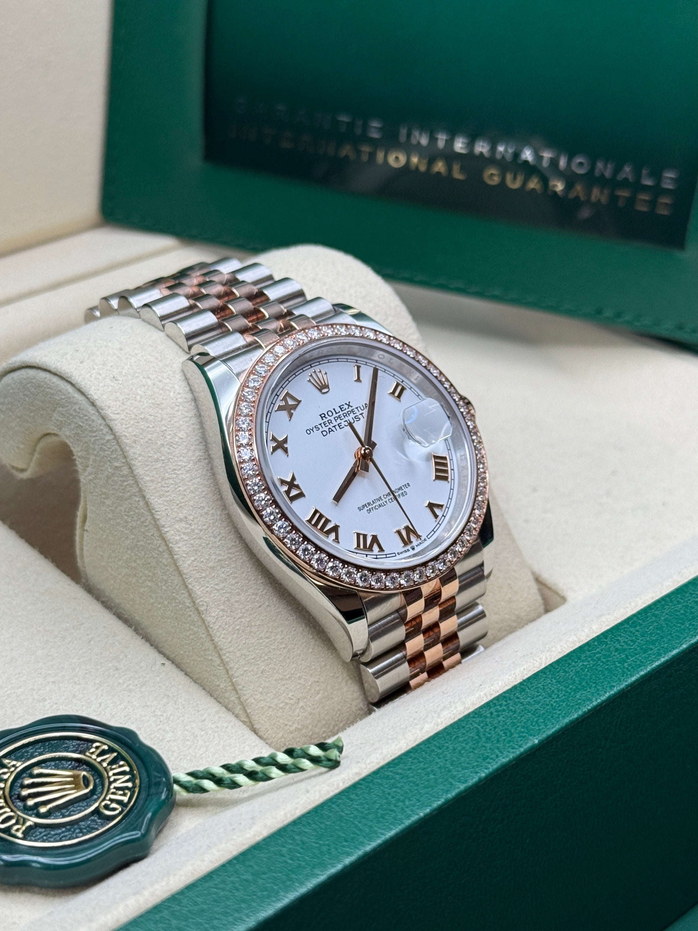Rolex’s Datejust is the archetype of the classic watch thanks to functions and aesthetics that never go out of fashion. Launched in 1945, it was the first self-winding waterproof chronometer wristwatch to display the date in a window at 3 o’clock on the dial, and consolidated all the major innovations that Rolex had contributed to the modern wristwatch until then. The Datejust has spanned eras while retaining the enduring aesthetic characteristics that make it so instantly recognizable. A paragon of robustness and elegance, the Oyster case of the Datejust 36 is guaranteed waterproof to a depth of 100 meters (330 feet) and is equipped with calibre 3235, a movement entirely developed and manufactured by Rolex.