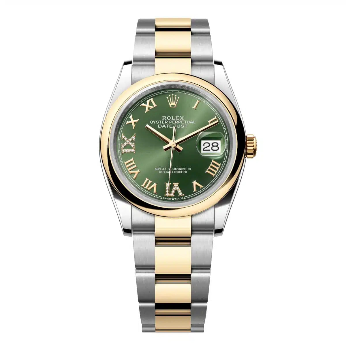 Datejust 36 Yellow Gold Two-Tone Olive Green Roman Diamond