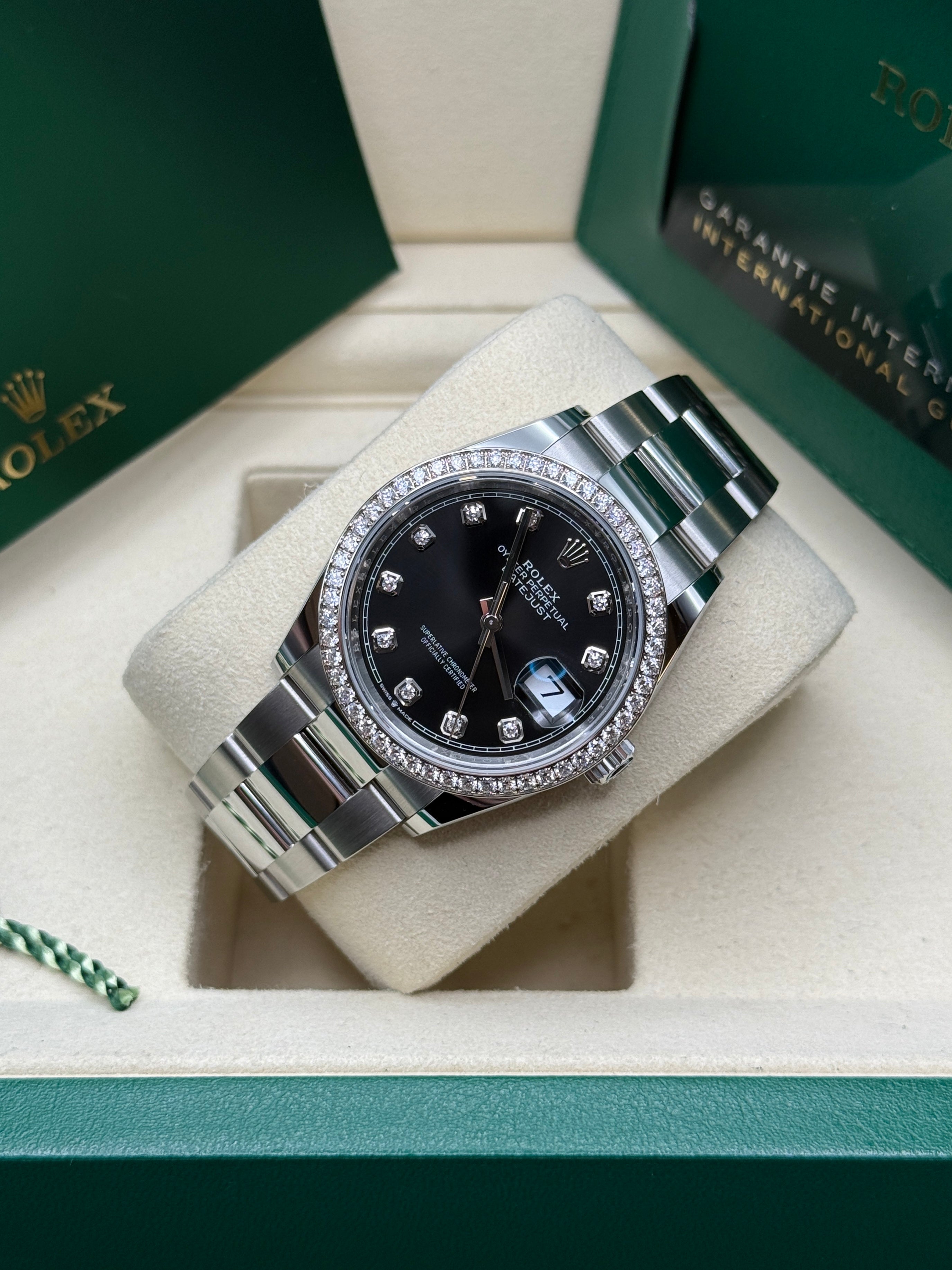 Rolex’s Datejust is the archetype of the classic watch thanks to functions and aesthetics that never go out of fashion. Launched in 1945, it was the first self-winding waterproof chronometer wristwatch to display the date in a window at 3 o’clock on the dial, and consolidated all the major innovations that Rolex had contributed to the modern wristwatch until then. The Datejust has spanned eras while retaining the enduring aesthetic characteristics that make it so instantly recognizable. A paragon of robustness and elegance, the Oyster case of the Datejust 36 is guaranteed waterproof to a depth of 100 meters (330 feet) and is equipped with calibre 3235, a movement entirely developed and manufactured by Rolex.