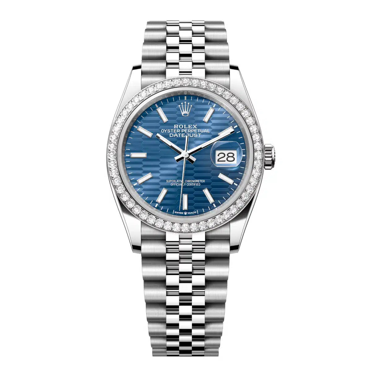 Rolex’s Datejust is the archetype of the classic watch thanks to functions and aesthetics that never go out of fashion. Launched in 1945, it was the first self-winding waterproof chronometer wristwatch to display the date in a window at 3 o’clock on the dial, and consolidated all the major innovations that Rolex had contributed to the modern wristwatch until then. The Datejust has spanned eras while retaining the enduring aesthetic characteristics that make it so instantly recognizable. A paragon of robustness and elegance, the Oyster case of the Datejust 36 is guaranteed waterproof to a depth of 100 meters (330 feet) and is equipped with calibre 3235, a movement entirely developed and manufactured by Rolex.