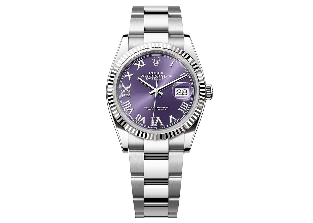 Rolex’s Datejust is the archetype of the classic watch thanks to functions and aesthetics that never go out of fashion. Launched in 1945, it was the first self-winding waterproof chronometer wristwatch to display the date in a window at 3 o’clock on the dial, and consolidated all the major innovations that Rolex had contributed to the modern wristwatch until then. The Datejust has spanned eras while retaining the enduring aesthetic characteristics that make it so instantly recognizable. A paragon of robustness and elegance, the Oyster case of the Datejust 36 is guaranteed waterproof to a depth of 100 meters (330 feet) and is equipped with calibre 3235, a movement entirely developed and manufactured by Rolex.