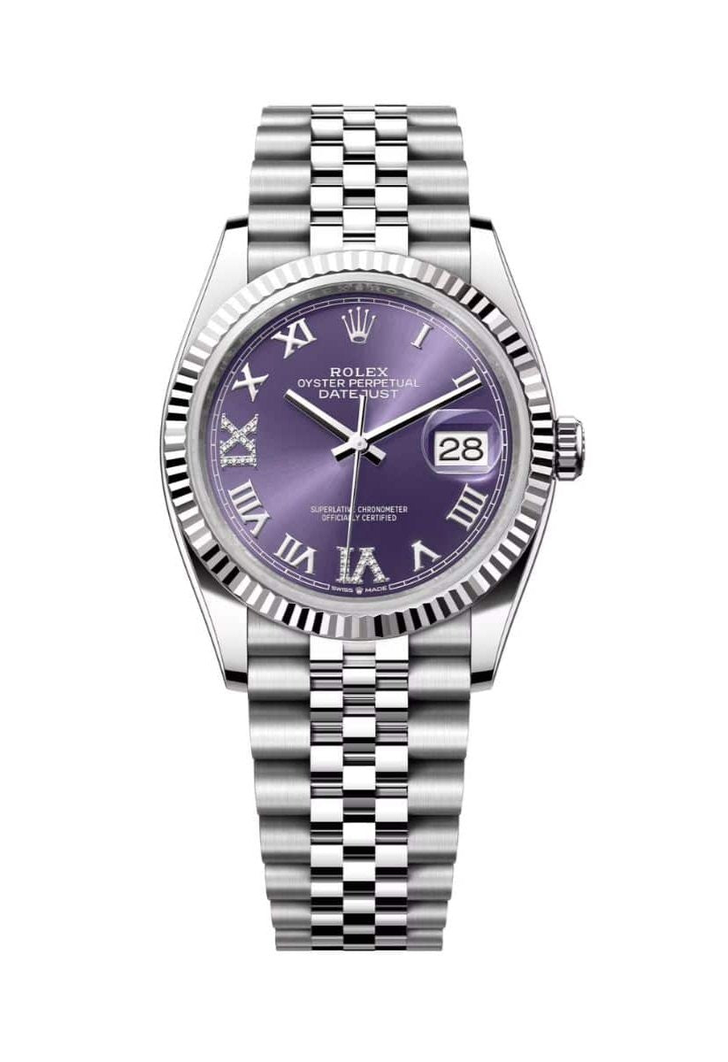 Rolex’s Datejust is the archetype of the classic watch thanks to functions and aesthetics that never go out of fashion. Launched in 1945, it was the first self-winding waterproof chronometer wristwatch to display the date in a window at 3 o’clock on the dial, and consolidated all the major innovations that Rolex had contributed to the modern wristwatch until then. The Datejust has spanned eras while retaining the enduring aesthetic characteristics that make it so instantly recognizable. A paragon of robustness and elegance, the Oyster case of the Datejust 36 is guaranteed waterproof to a depth of 100 meters (330 feet) and is equipped with calibre 3235, a movement entirely developed and manufactured by Rolex.