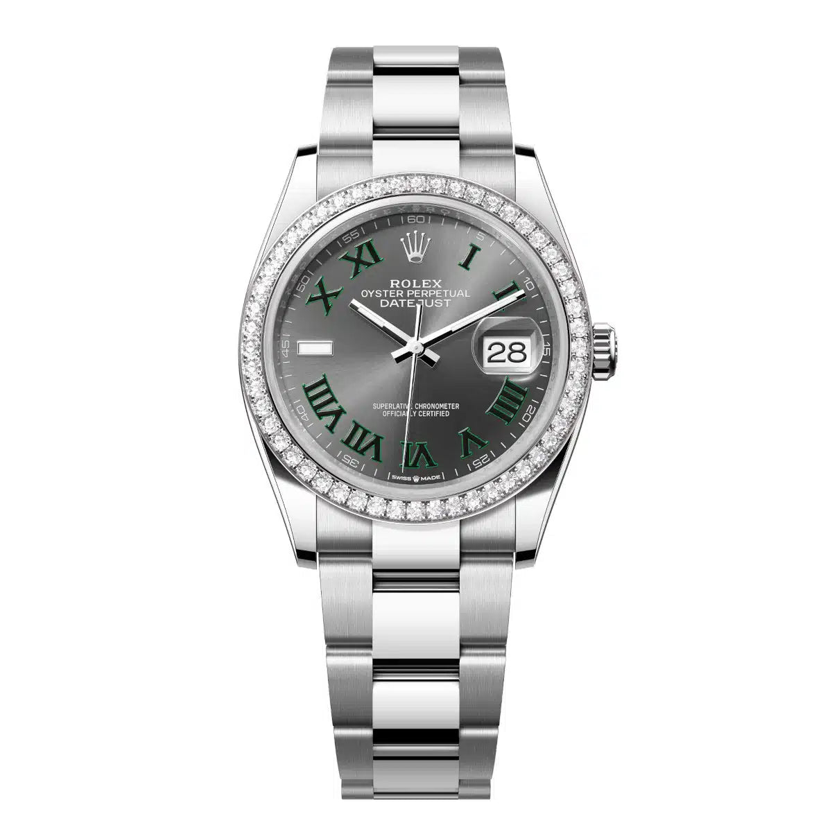 Rolex’s Datejust is the archetype of the classic watch thanks to functions and aesthetics that never go out of fashion. Launched in 1945, it was the first self-winding waterproof chronometer wristwatch to display the date in a window at 3 o’clock on the dial, and consolidated all the major innovations that Rolex had contributed to the modern wristwatch until then. The Datejust has spanned eras while retaining the enduring aesthetic characteristics that make it so instantly recognizable. A paragon of robustness and elegance, the Oyster case of the Datejust 36 is guaranteed waterproof to a depth of 100 meters (330 feet) and is equipped with calibre 3235, a movement entirely developed and manufactured by Rolex.
