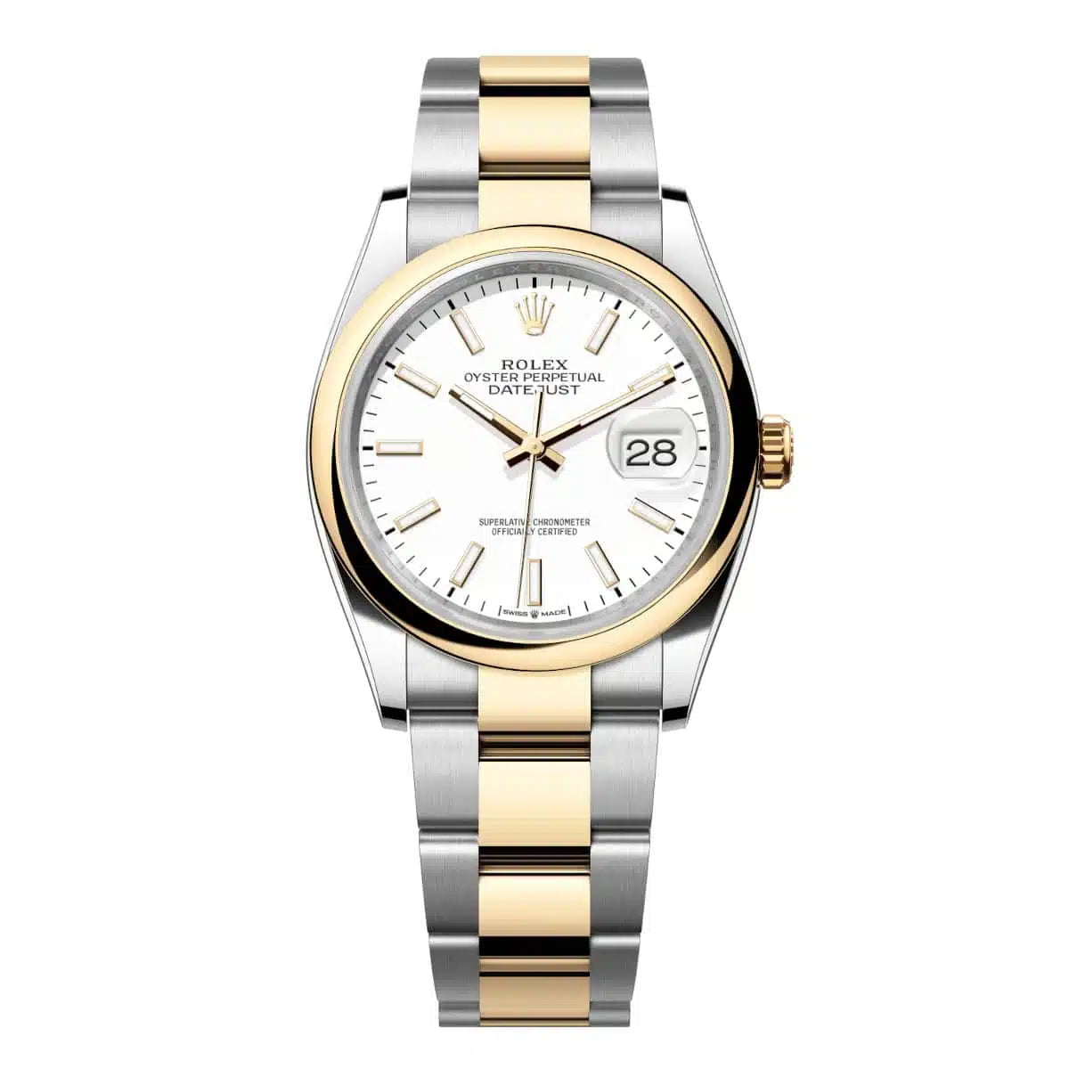 Rolex’s Datejust is the archetype of the classic watch thanks to functions and aesthetics that never go out of fashion. Launched in 1945, it was the first self-winding waterproof chronometer wristwatch to display the date in a window at 3 o’clock on the dial, and consolidated all the major innovations that Rolex had contributed to the modern wristwatch until then. The Datejust has spanned eras while retaining the enduring aesthetic characteristics that make it so instantly recognizable. A paragon of robustness and elegance, the Oyster case of the Datejust 36 is guaranteed waterproof to a depth of 100 meters (330 feet) and is equipped with calibre 3235, a movement entirely developed and manufactured by Rolex.