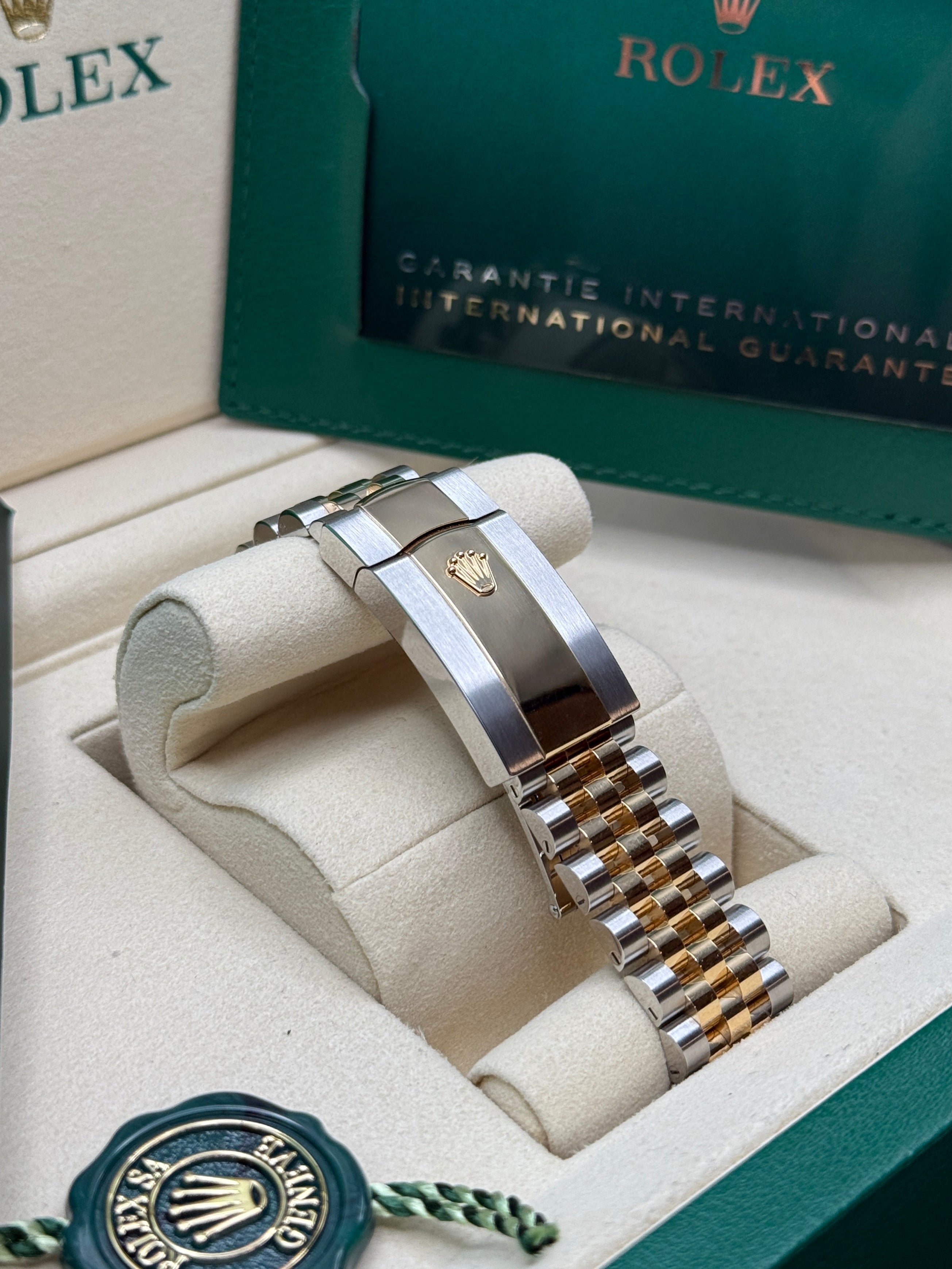 Rolex’s Datejust is the archetype of the classic watch thanks to functions and aesthetics that never go out of fashion. Launched in 1945, it was the first self-winding waterproof chronometer wristwatch to display the date in a window at 3 o’clock on the dial, and consolidated all the major innovations that Rolex had contributed to the modern wristwatch until then. The Datejust has spanned eras while retaining the enduring aesthetic characteristics that make it so instantly recognizable. A paragon of robustness and elegance, the Oyster case of the Datejust 36 is guaranteed waterproof to a depth of 100 meters (330 feet) and is equipped with calibre 3235, a movement entirely developed and manufactured by Rolex.