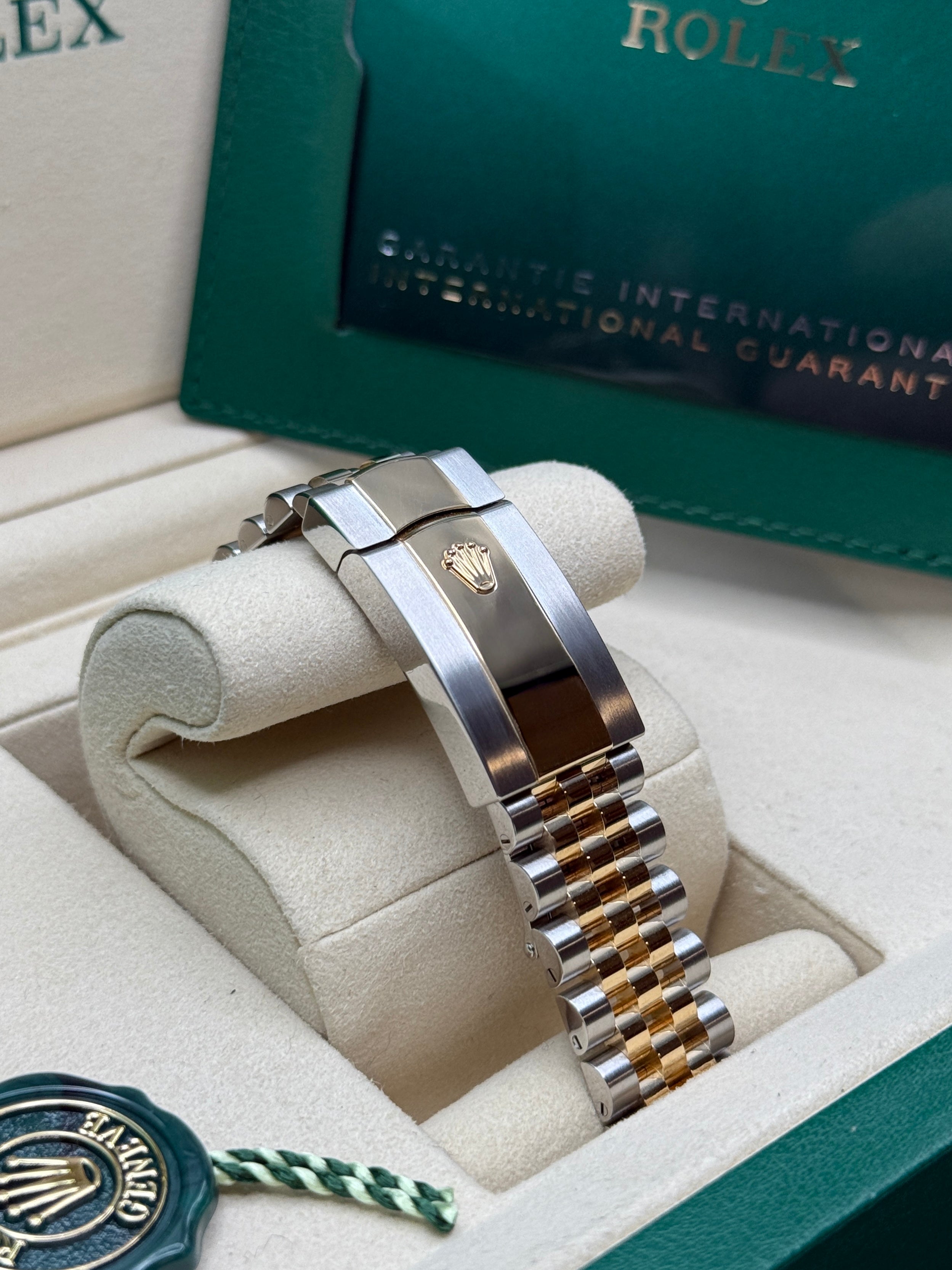 Rolex’s Datejust is the archetype of the classic watch thanks to functions and aesthetics that never go out of fashion. Launched in 1945, it was the first self-winding waterproof chronometer wristwatch to display the date in a window at 3 o’clock on the dial, and consolidated all the major innovations that Rolex had contributed to the modern wristwatch until then. The Datejust has spanned eras while retaining the enduring aesthetic characteristics that make it so instantly recognizable. A paragon of robustness and elegance, the Oyster case of the Datejust 36 is guaranteed waterproof to a depth of 100 meters (330 feet) and is equipped with calibre 3235, a movement entirely developed and manufactured by Rolex.
