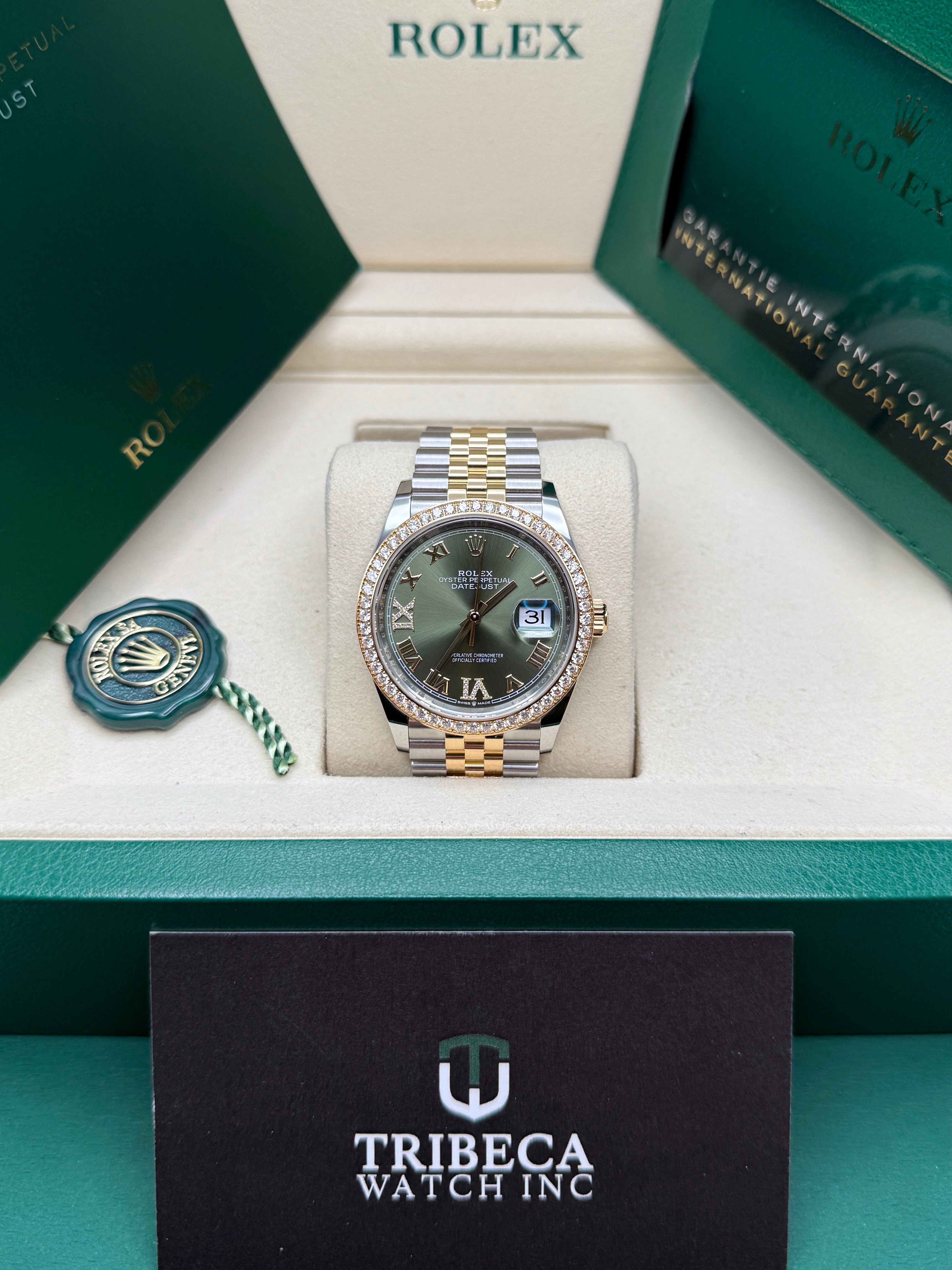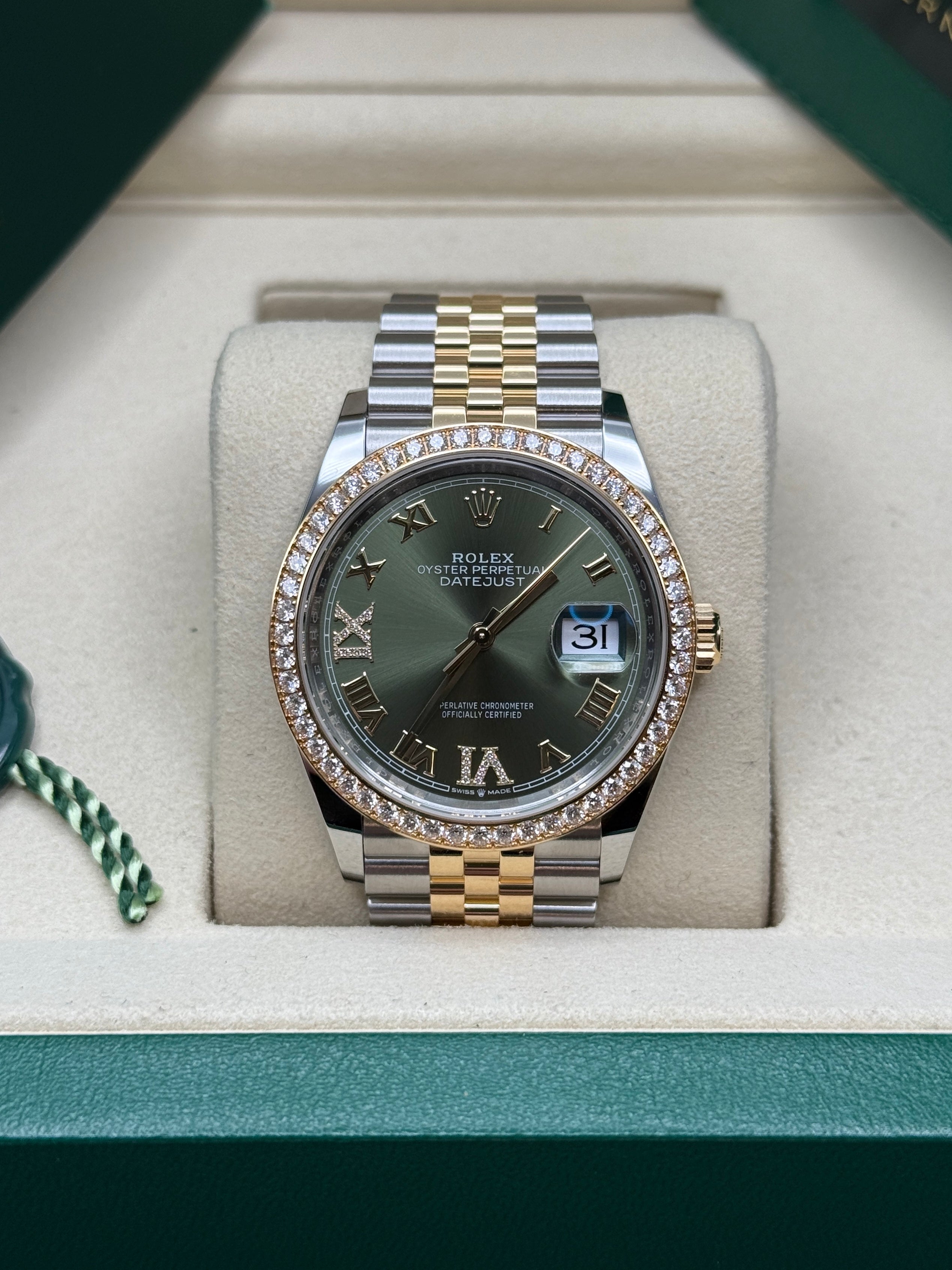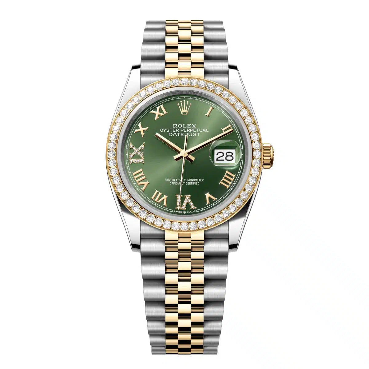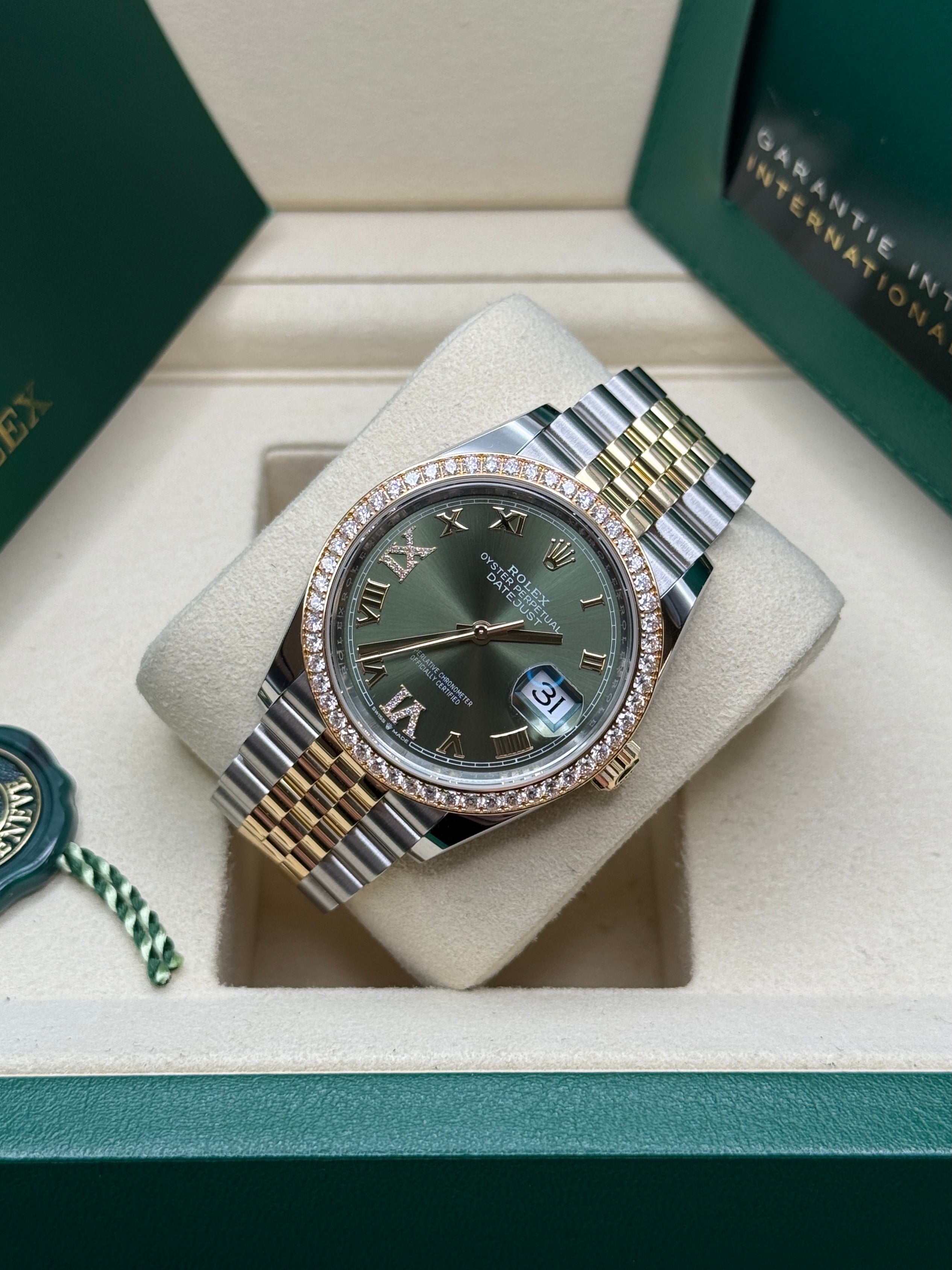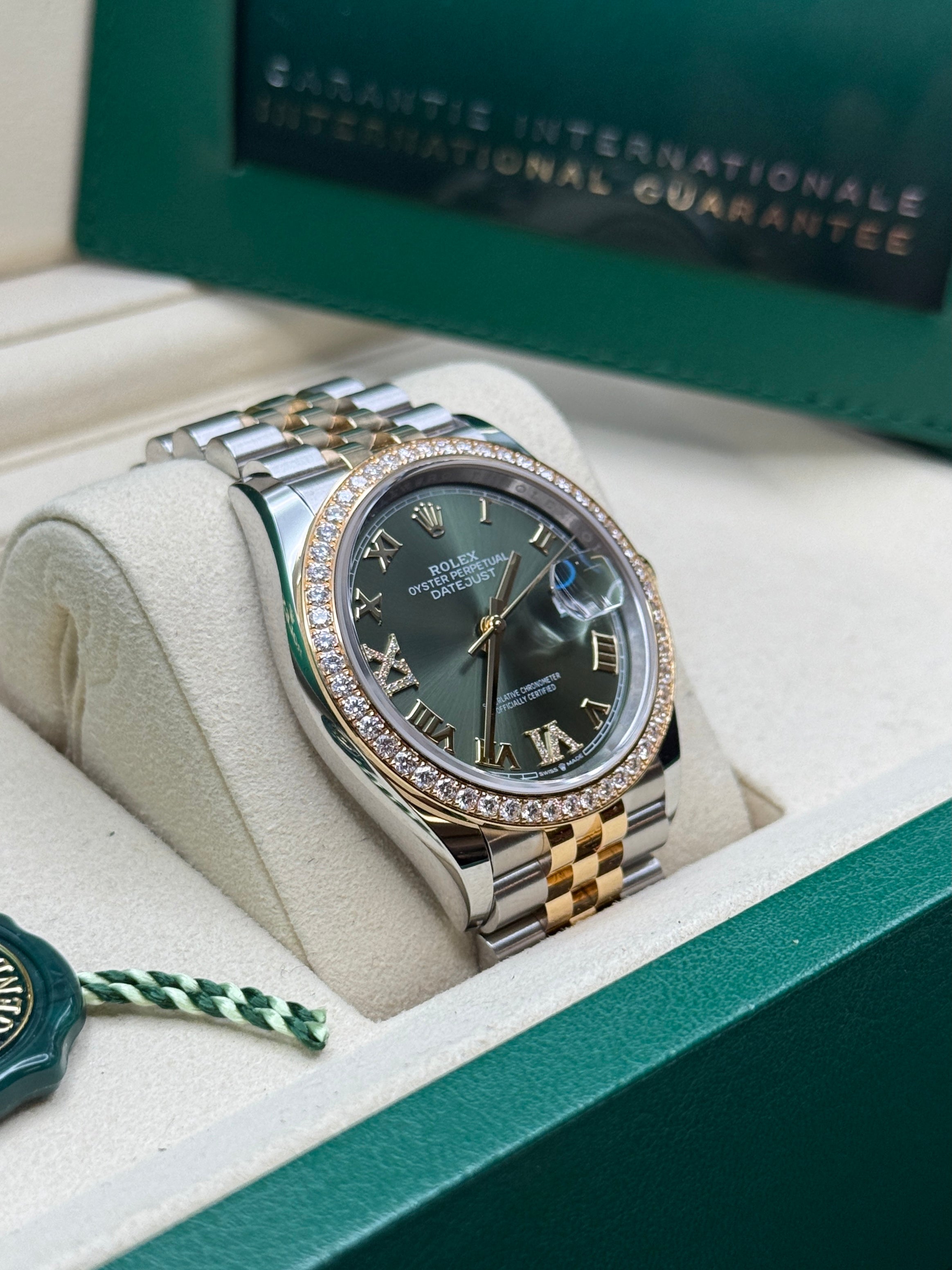 Datejust 36 Yellow Gold Two-Tone Olive Green Roman Diamond