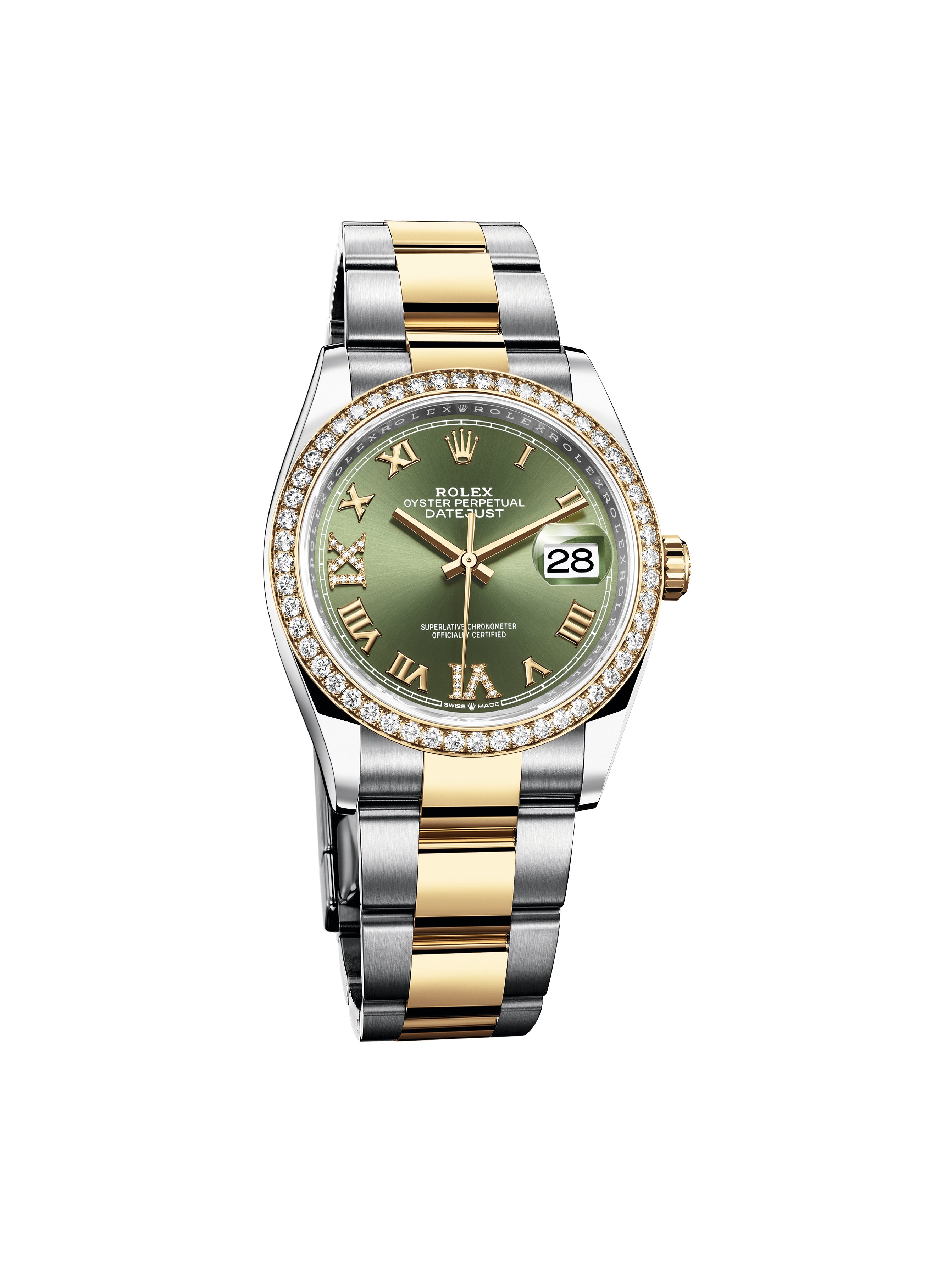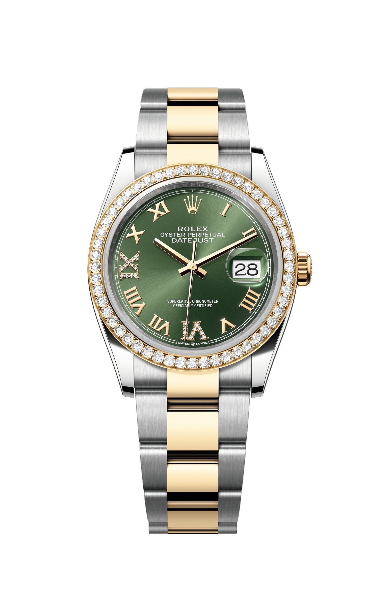 Datejust 36 Yellow Gold Two-Tone Olive Green Roman Diamond