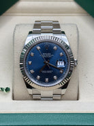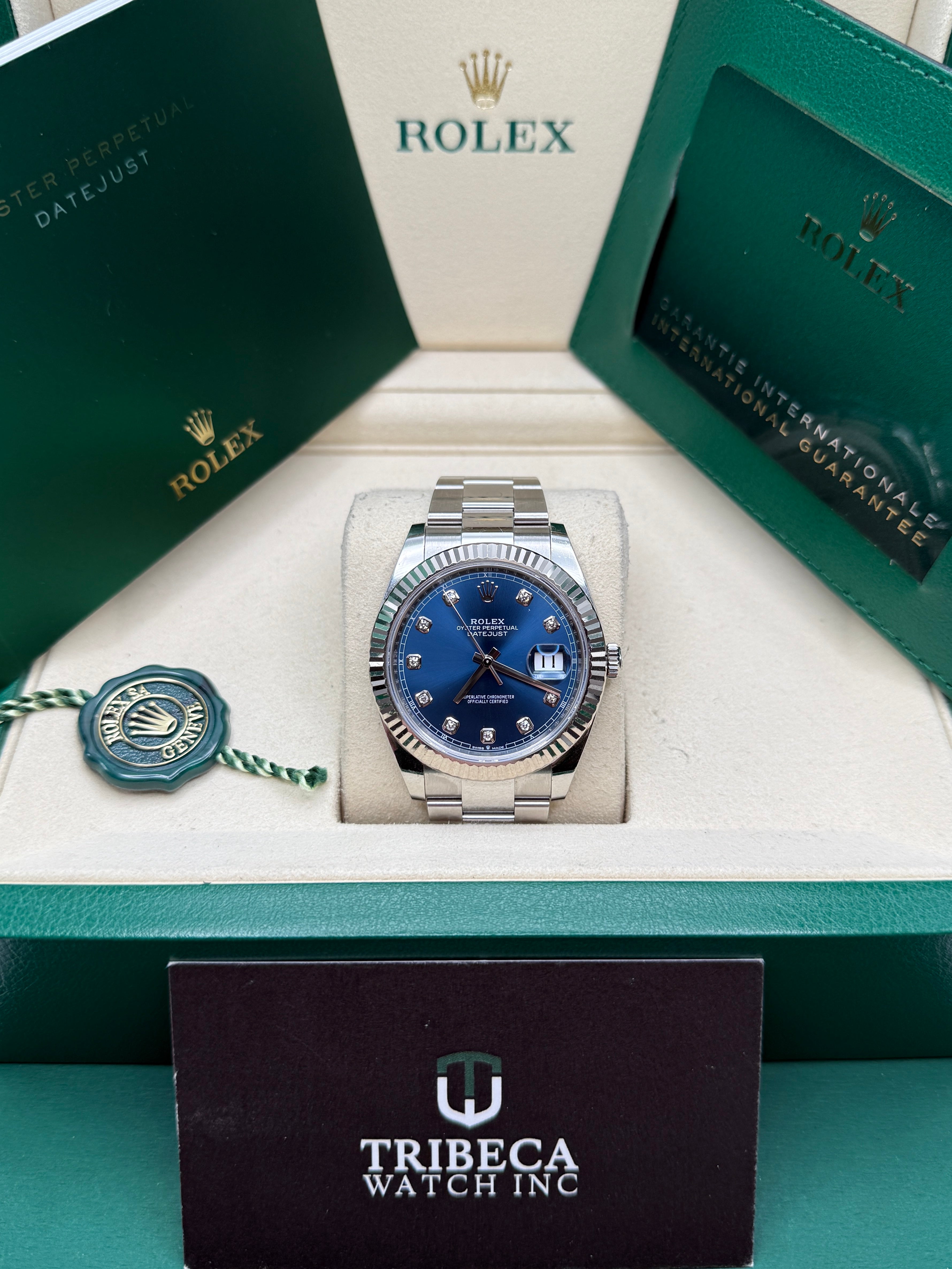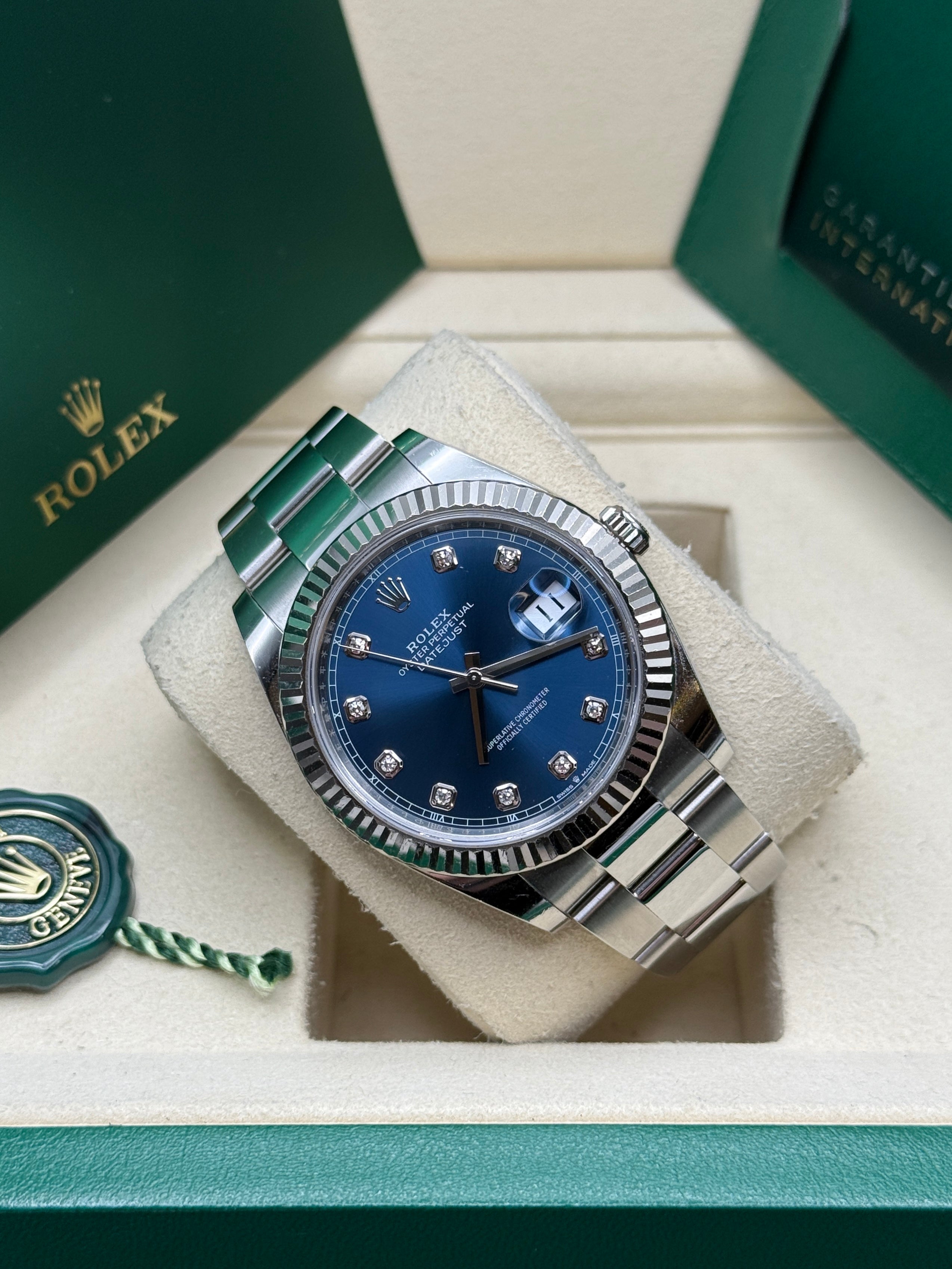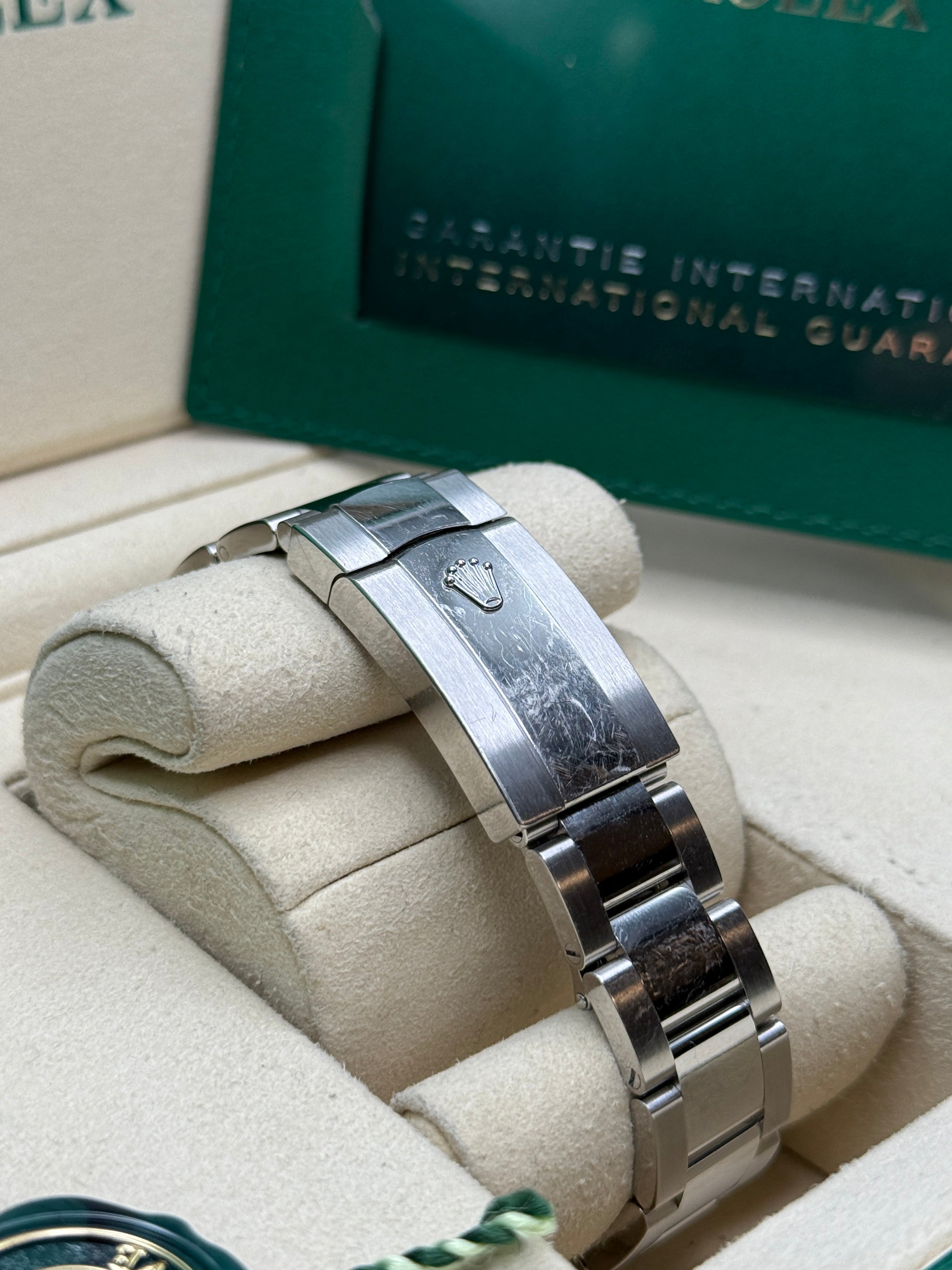 Rolex’s Datejust is the archetype of the classic watch thanks to functions and aesthetics that never go out of fashion. Launched in 1945, it was the first self-winding waterproof chronometer wristwatch to display the date in a window at 3 o’clock on the dial, and consolidated all the major innovations that Rolex had contributed to the modern wristwatch until then. The Datejust has spanned eras while retaining the enduring aesthetic characteristics that make it so instantly recognizable. A paragon of robustness and elegance, the Oyster case of the Datejust 41 is guaranteed waterproof to a depth of 100 meters (330 feet) and is equipped with calibre 3235, a movement entirely developed and manufactured by Rolex.