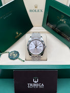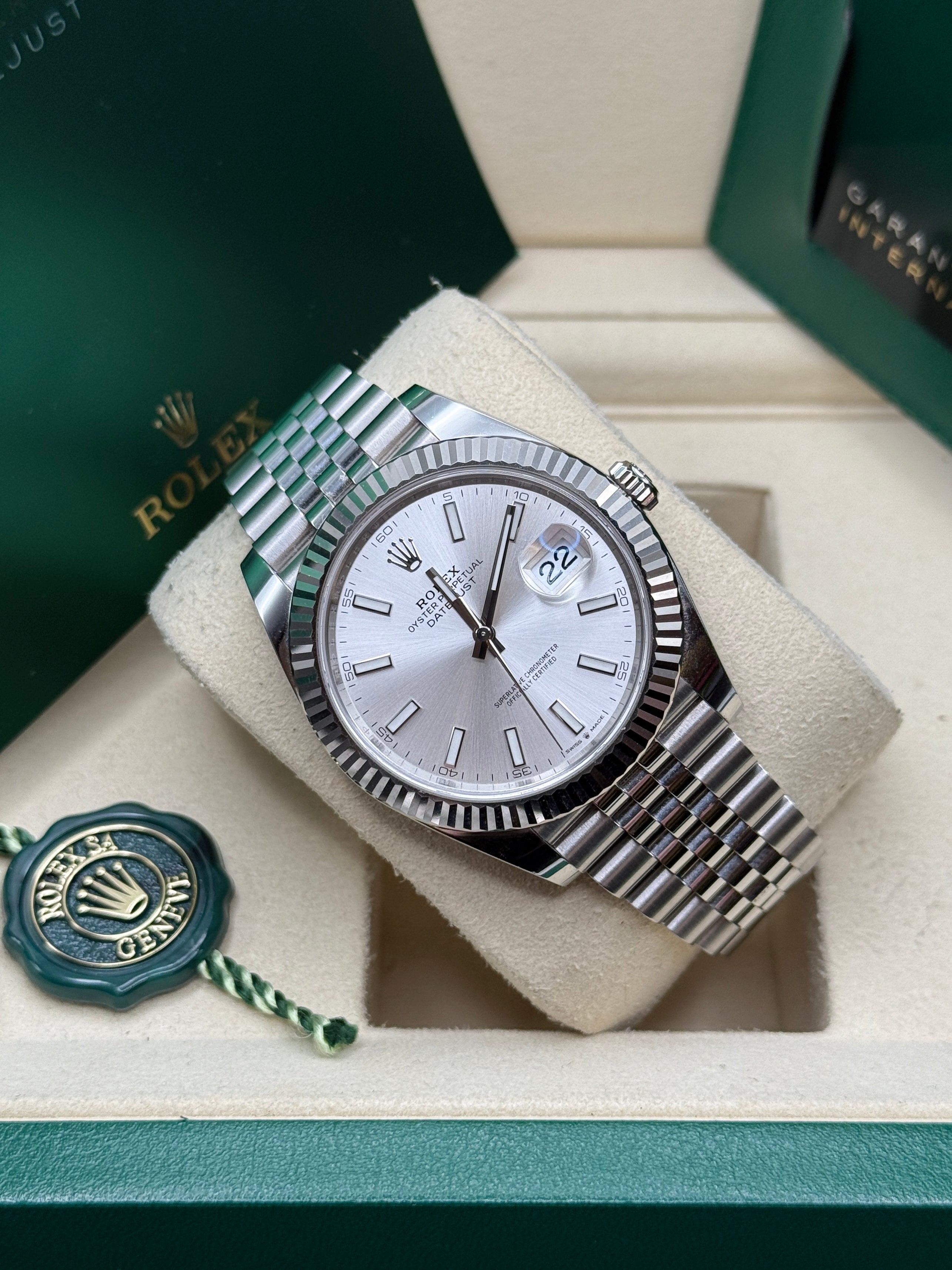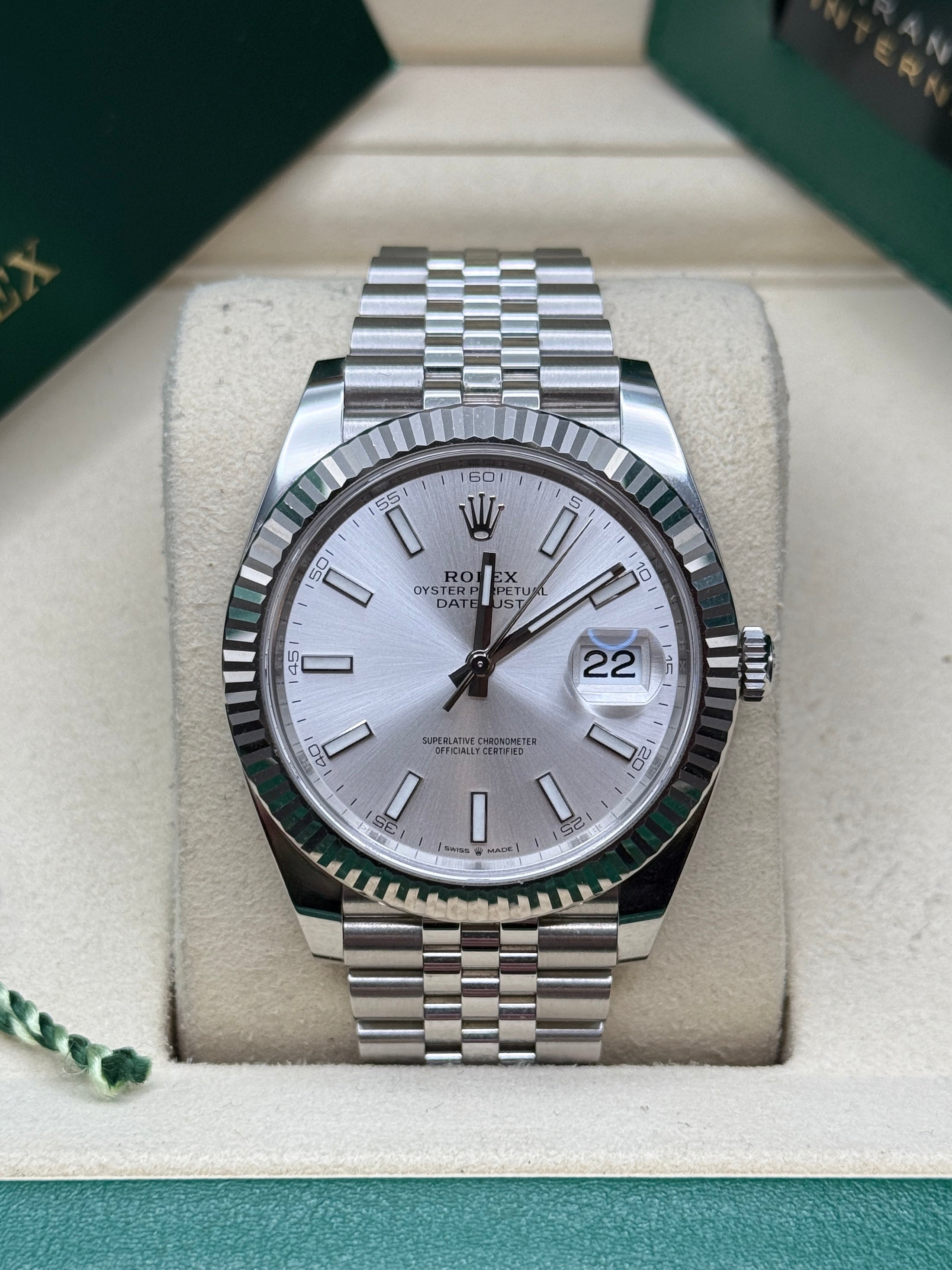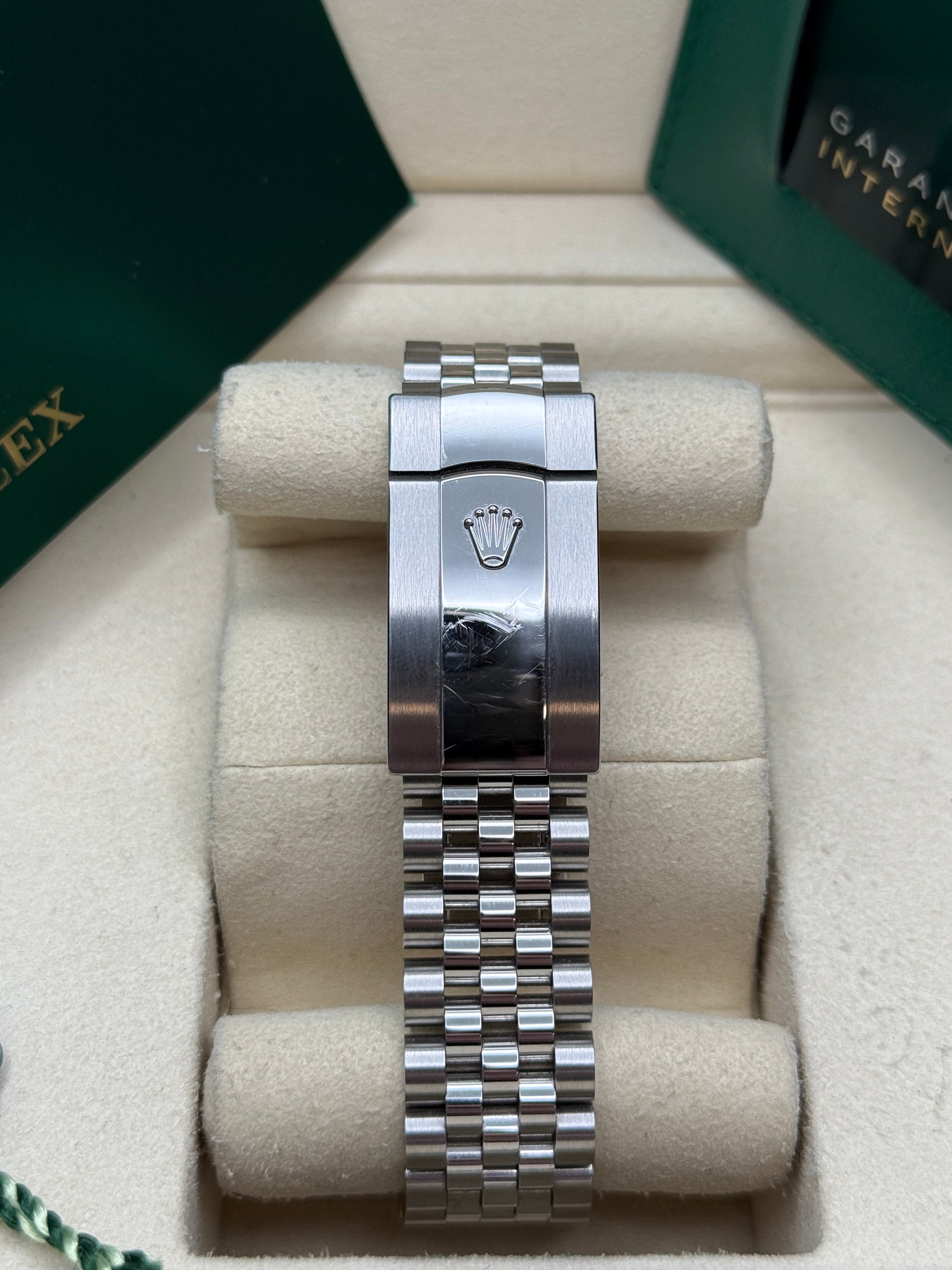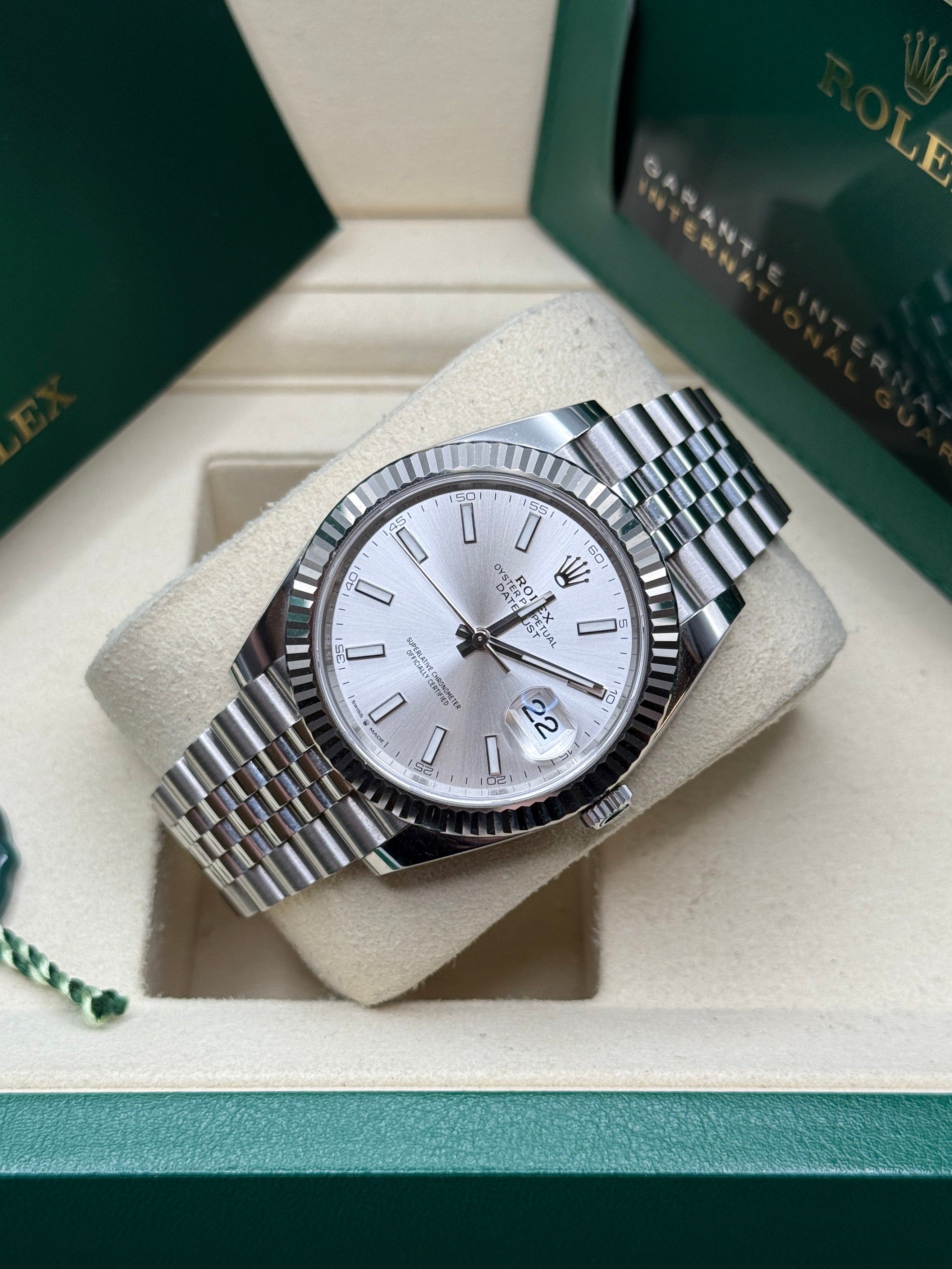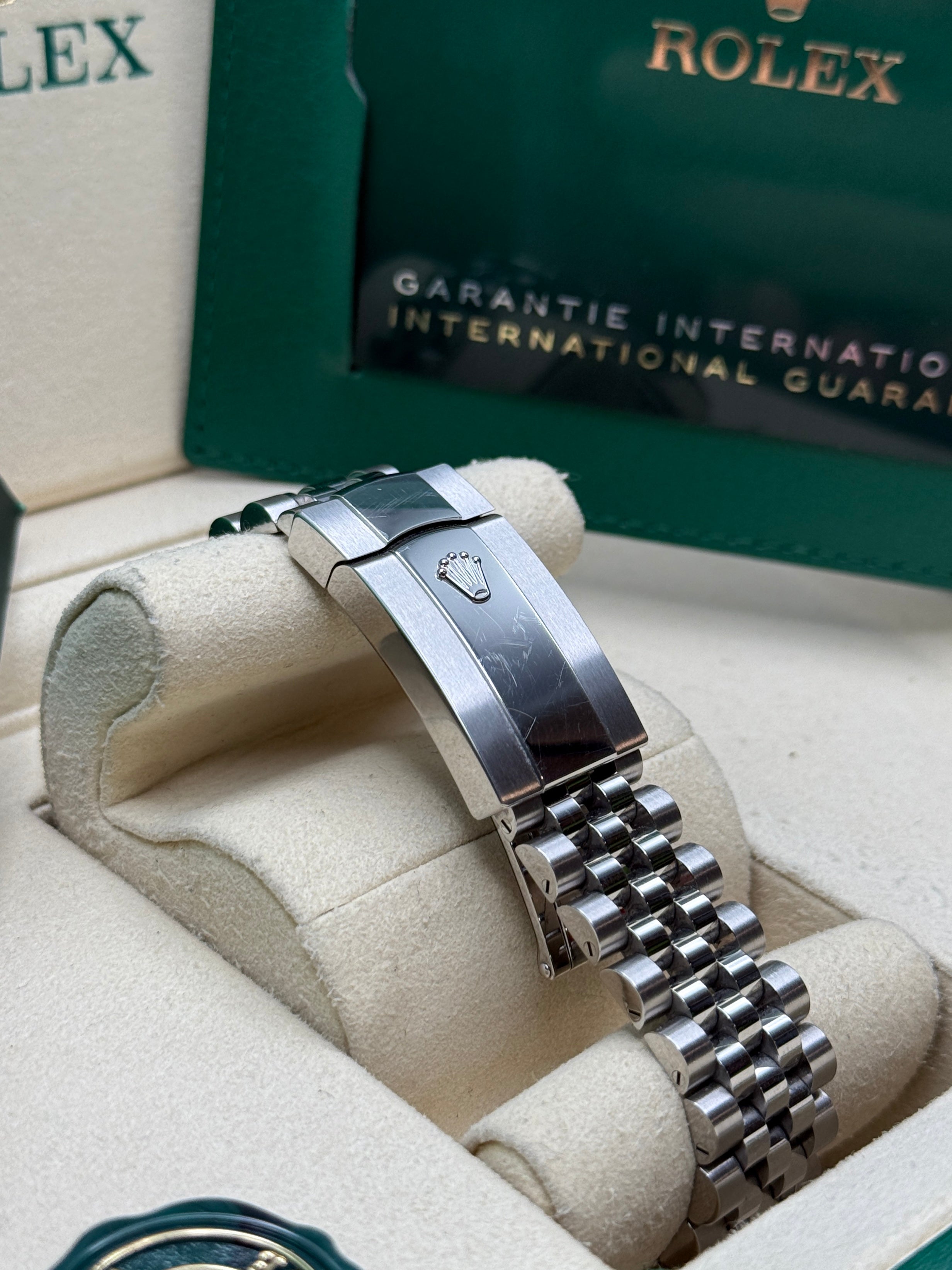 Rolex’s Datejust is the archetype of the classic watch thanks to functions and aesthetics that never go out of fashion. Launched in 1945, it was the first self-winding waterproof chronometer wristwatch to display the date in a window at 3 o’clock on the dial, and consolidated all the major innovations that Rolex had contributed to the modern wristwatch until then. The Datejust has spanned eras while retaining the enduring aesthetic characteristics that make it so instantly recognizable. A paragon of robustness and elegance, the Oyster case of the Datejust 41 is guaranteed waterproof to a depth of 100 meters (330 feet) and is equipped with calibre 3235, a movement entirely developed and manufactured by Rolex.