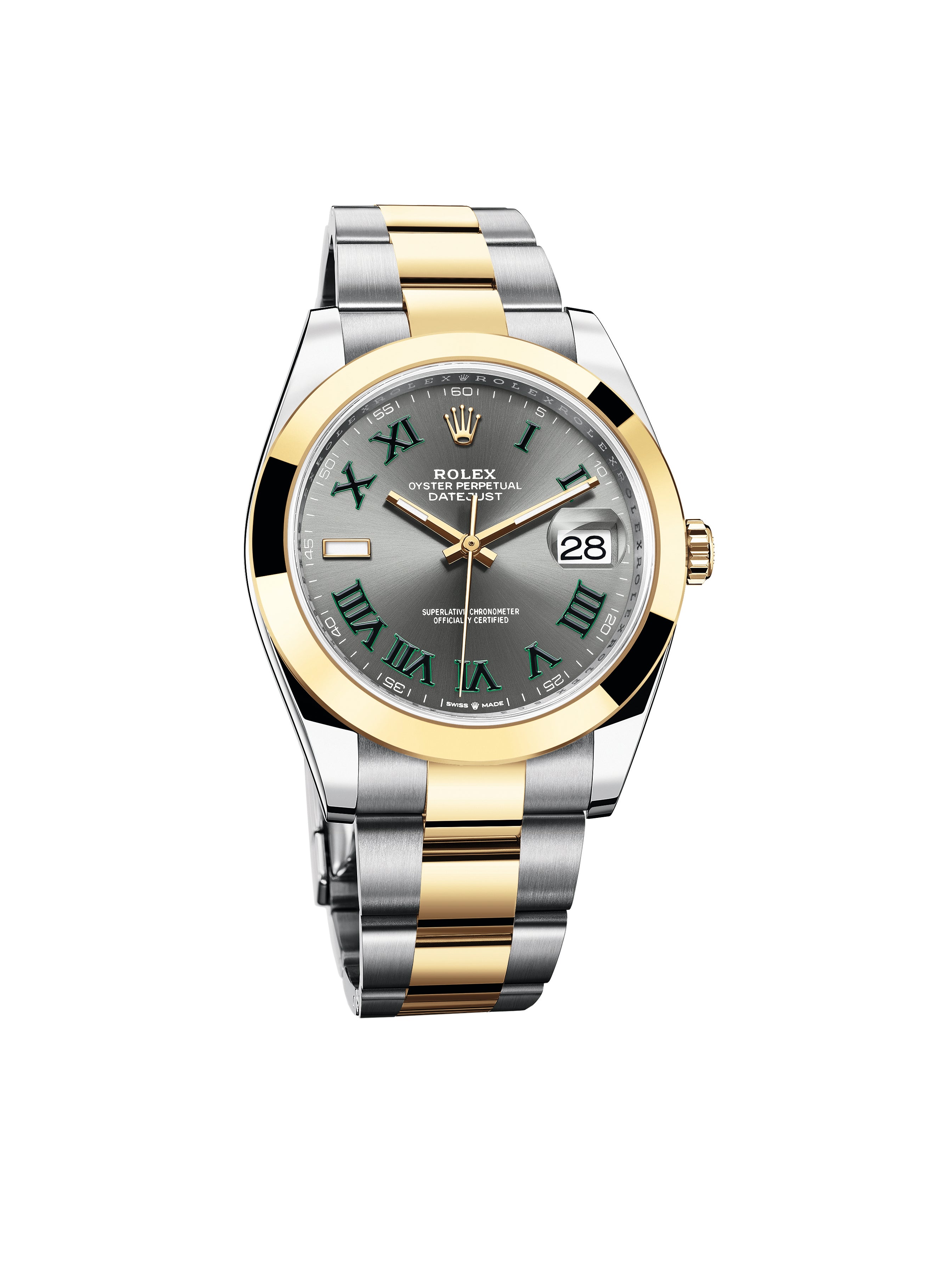 Rolex’s Datejust is the archetype of the classic watch thanks to functions and aesthetics that never go out of fashion. Launched in 1945, it was the first self-winding waterproof chronometer wristwatch to display the date in a window at 3 o’clock on the dial, and consolidated all the major innovations that Rolex had contributed to the modern wristwatch until then. The Datejust has spanned eras while retaining the enduring aesthetic characteristics that make it so instantly recognizable. A paragon of robustness and elegance, the Oyster case of the Datejust 41 is guaranteed waterproof to a depth of 100 meters (330 feet) and is equipped with calibre 3235, a movement entirely developed and manufactured by Rolex.