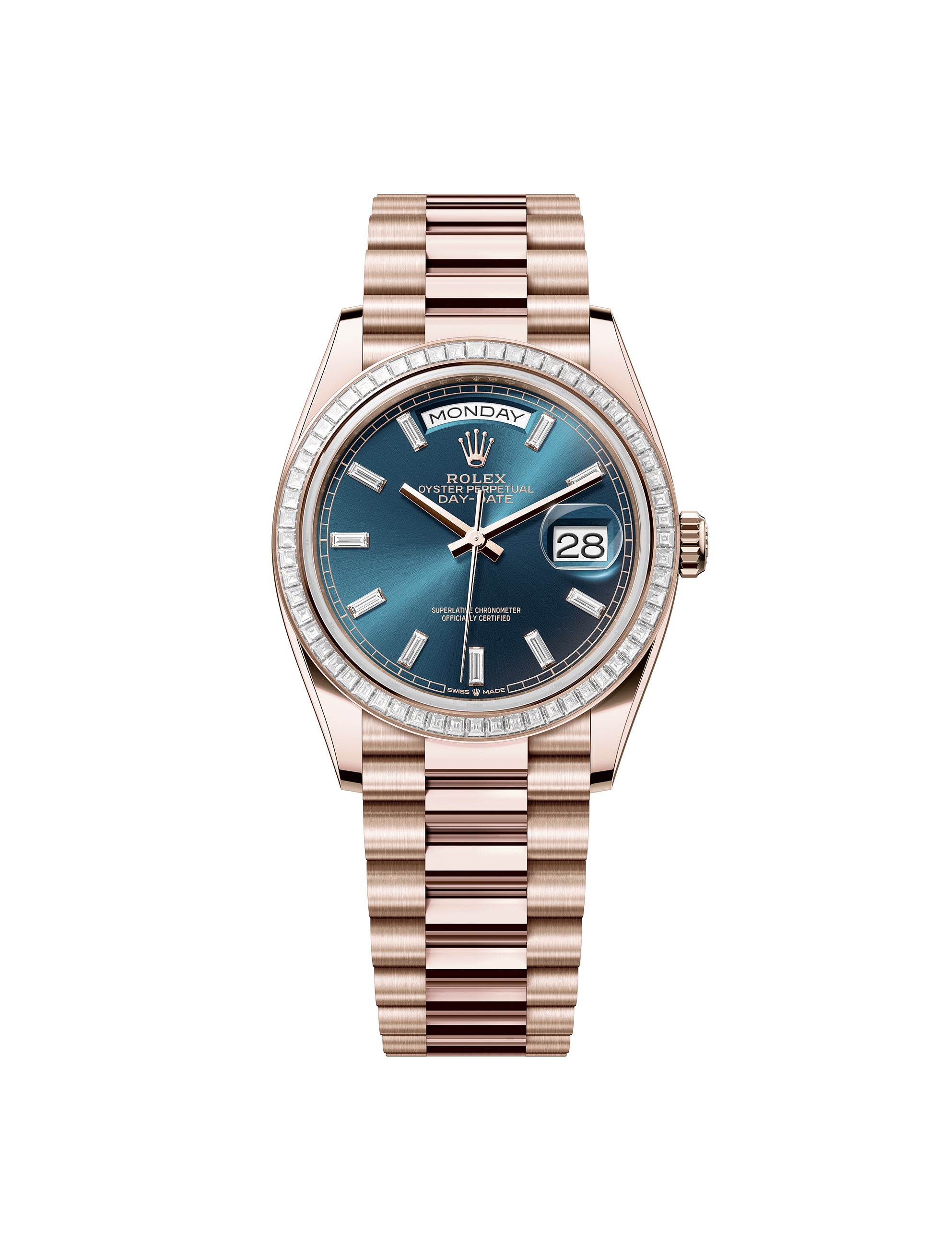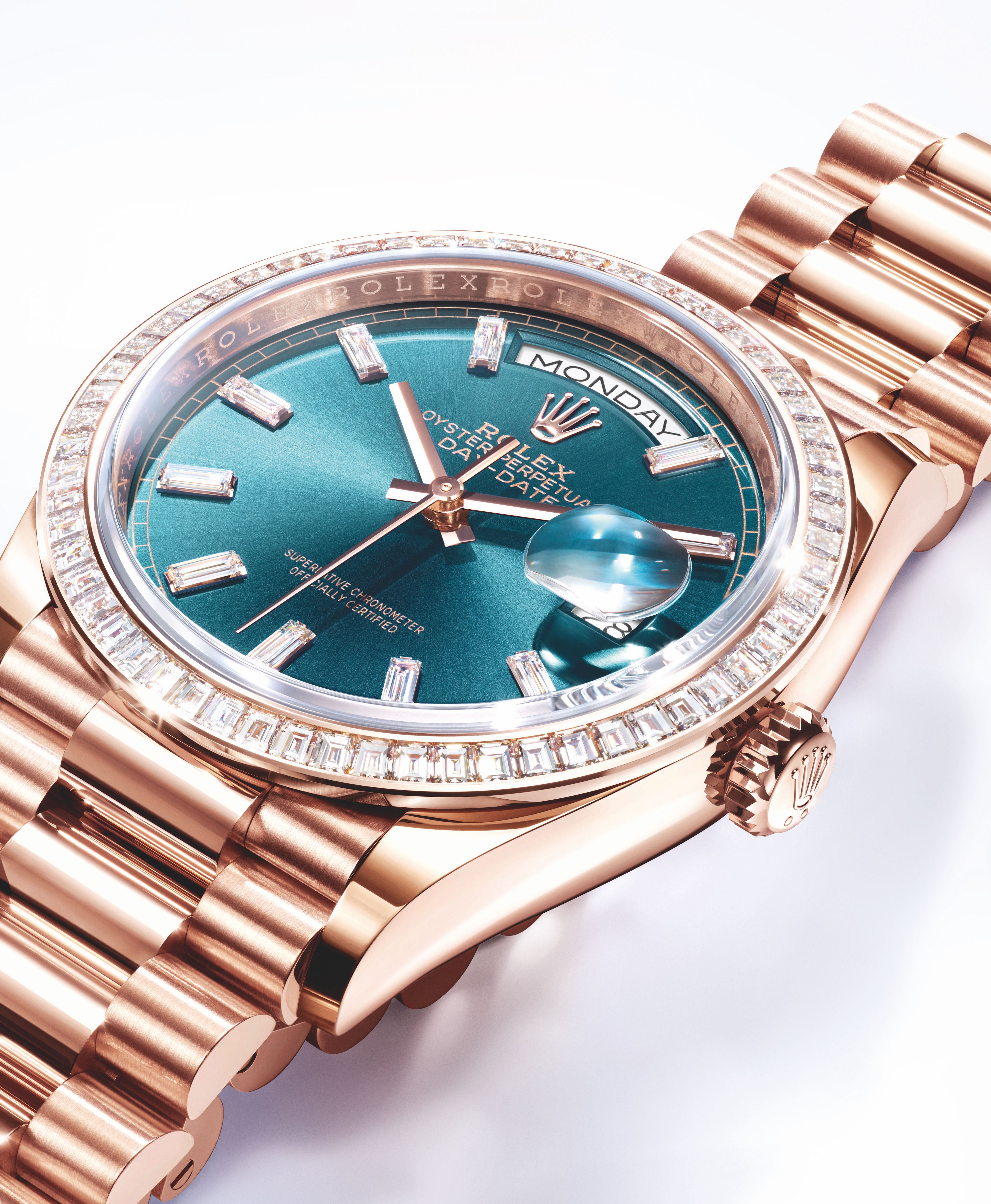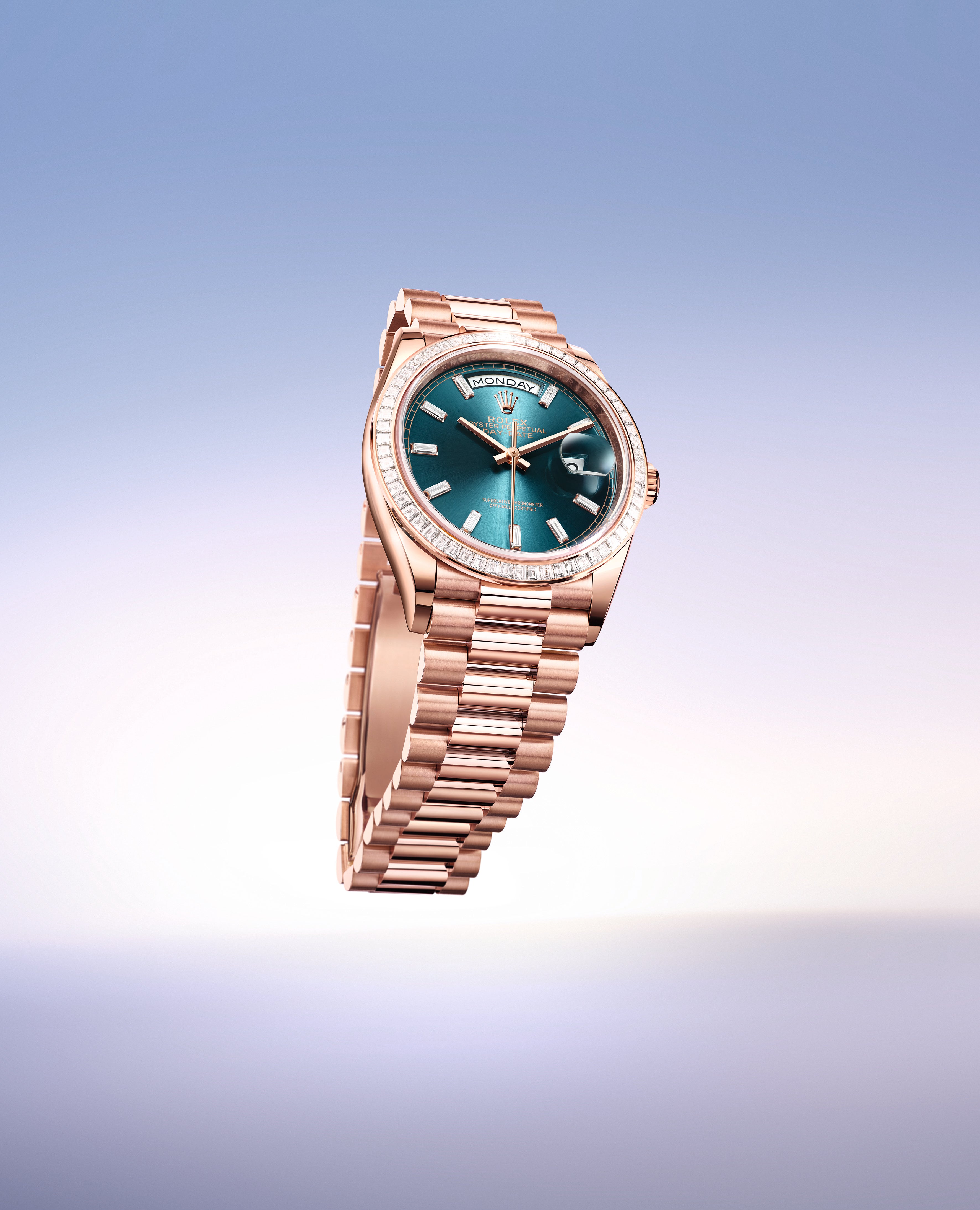 At its launch in 1956, the Day-Date was a major innovation: it was the first calendar wristwatch to indicate, in addition to the date, the day of the week spelt out in full in a window on the dial – a technical feat at the time. The Day-Date has only ever been made from precious metals –18 ct yellow, white or Everose gold, or 950 platinum. Worn by many of the world’s political figures, directors and visionaries, the Day-Date is instantly recognizable, in particular thanks to its emblematic President bracelet, whose evocative name, together with the eminent figures who have worn it, ensured the Day-Date became known as the ‘presidents’ watch’.